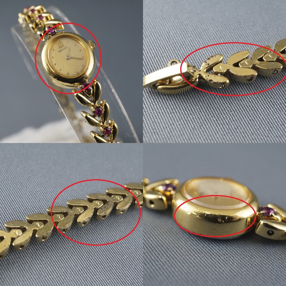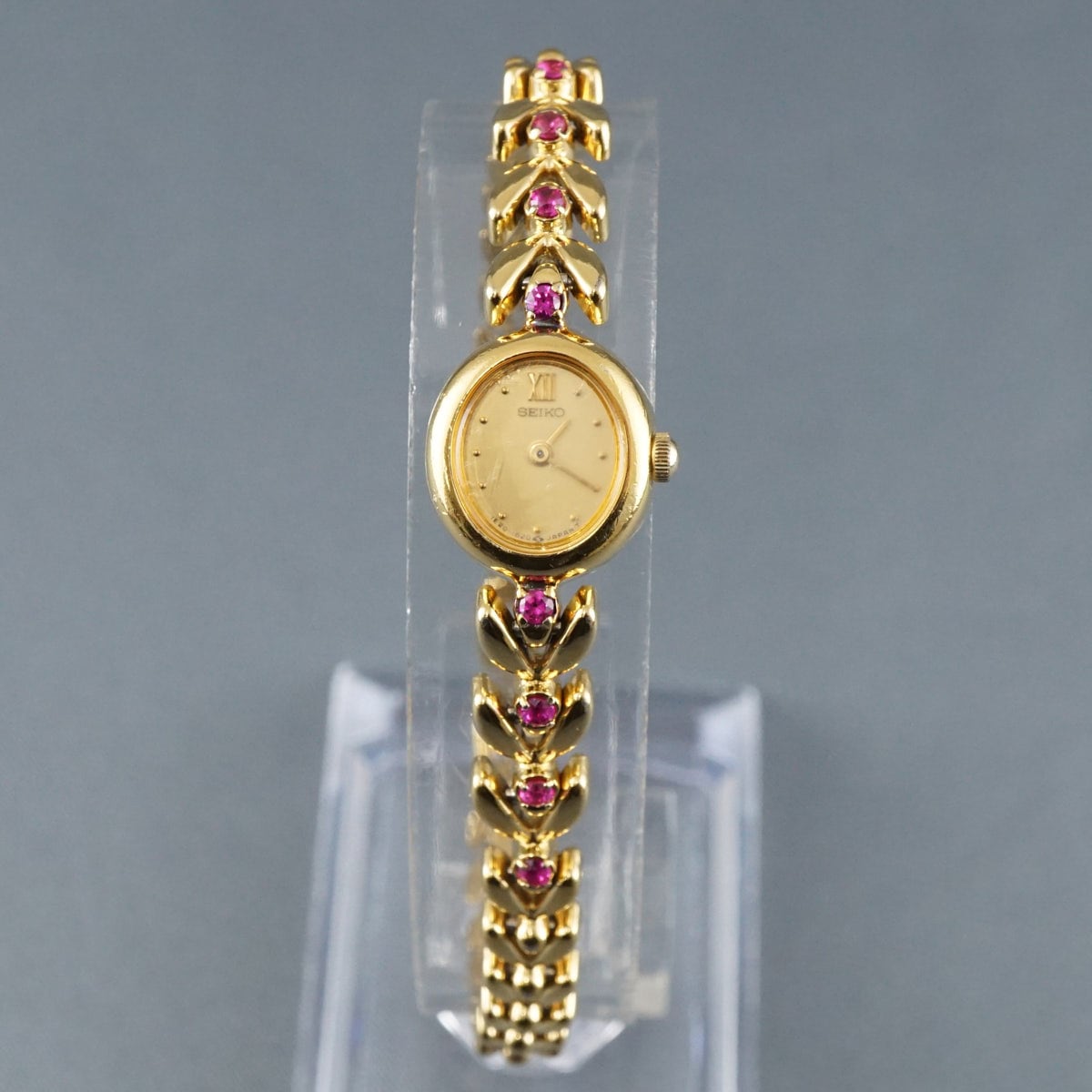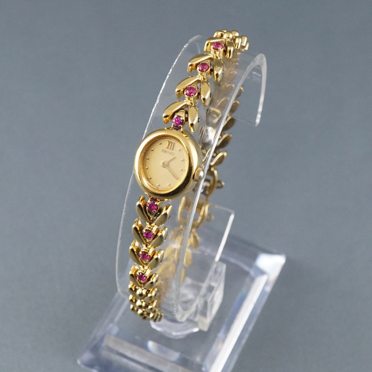 SEIKO セイコー 腕時計 USED品 1E20-605A ゴールド ブレスレットウォッチ カラーストーン付き ブランド 防水 完動品 X6660