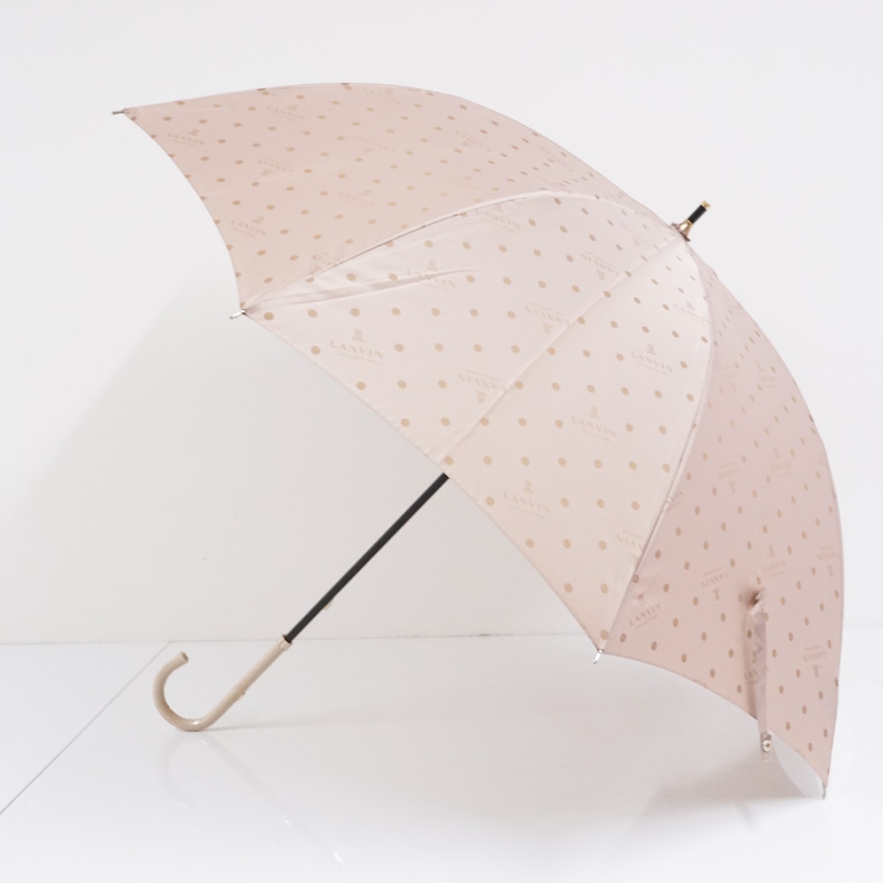 LANVIN COLLECTION ランバン シャンパンベージュ 高級傘 USED美品 水玉 ドット ロゴ ジャガード カーボン骨 60cm A2107