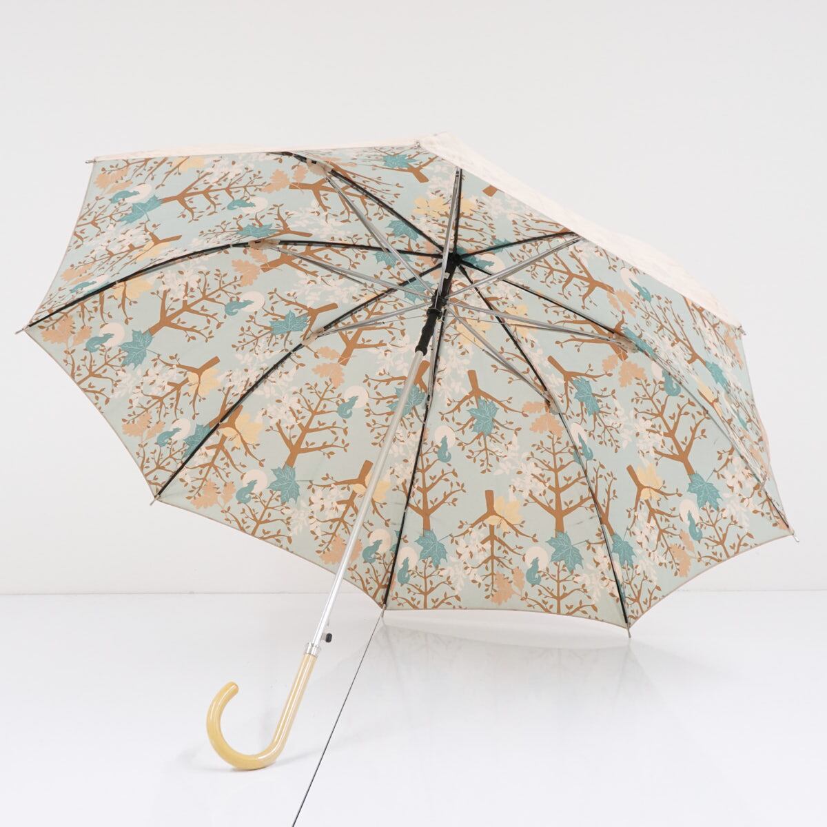 傘 PAUL&JOE SISTER ポール&ジョー 傘 USED美品 ボタニカル ツリー&リーフ バックプリント ベージュ×グリーン B2111