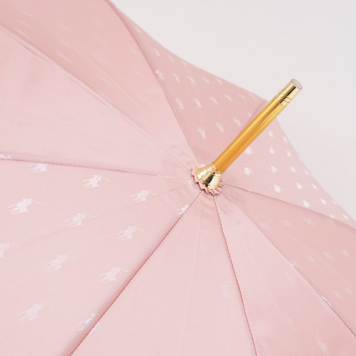 傘 Polo Ralph Lauren ポロラルフローレン USED美品 ポロドット ジャガーサーモンピンク 高級 60cm S2112