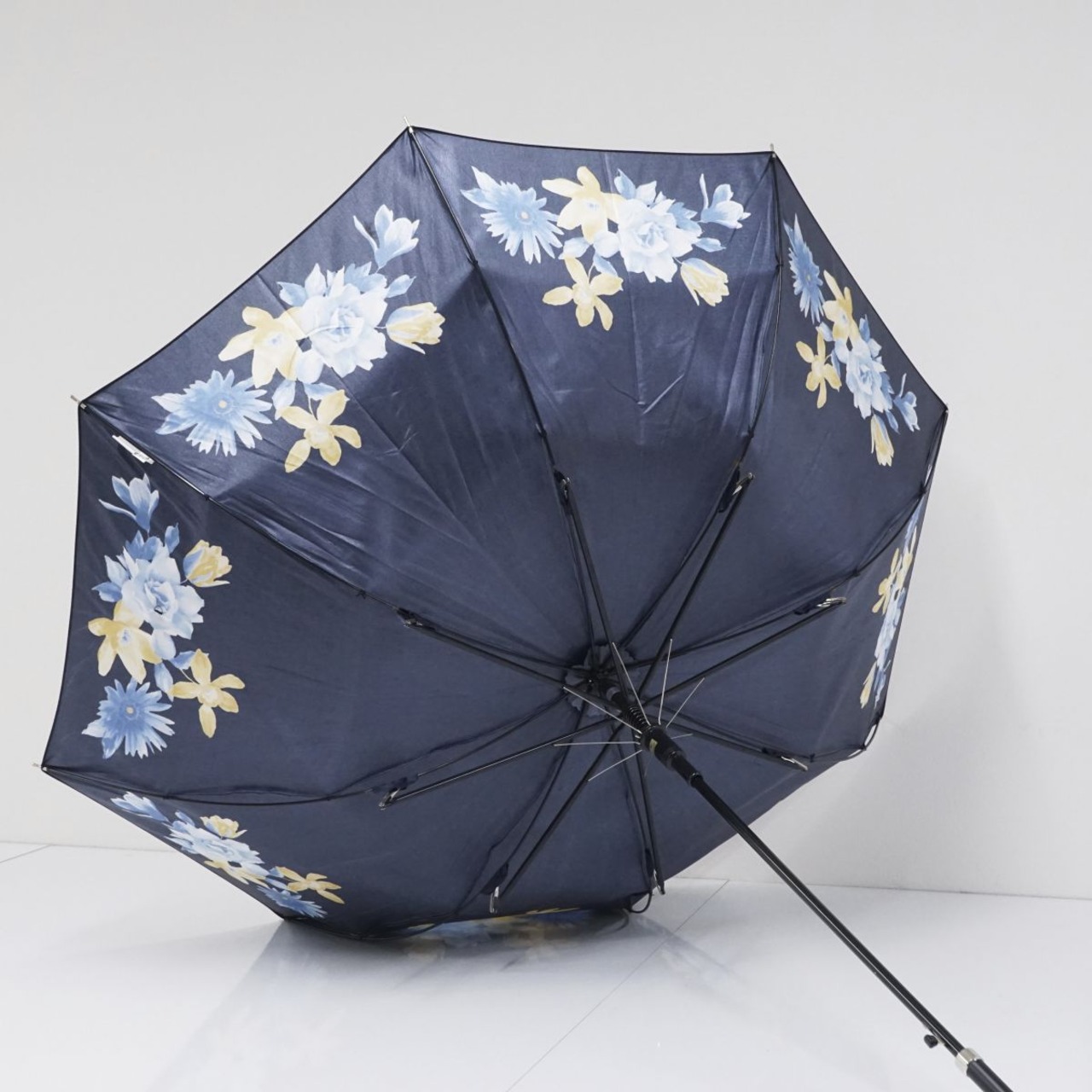 耐風傘 mila schon ミラショーン USED美品 ネイビー エレガント フラワー ジャンプ 60cm A2101