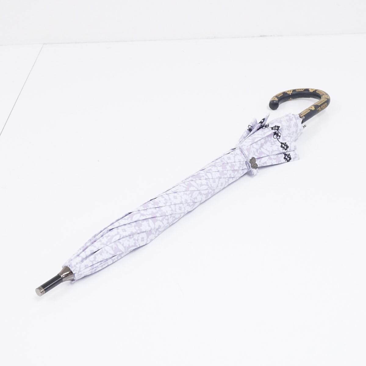 晴雨兼用 ANNA SUI アナスイ 日傘 USED美品 小花 ロゴ パープル フラワー 刺繍 花 遮光 UV グラス骨 47cm A2117