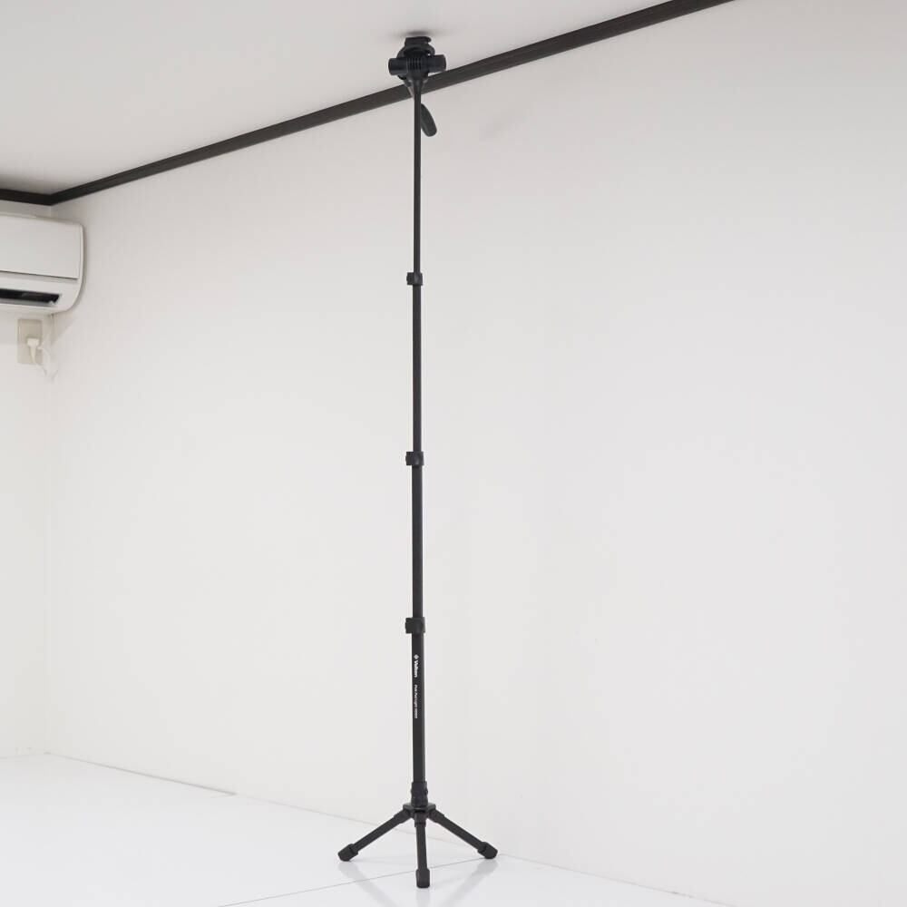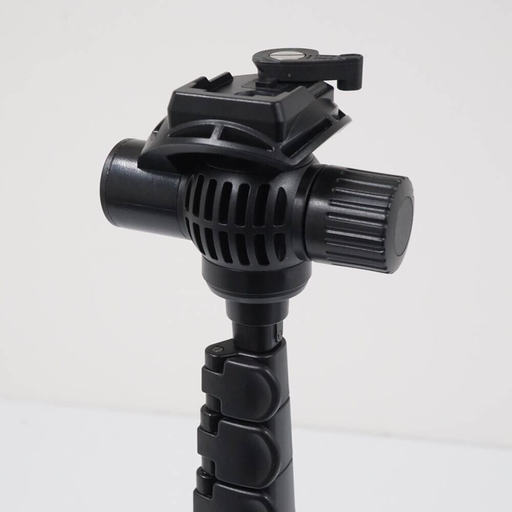 ビデオ雲台を装備した狭い場所でも立てられる便利なカメラスタンド。