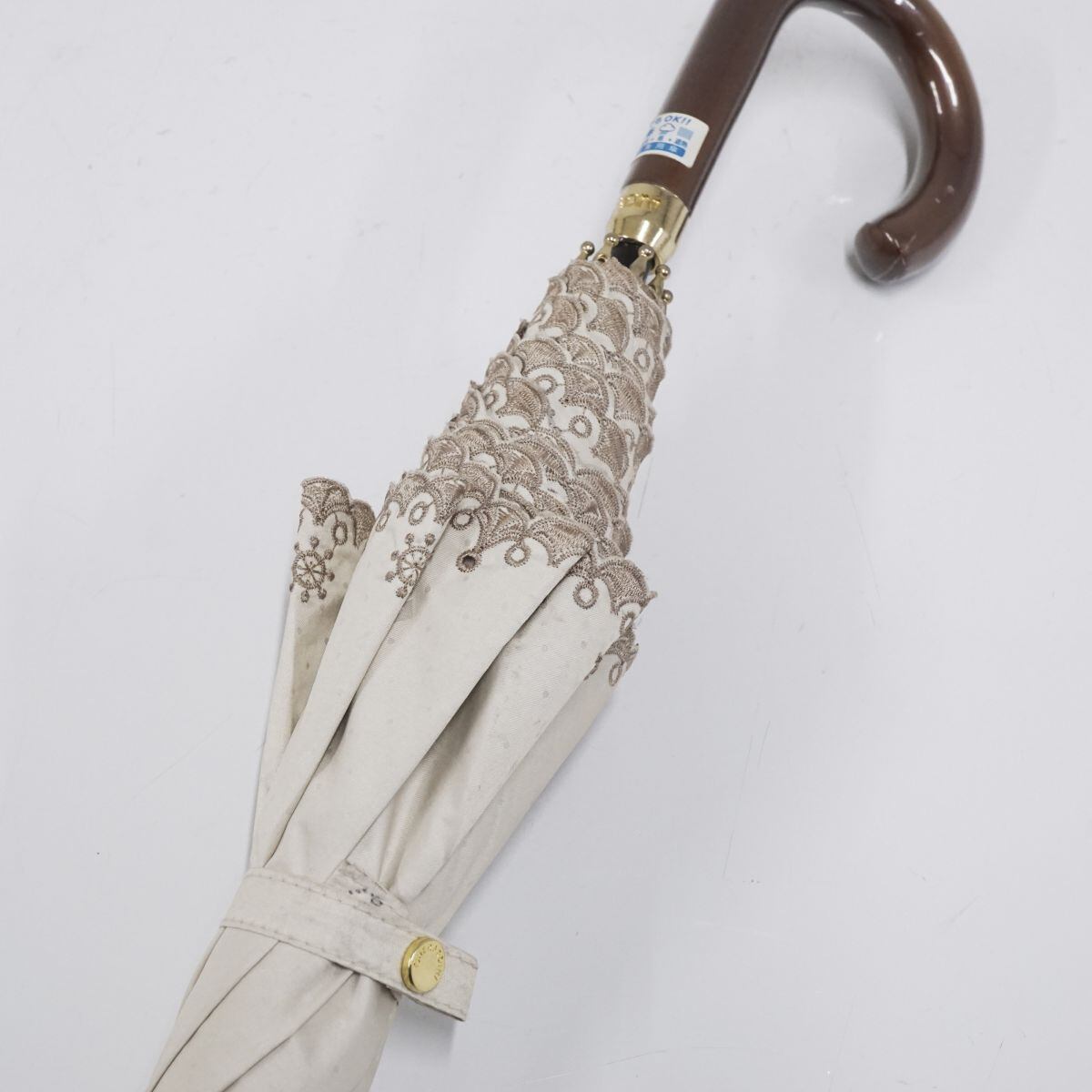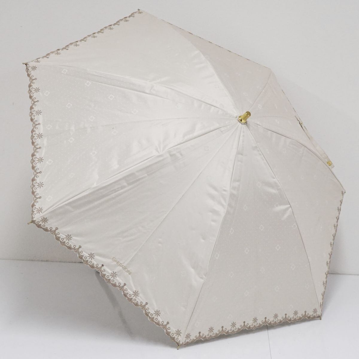 日傘 GHERARDINI ゲラルディーニ 晴雨兼用日傘 USED美品 ベージュ ドット 刺繍 遮光 グラス骨 軽量 47cm S2124