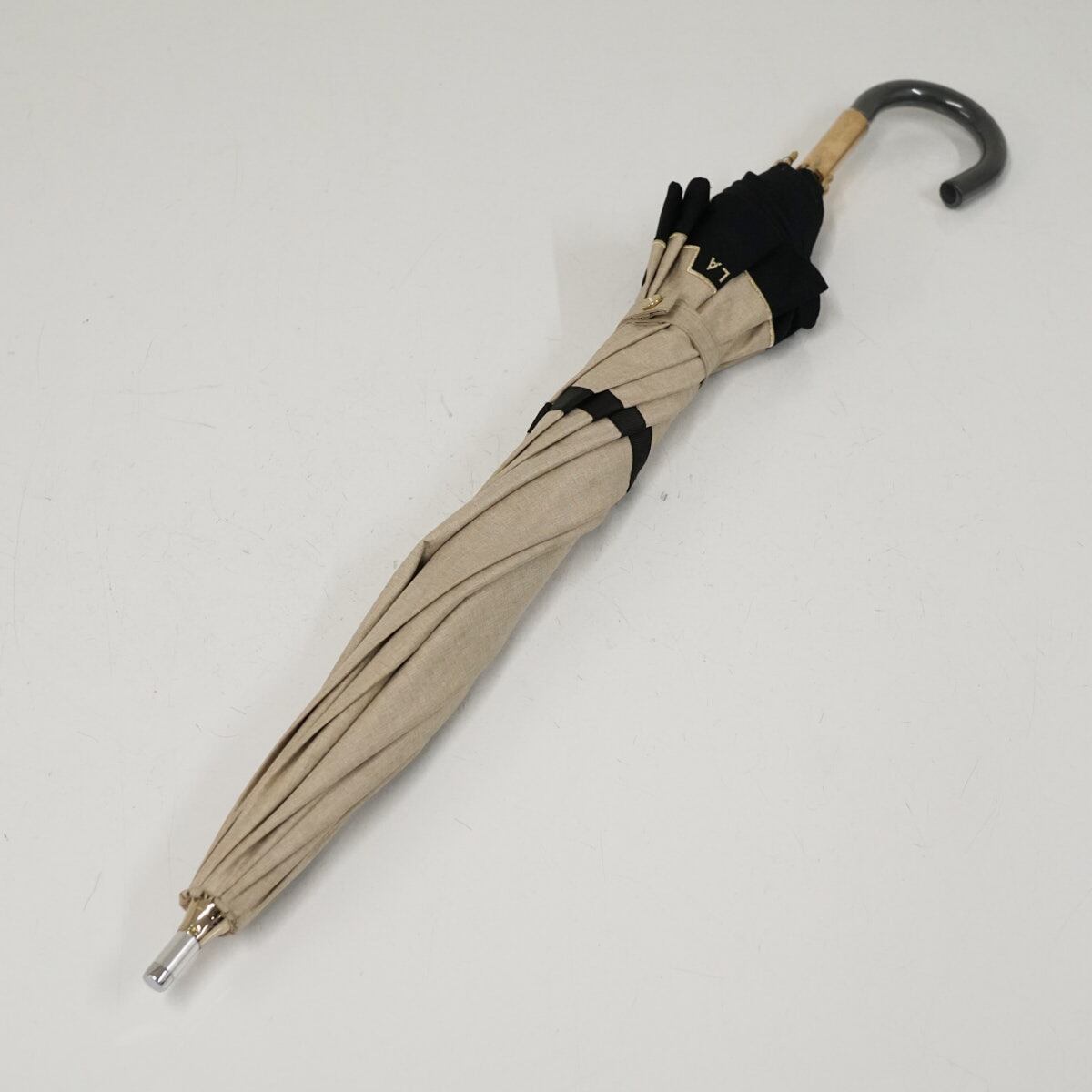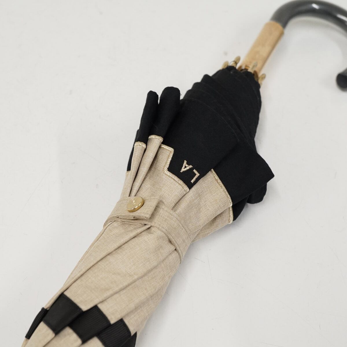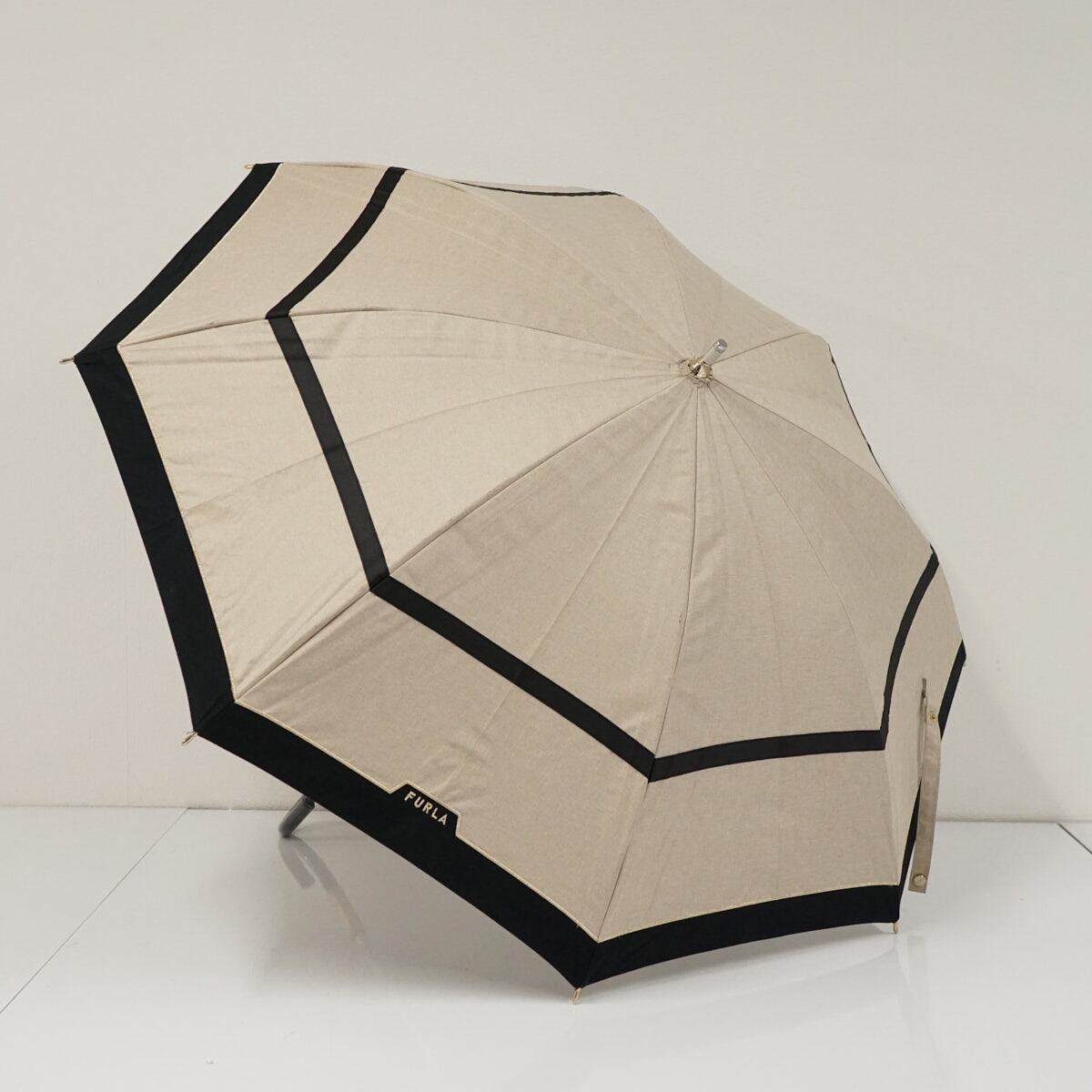 晴雨兼用日傘 FURLA フルラ USED美品 UV 一級遮光 ベージュ ブラック グラス骨 50cm S3295