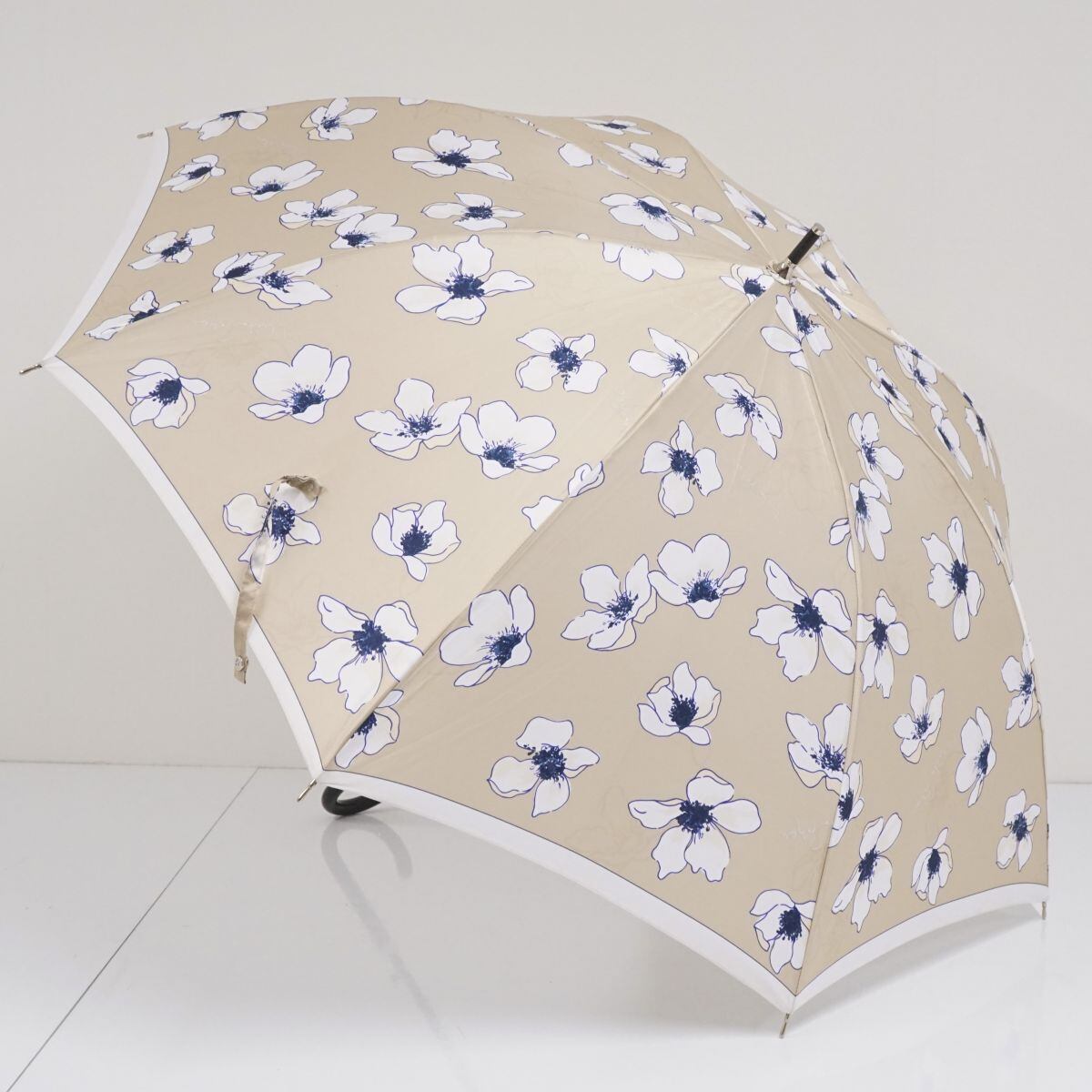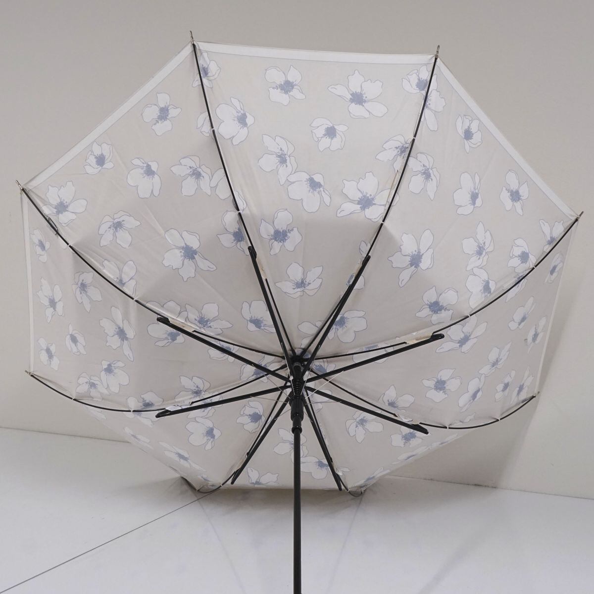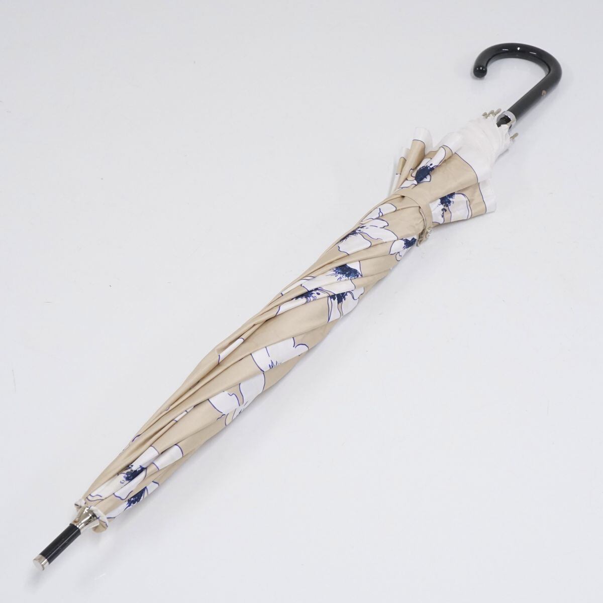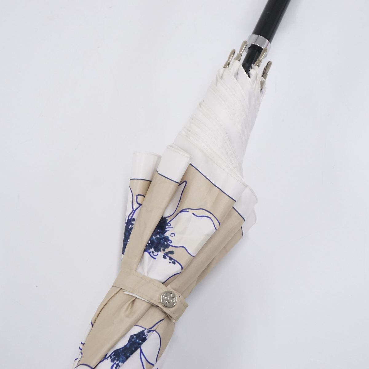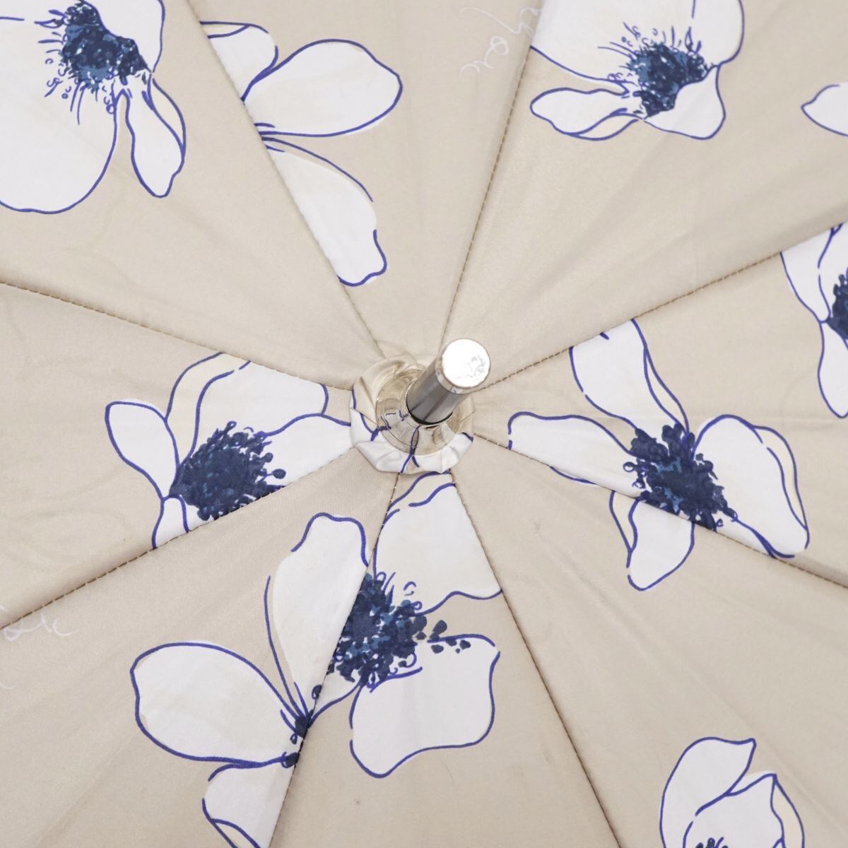 耐風傘 mila schon ミラショーン USED美品 フラワープリント 花柄 ロゴ ジャンプ グラス骨 ベージュ 風に強い ブランド 60cm A2131