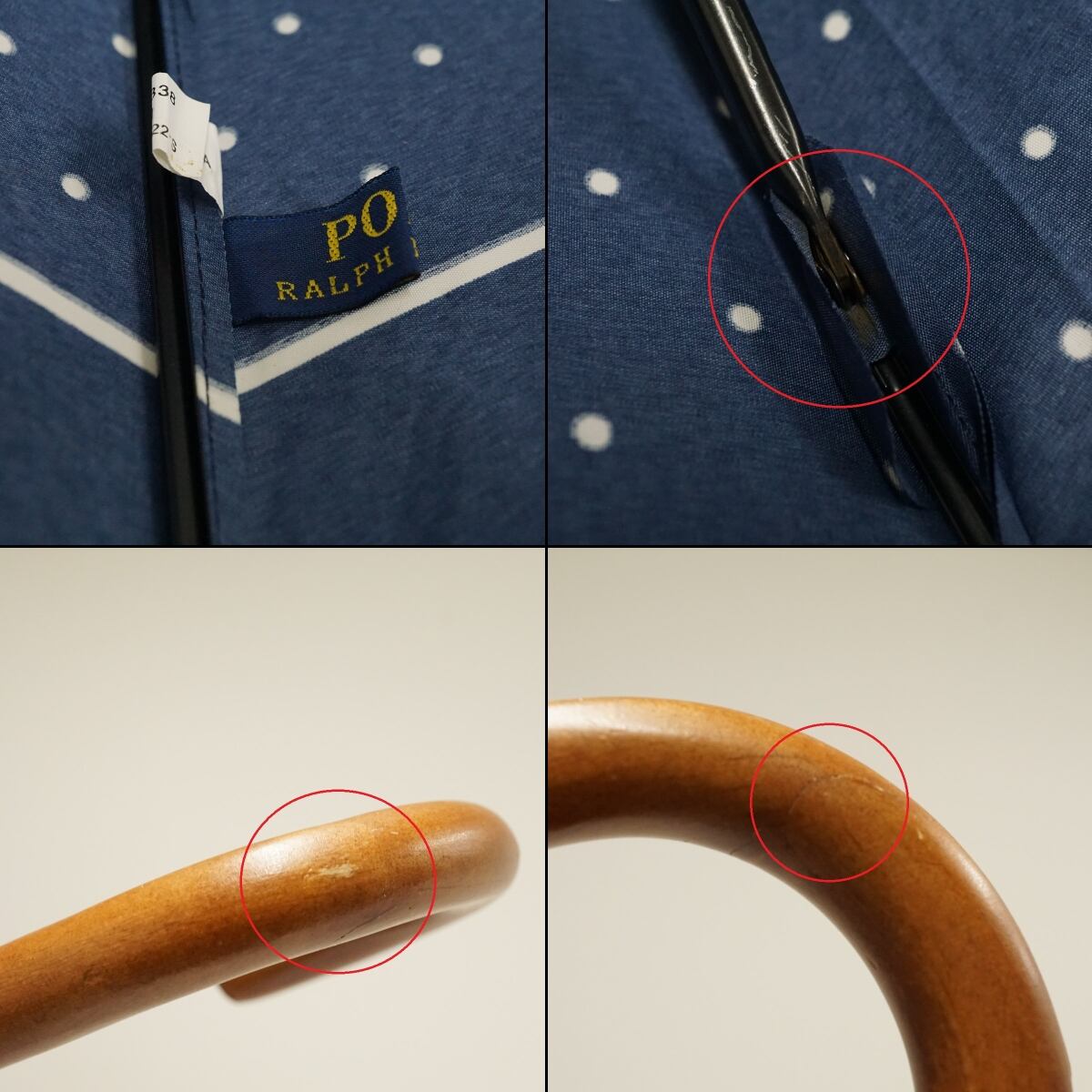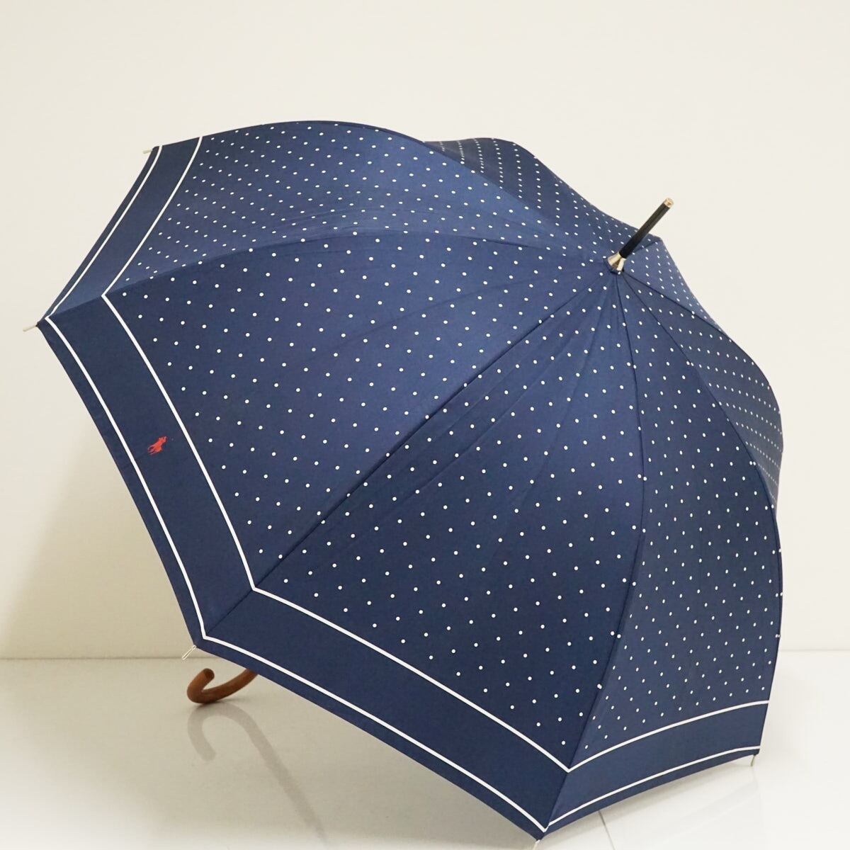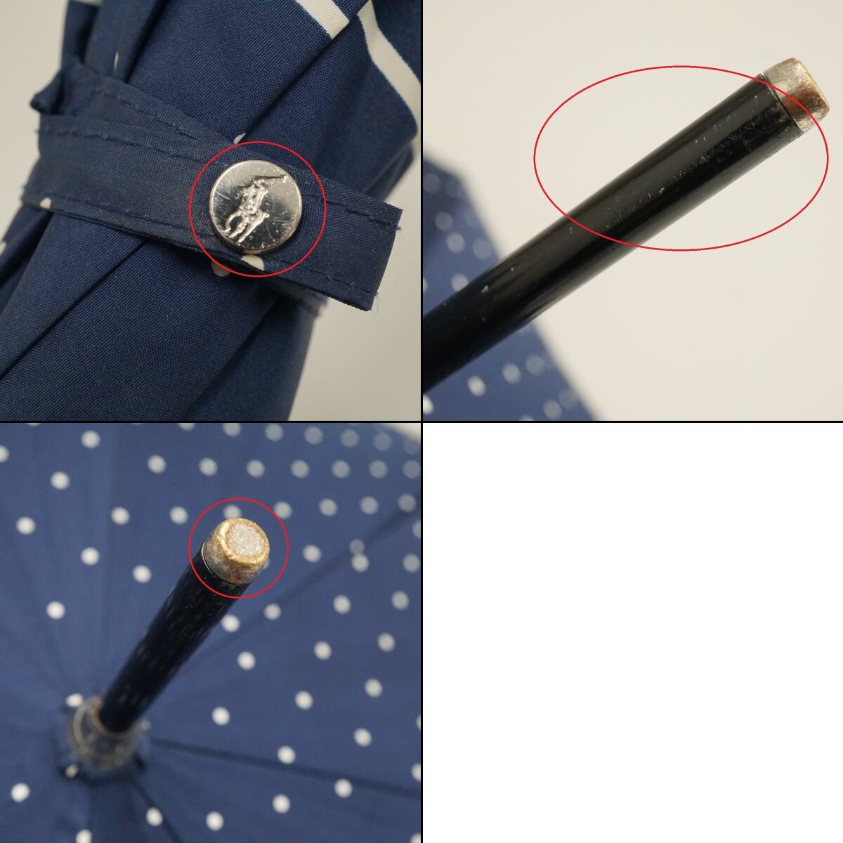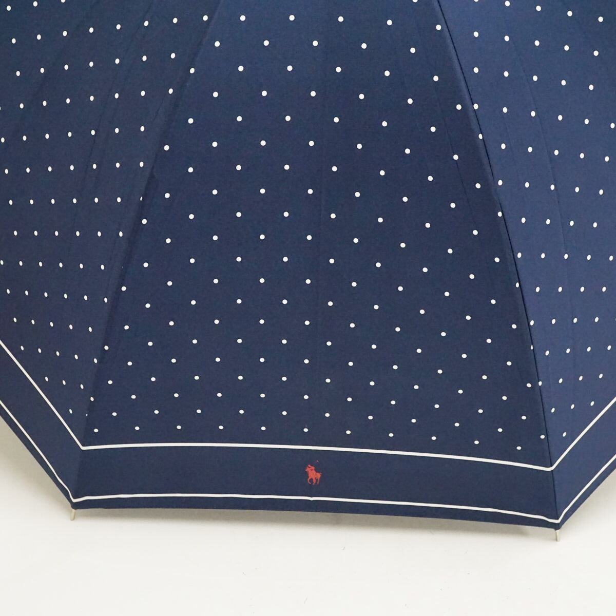 傘 Polo Ralph Lauren ポロラルフローレン USED美品 ドット ポロマーク ネイビー ロゴ ブランド 高級 ジャンプ 60cm A3247
