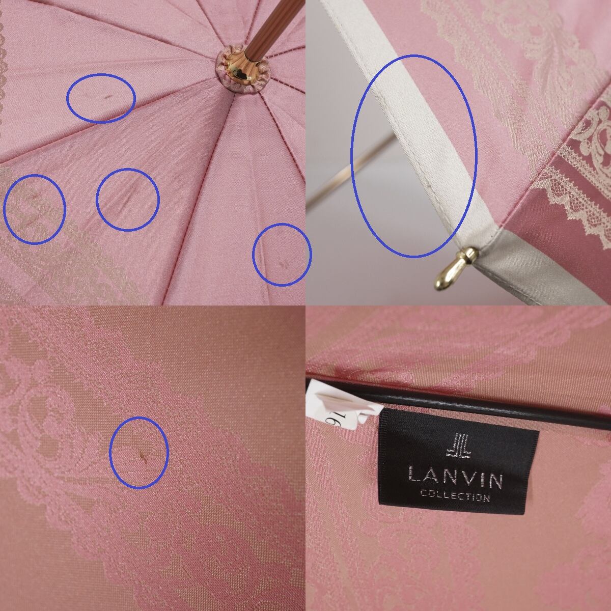 LANVIN COLLECTION ランバンコレクション 傘 USED美品 ピンク レース柄 グラス骨 レザー手元 58cm A2133