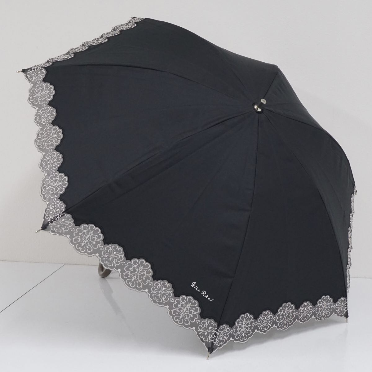 日傘 NINA RICCI ニナリッチ 晴雨兼用 USED美品 オーガンジー 刺繍 ブラック 遮光 遮熱 軽量 UV 50cm S2134