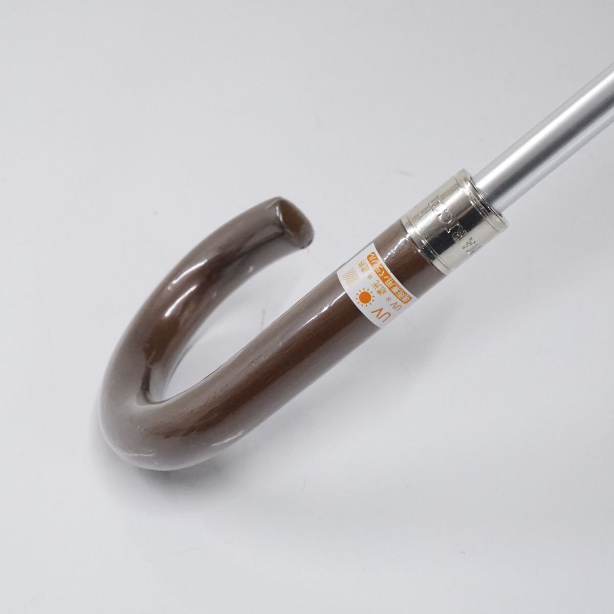 木製の手元にはブランドロゴプレートがつき、ブランド感を演出しております。