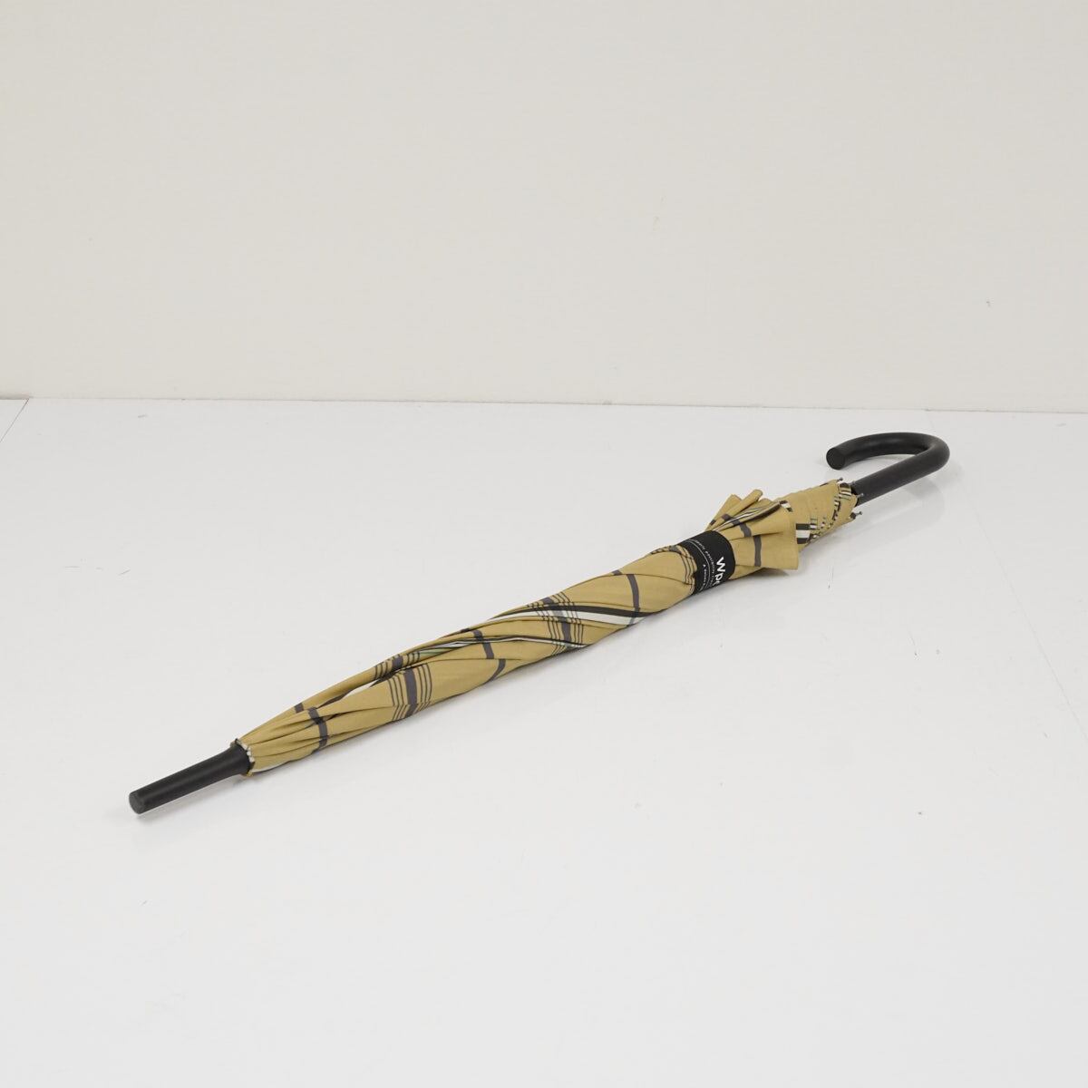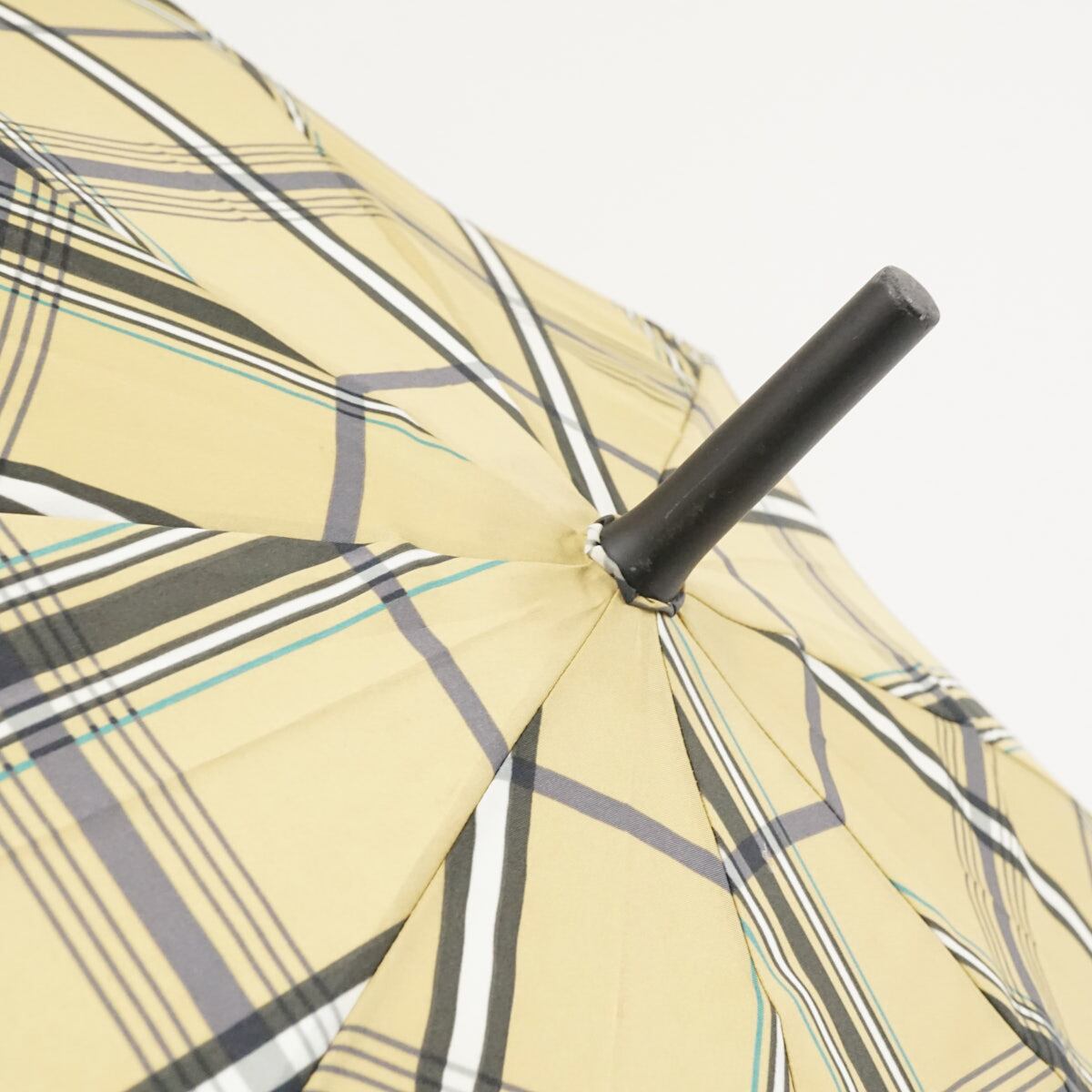 w.p.c ワールドパーティー 傘 USED美品 ブラウンベージュ チェック 格子 黒ベルト メンズ ジャンプ 65cm BT2148