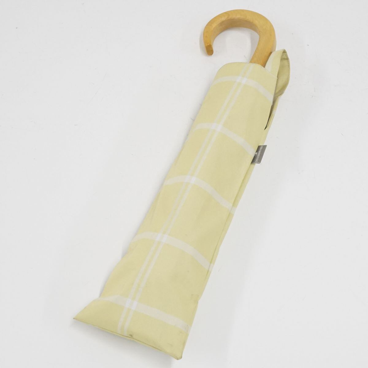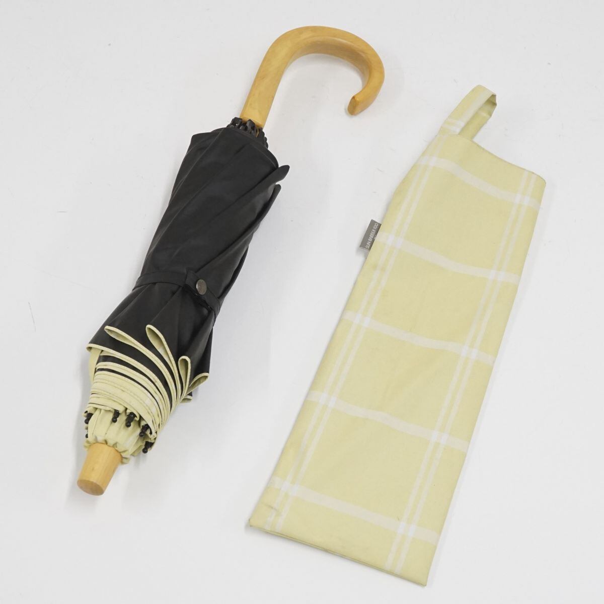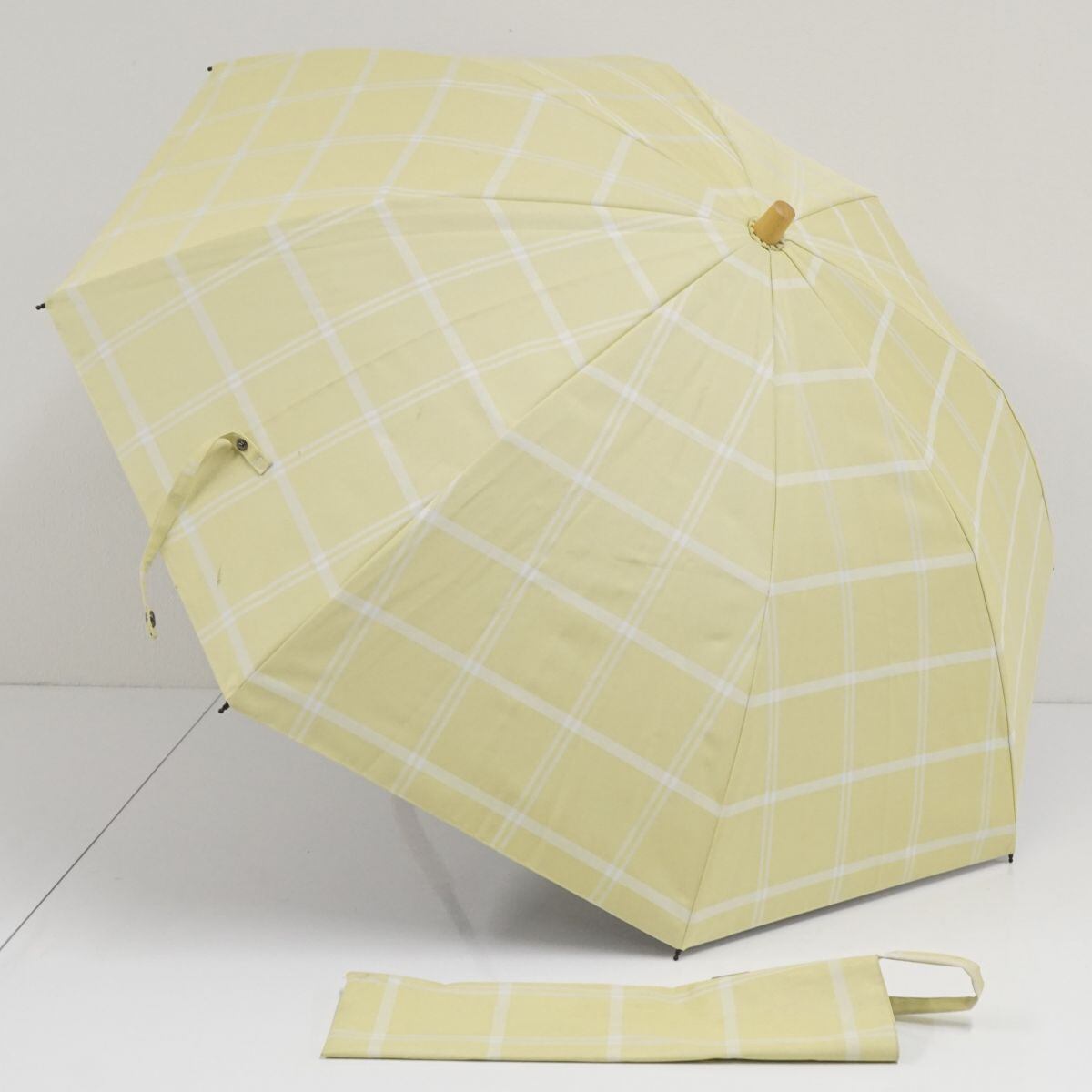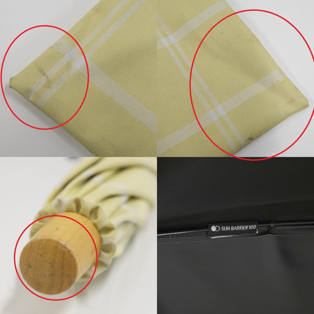 サンバリア100 完全遮光折日傘 USED美品 2段折 チェック イエロー UV 遮熱 折りたたみ 50cm FS8794