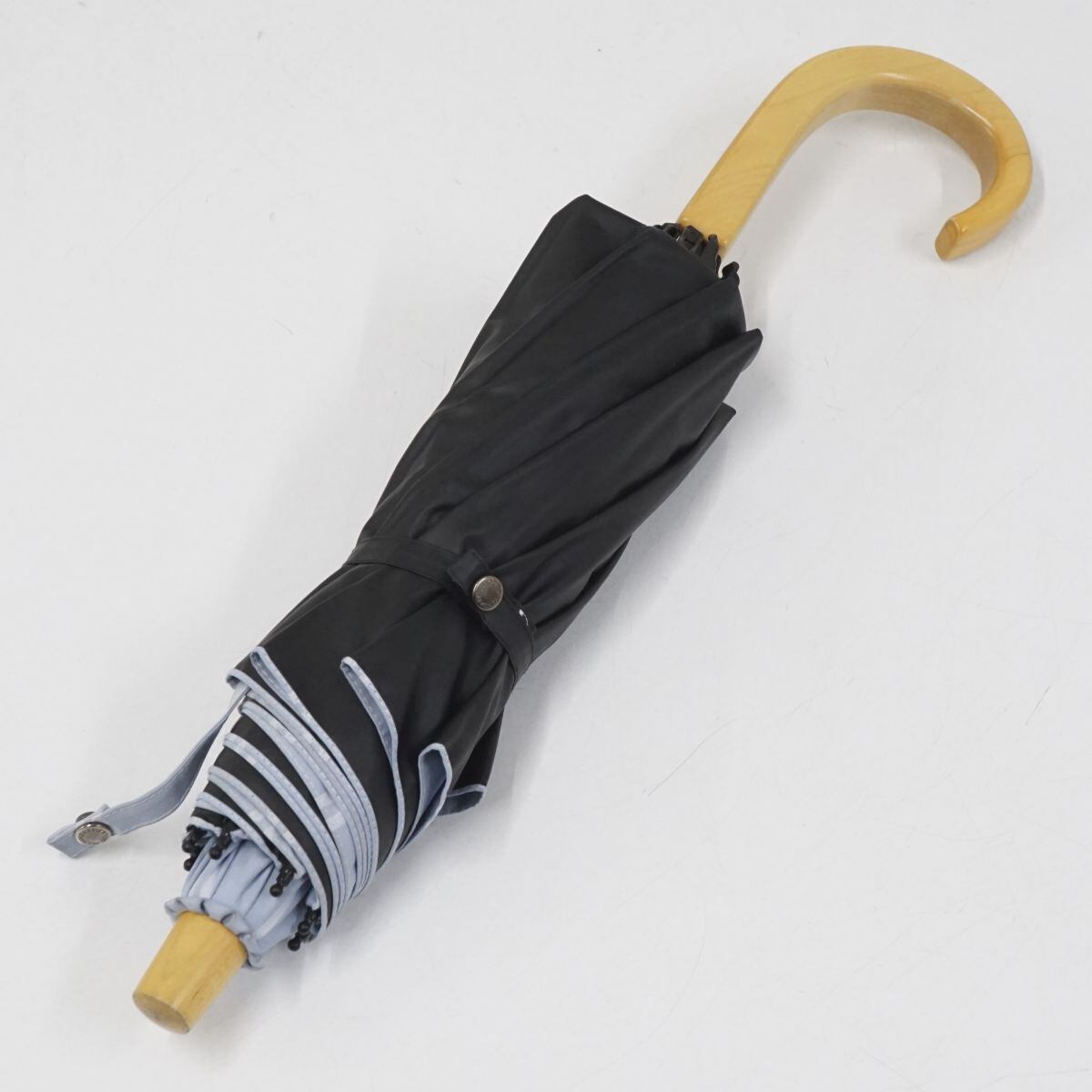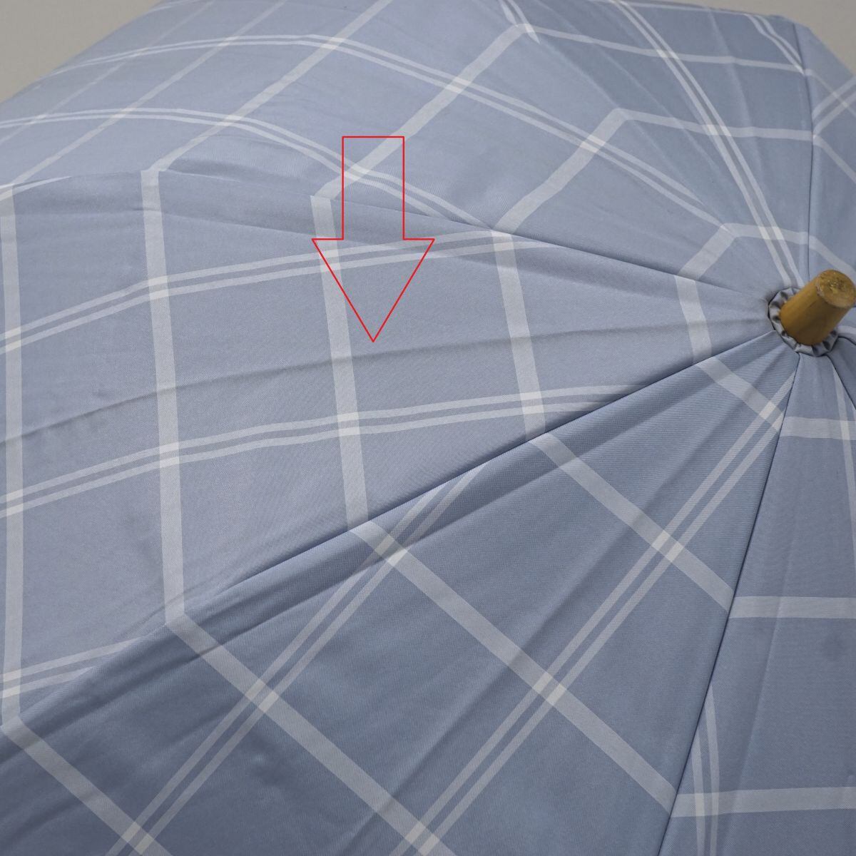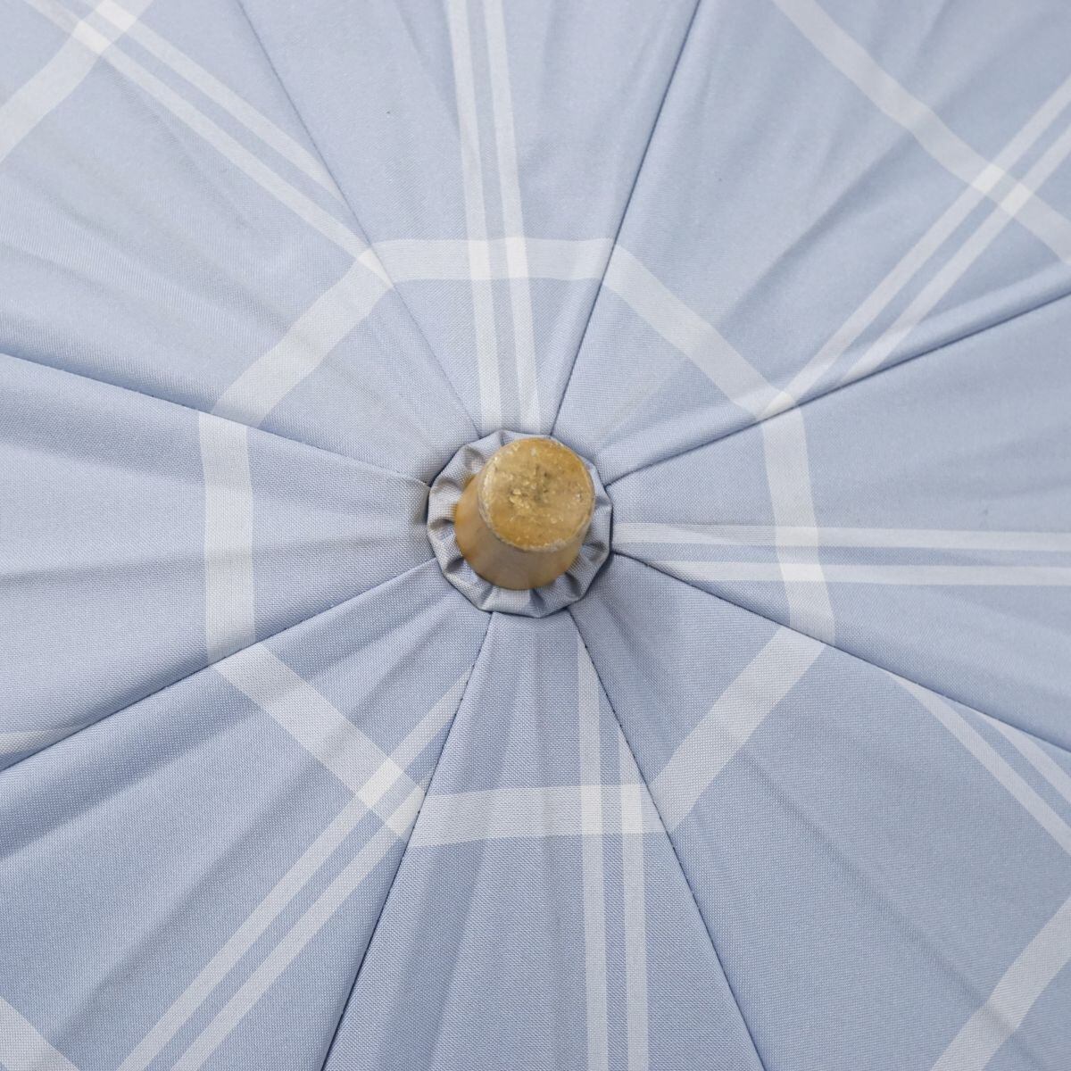 サンバリア100 完全遮光折日傘 USED美品 2段折 チェック ブルー UV 遮熱 折りたたみ 50cm FS8790