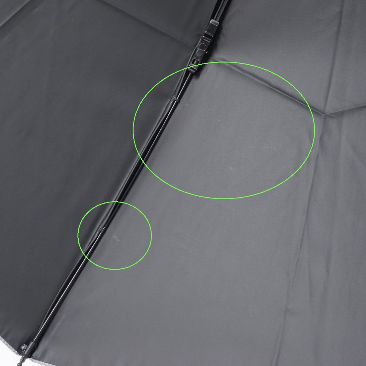 完全遮光折日傘 サンバリア100 USED美品 2段折 フロストグレー 木製手元 UVカット 遮熱 折りたたみ日傘 50cm FS8976