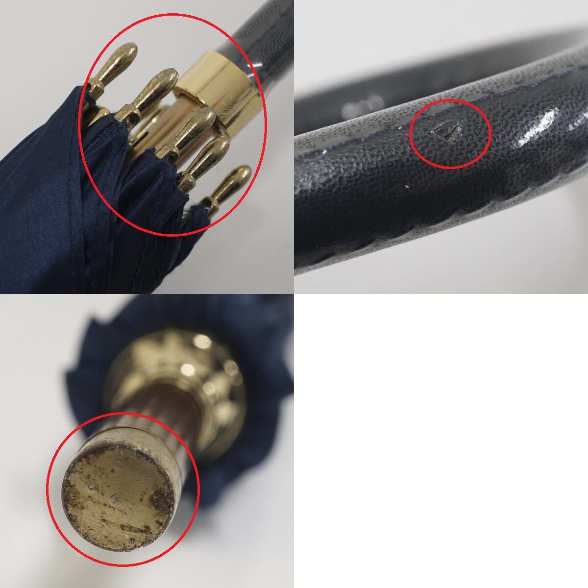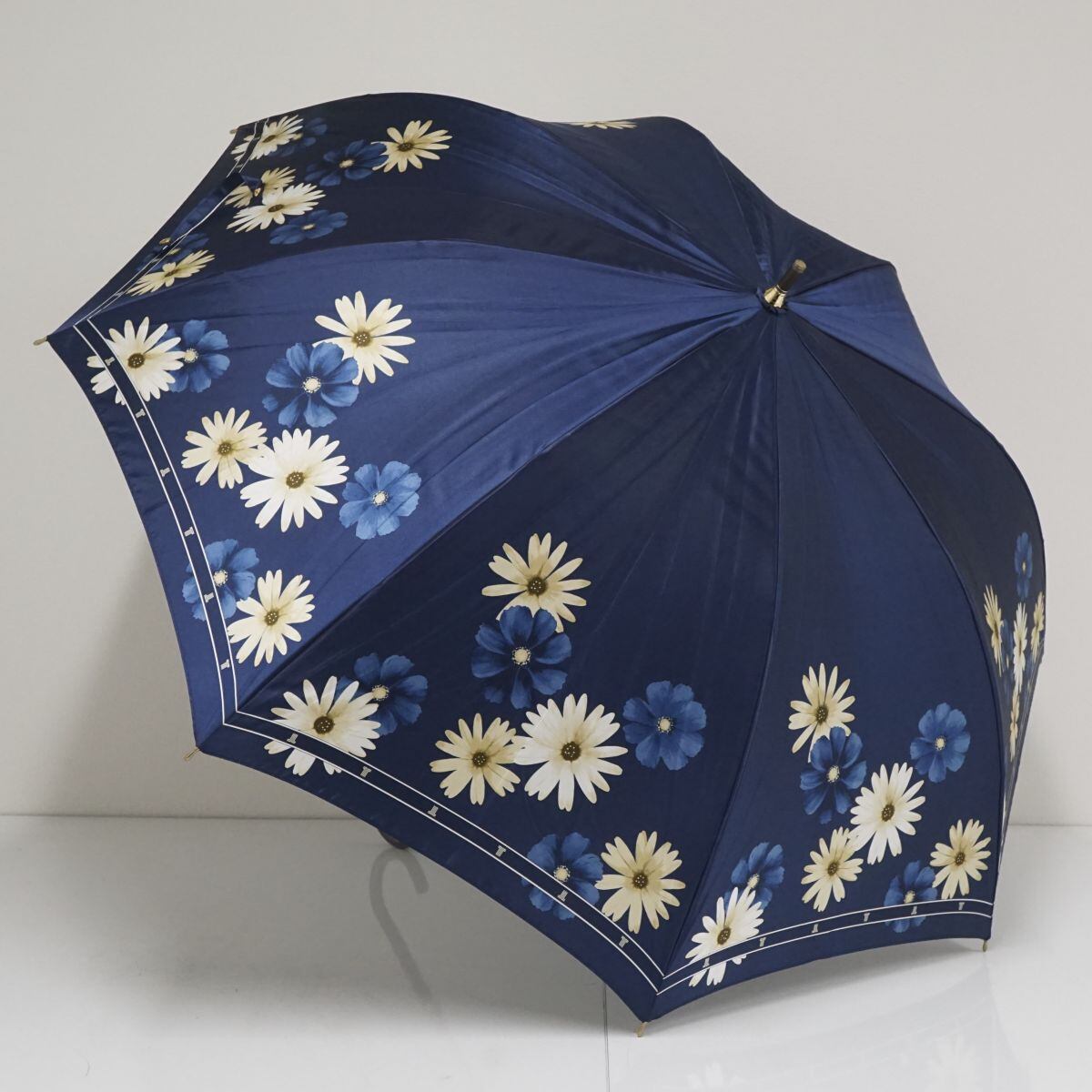傘 LANVIN COLLECTION ランバンコレクション USED美品 ロゴモチーフ ネイビー グラス骨 レザー手元 60cm S2152