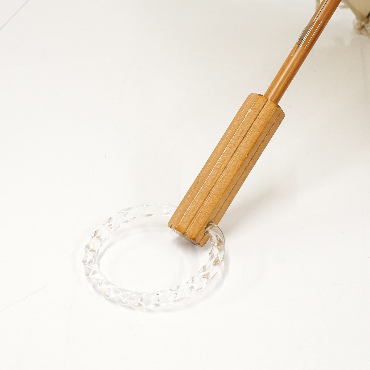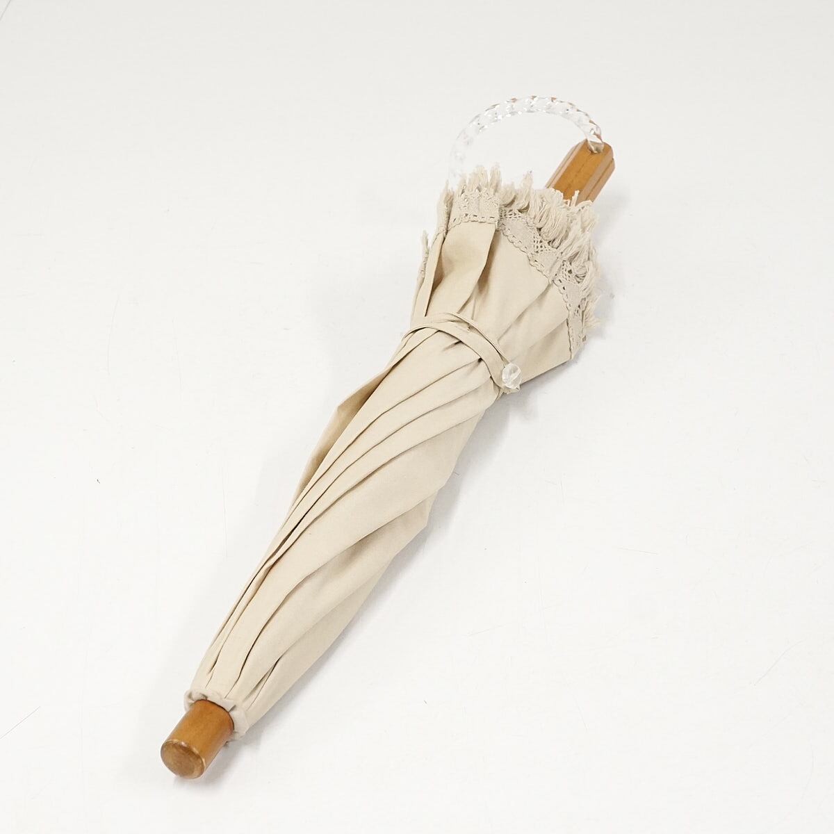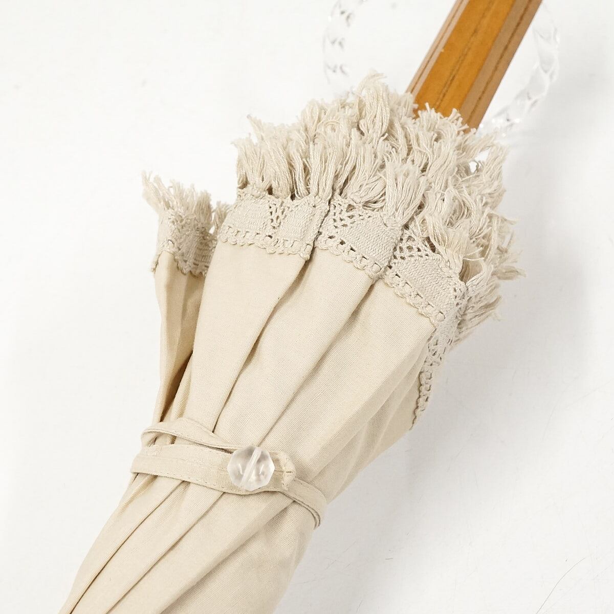 高級日傘 大森商店 USED美品 フリンジ バングルハンドル 綿 麻 シンプル 天然木 パラソル ライトベージュ UV 40cm S2156