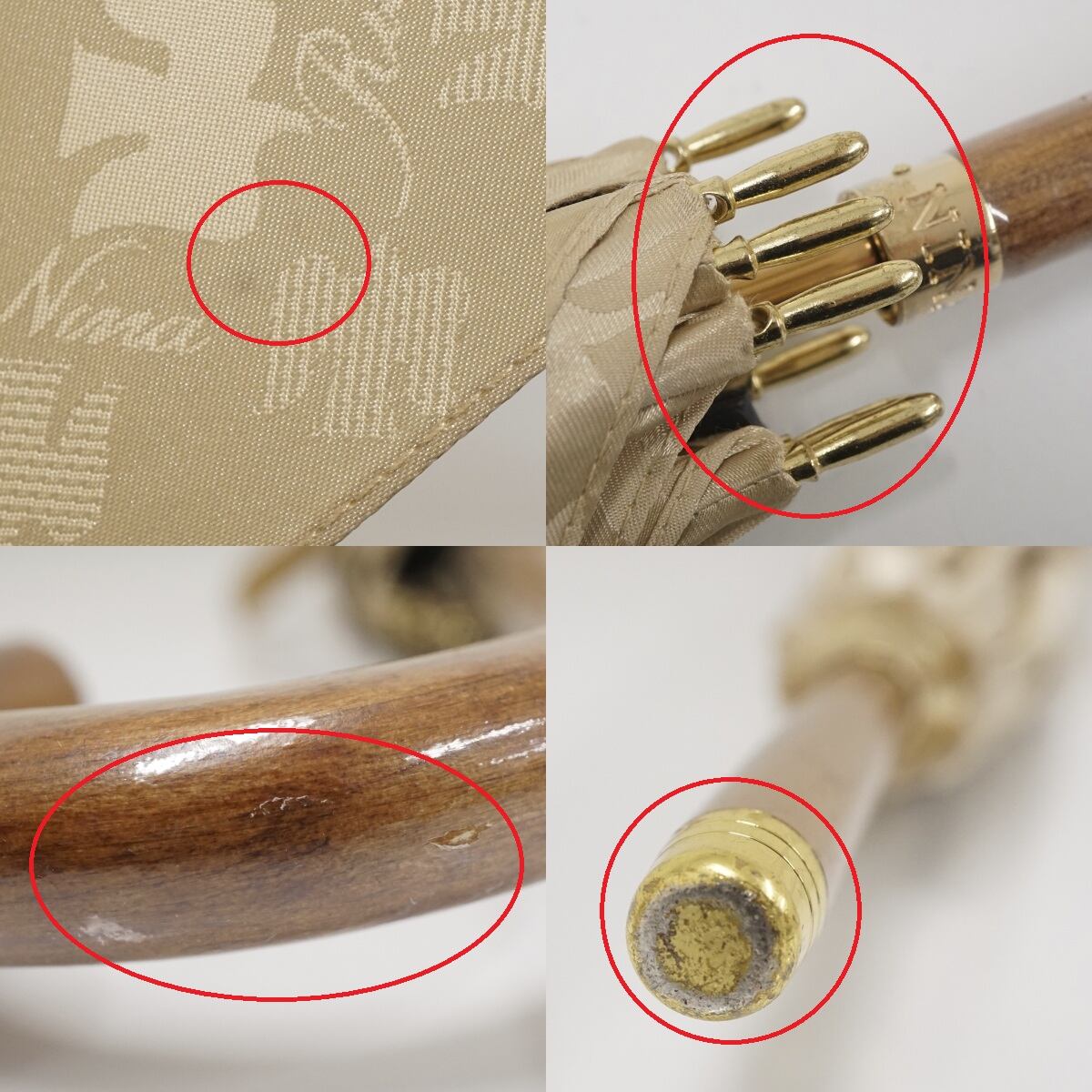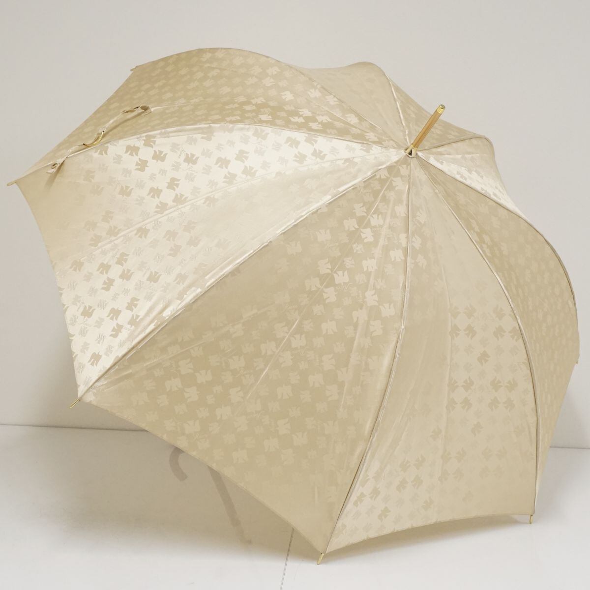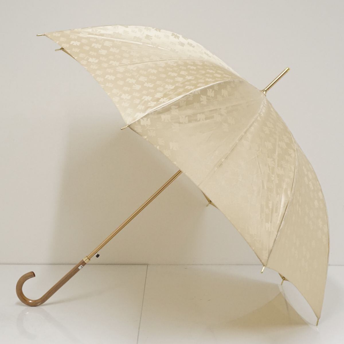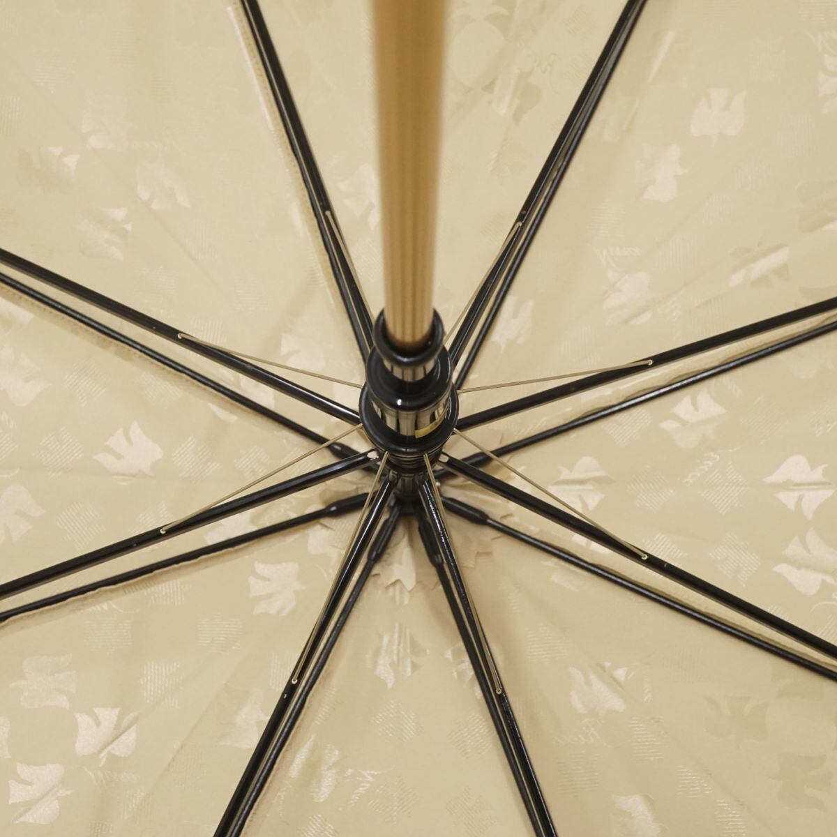 傘 NINA RICCI ニナリッチ USED美品 バードシルエット 小鳥 ライトベージュ ジャガード 耐風傘 ジャンプ 60cm S2153