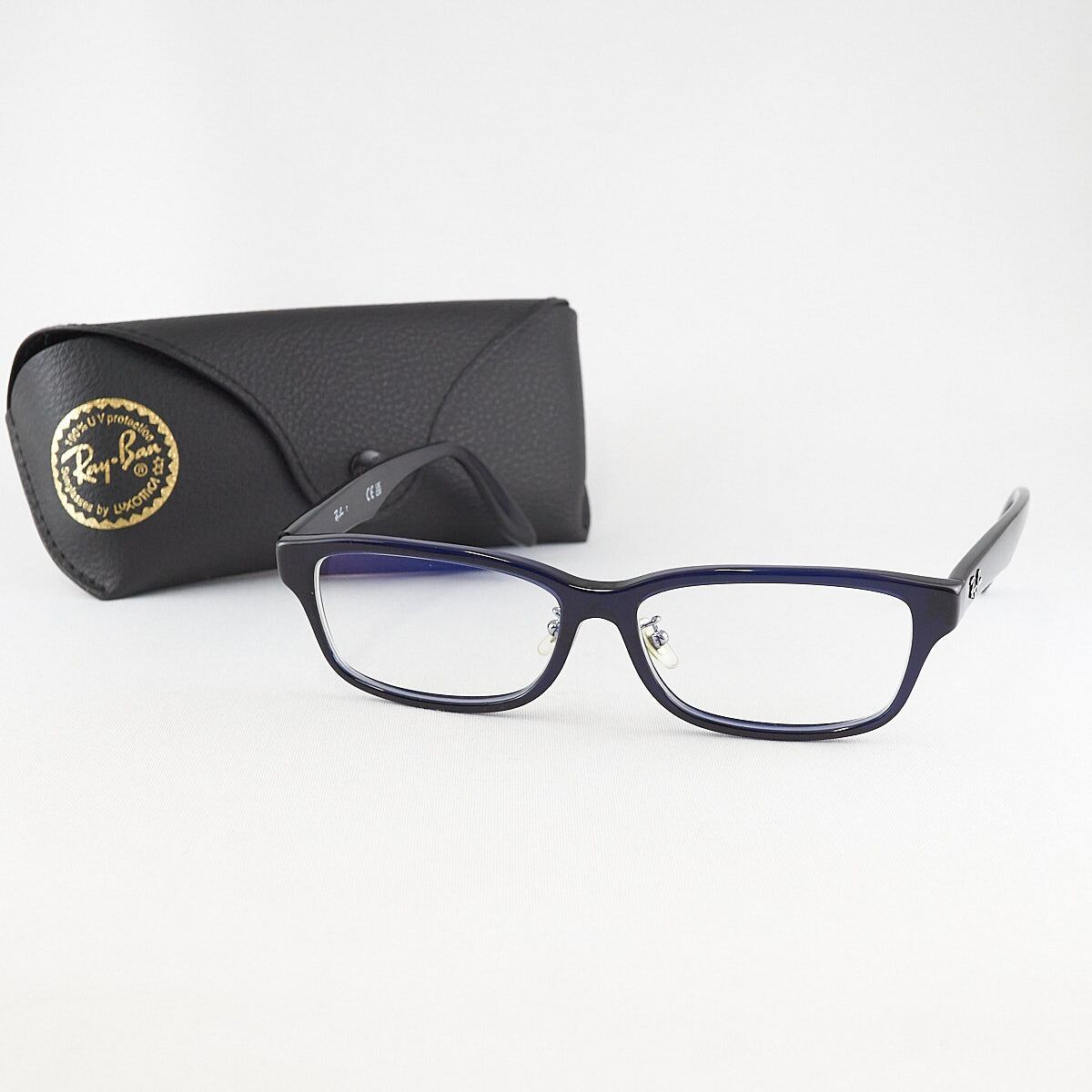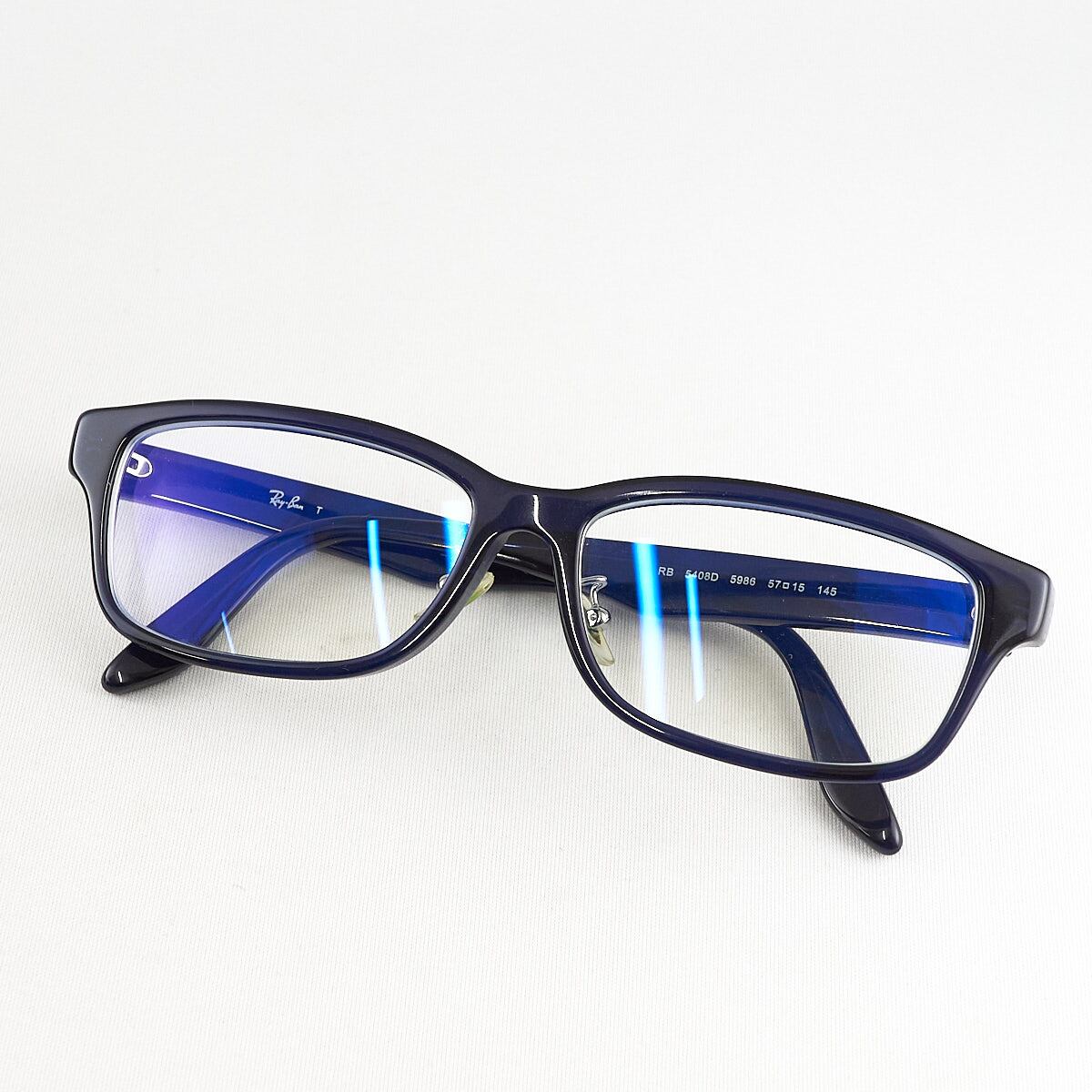 眼鏡 RayBan RB5408D USED品 スクエア ダークブルー レイバン ケース付 アイウェア 中古 X6744