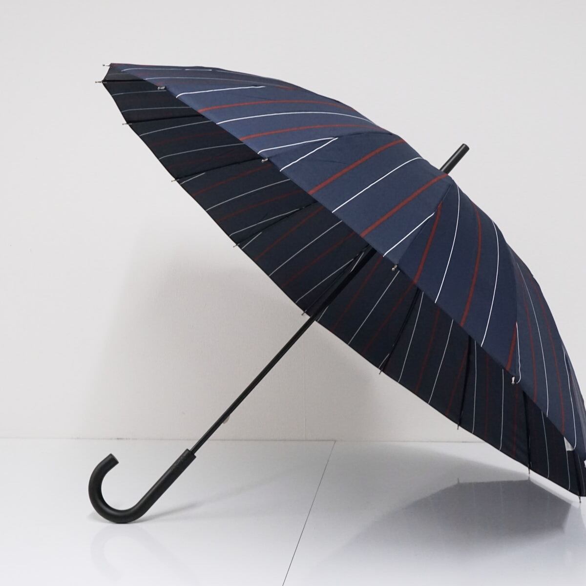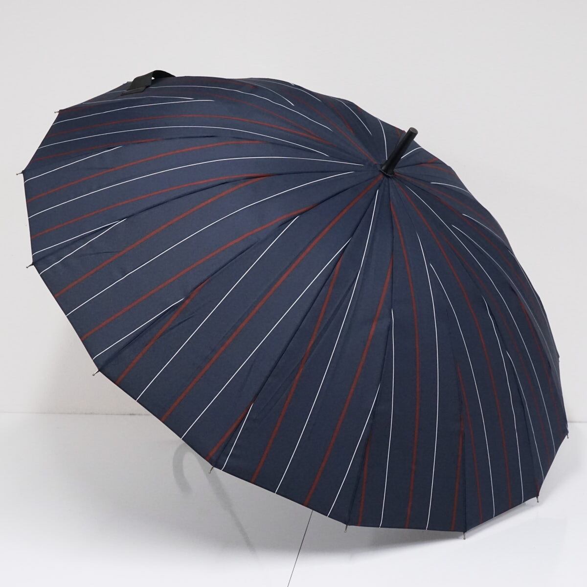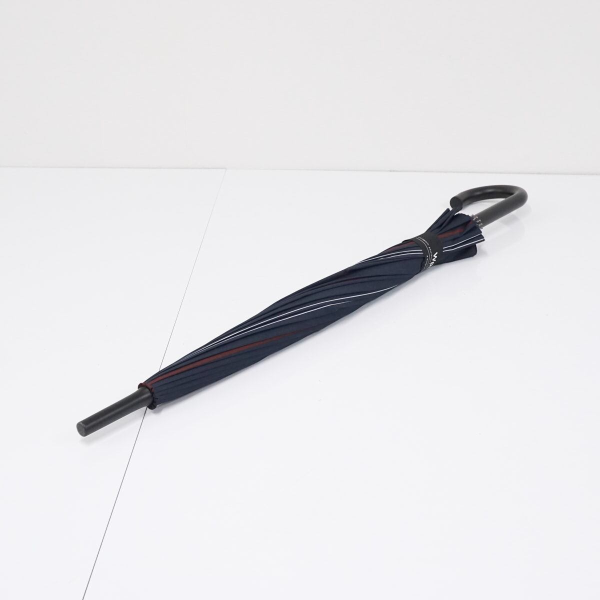 w.p.c ワールドパーティー 傘 USED美品 ネイビー シンプル ストライプ 大判 16本骨 晴雨兼用 メンズ 65cm T BT2160