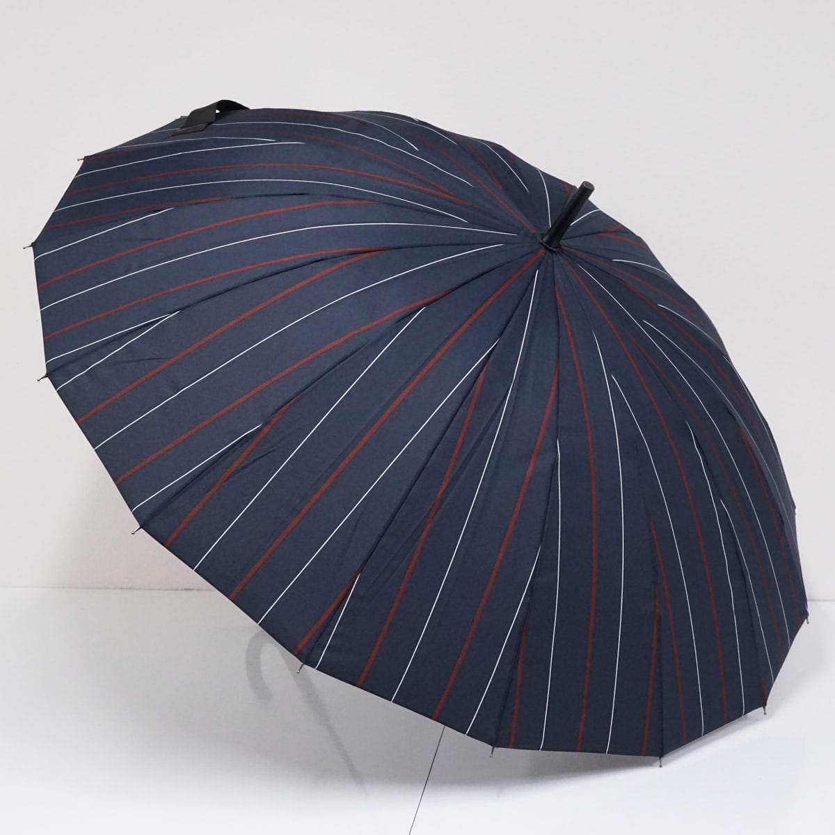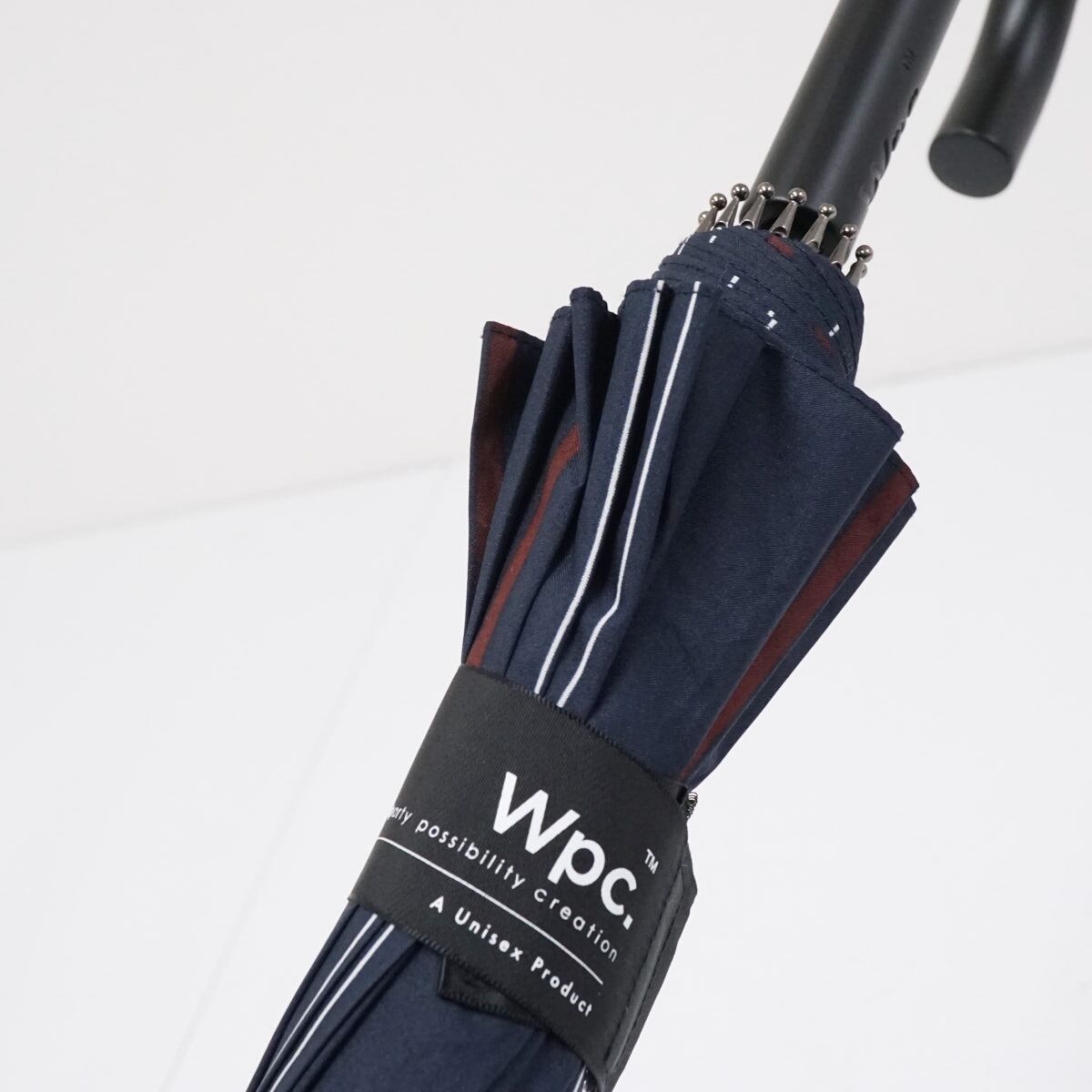 w.p.c ワールドパーティー 傘 USED美品 ネイビー シンプル ストライプ 大判 16本骨 晴雨兼用 メンズ 65cm BT2160