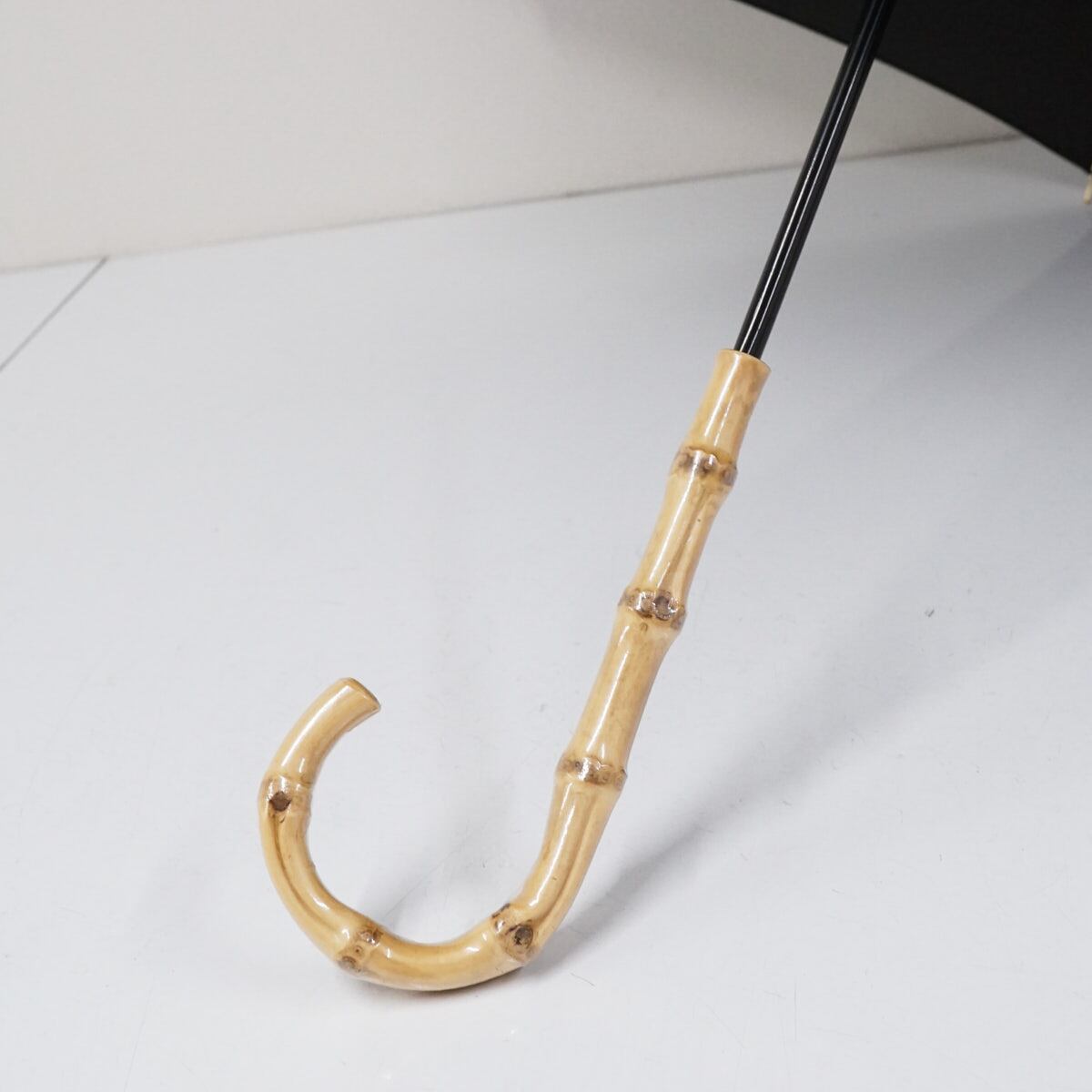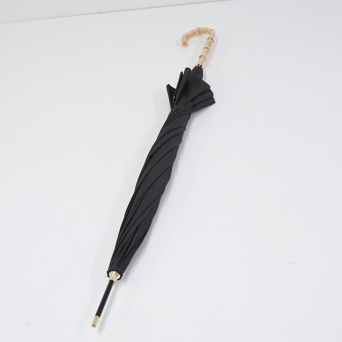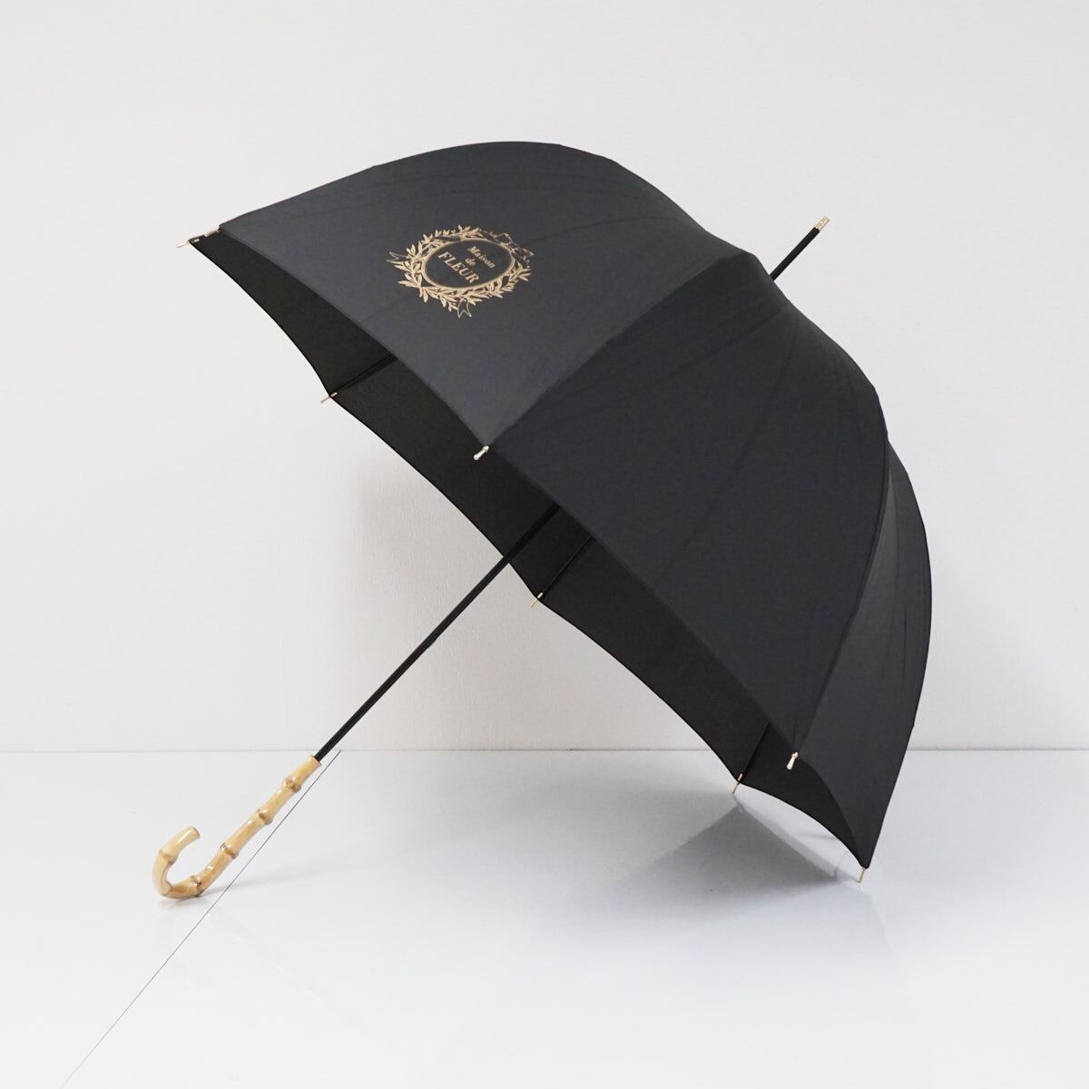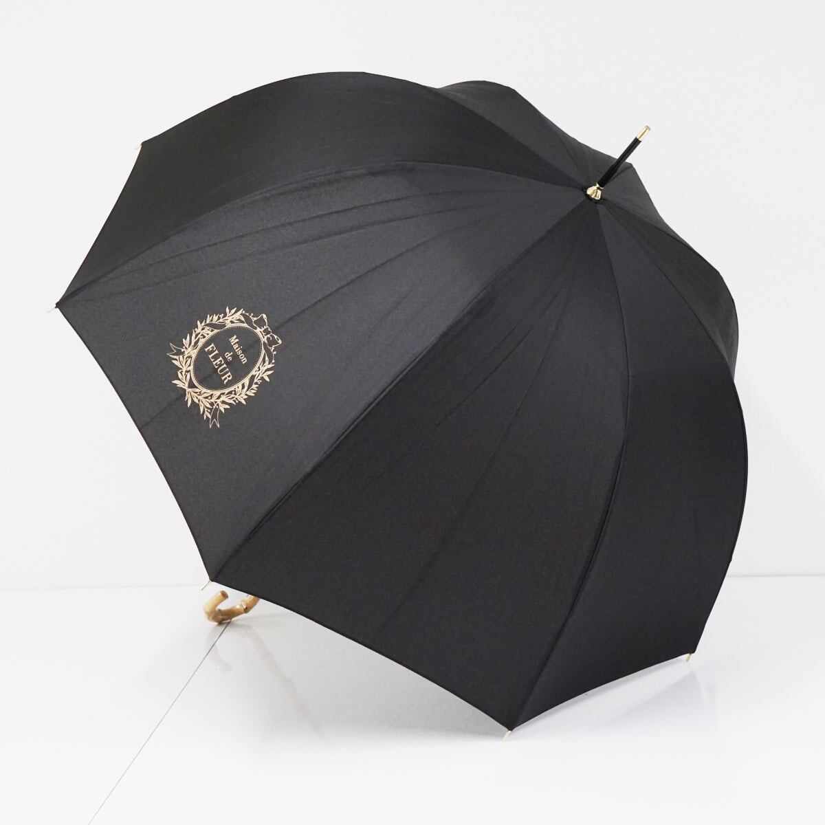 傘 Maison de FLEUR メゾンドフルール USED超美品 晴雨兼用 エンブレムプリント ブラック 深張り バンブーハンドル グラス骨 60cm A2371