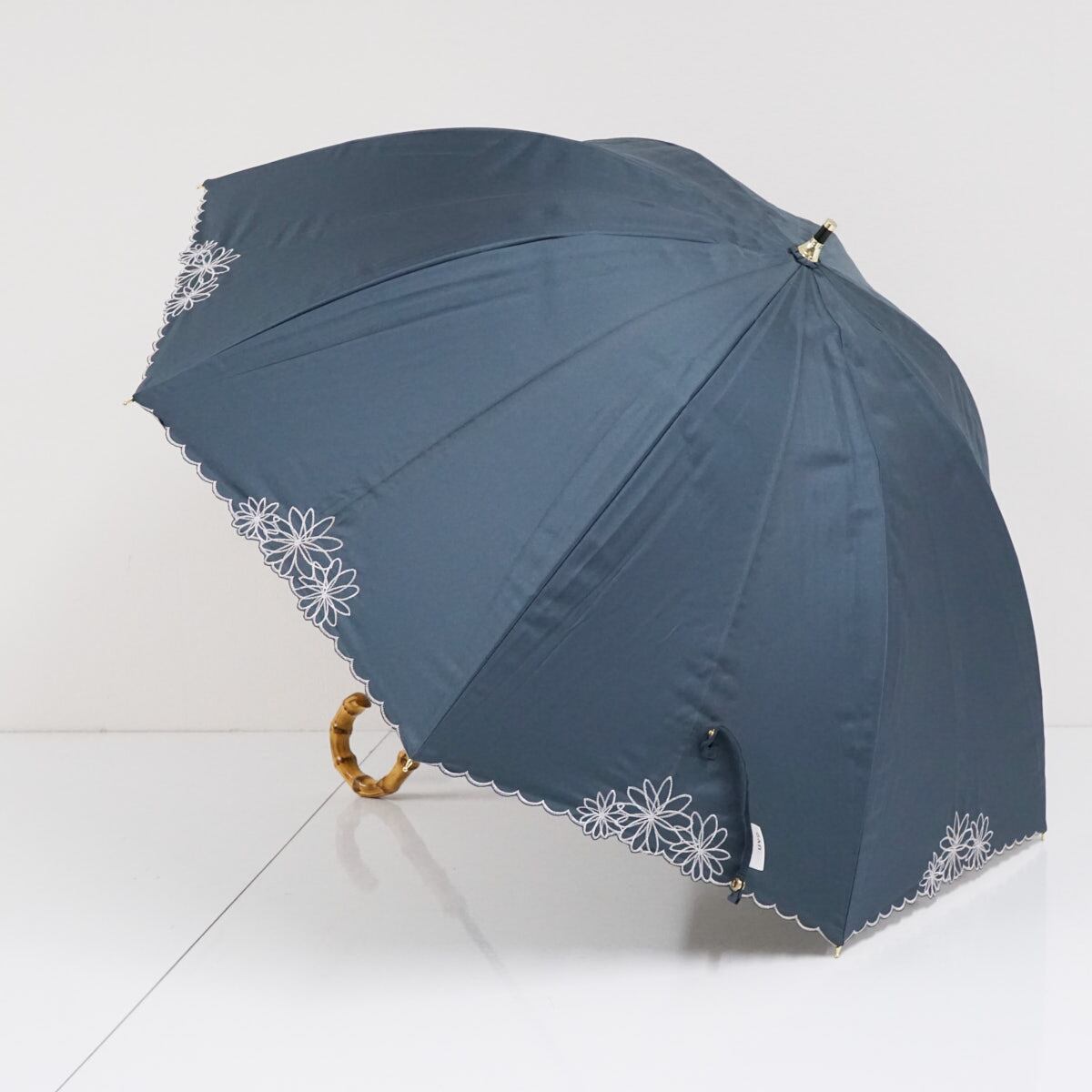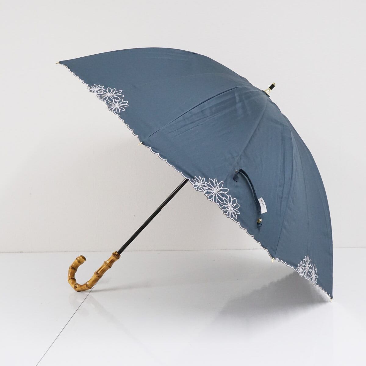 日傘 晴雨兼用 Wpc. UVO ウーボ USED美品 ブルーグレー 遮光 遮熱 UV 刺繍 フラワー 最強の日傘 寒竹手元 グラス骨 A2162