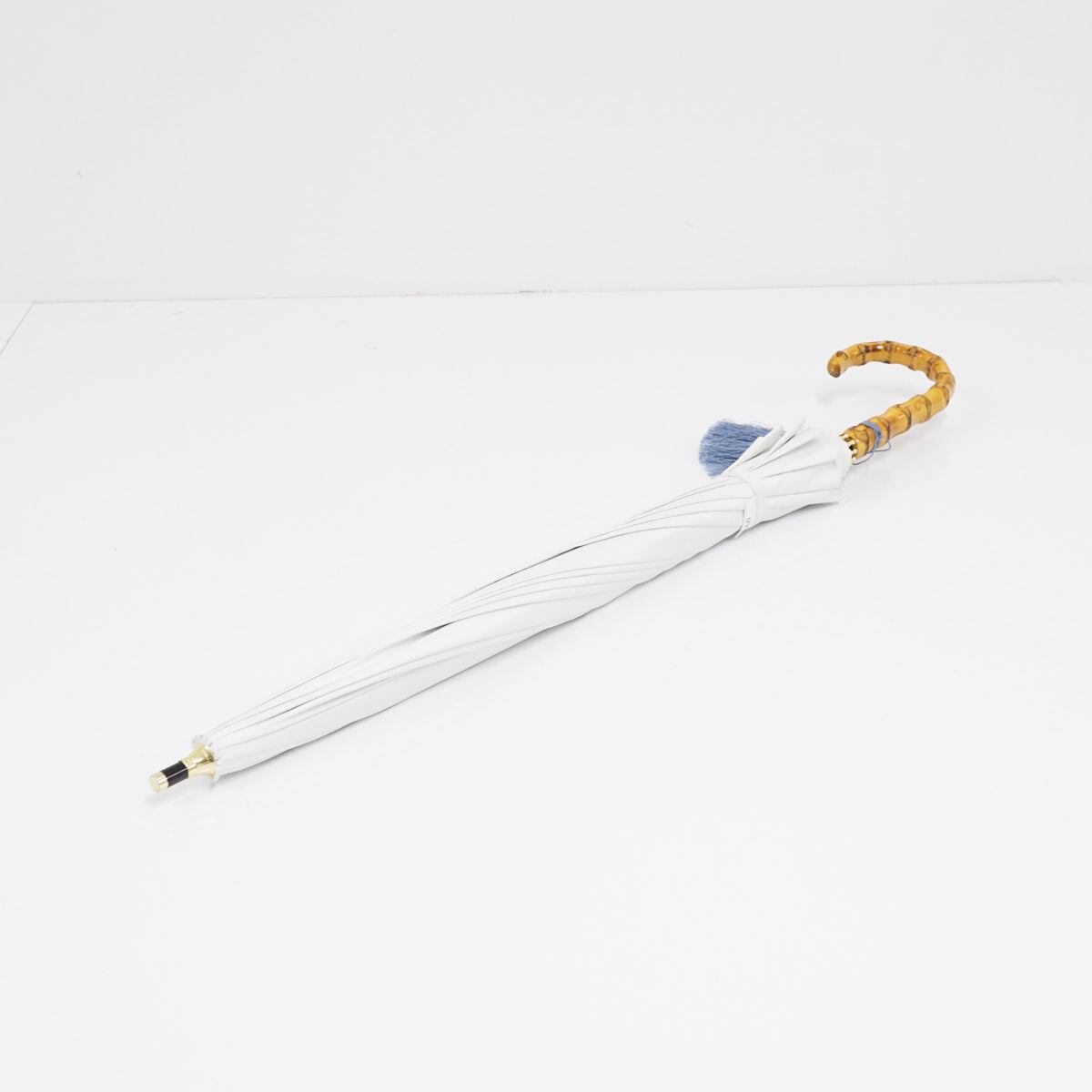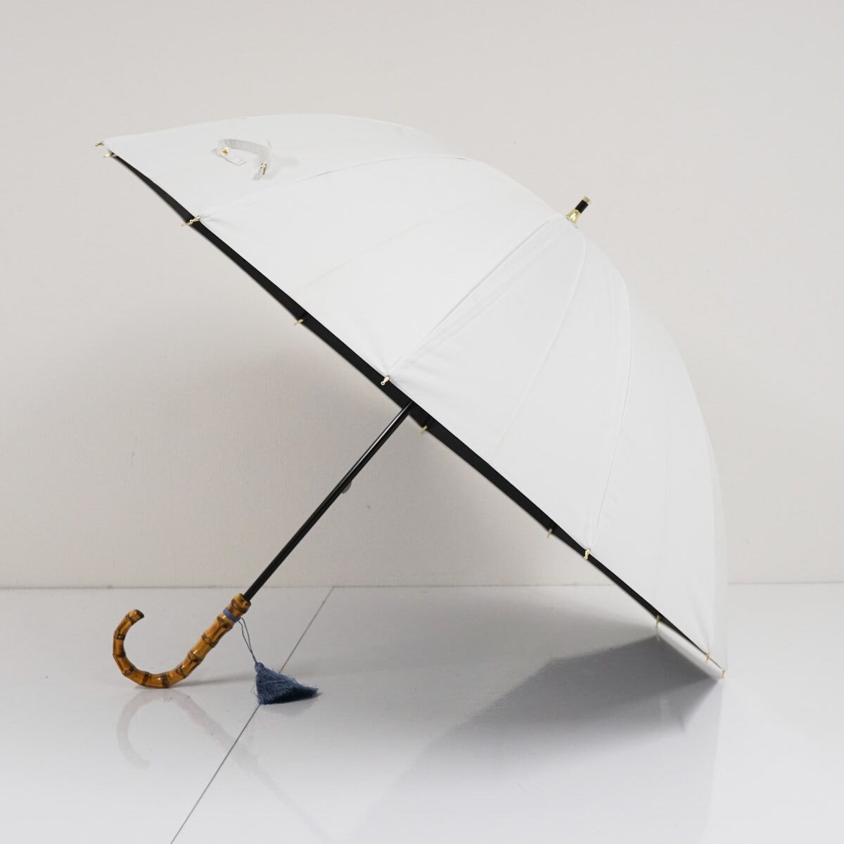 オフホワイトのシンプルな生地を基調に手元にタッセルをつけた