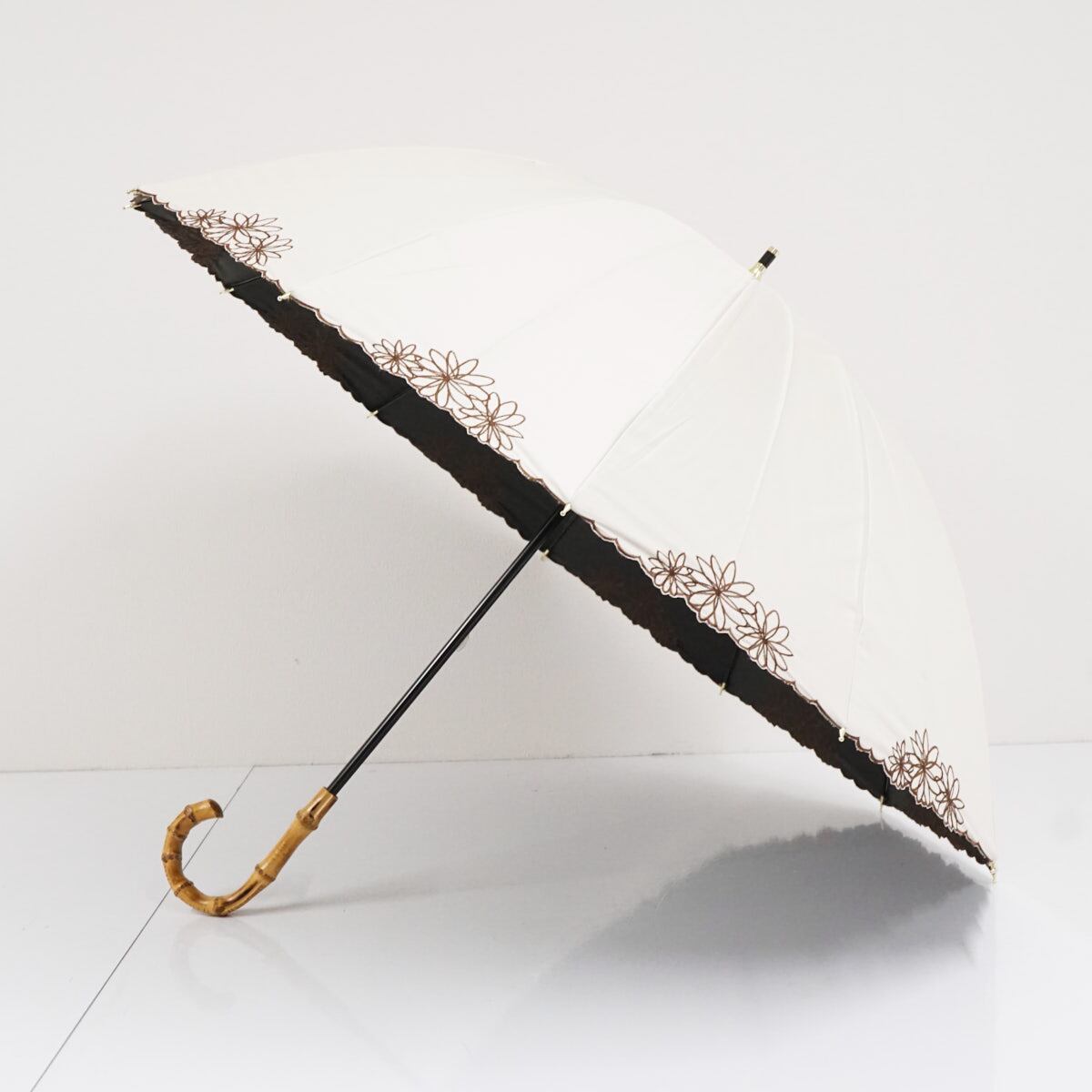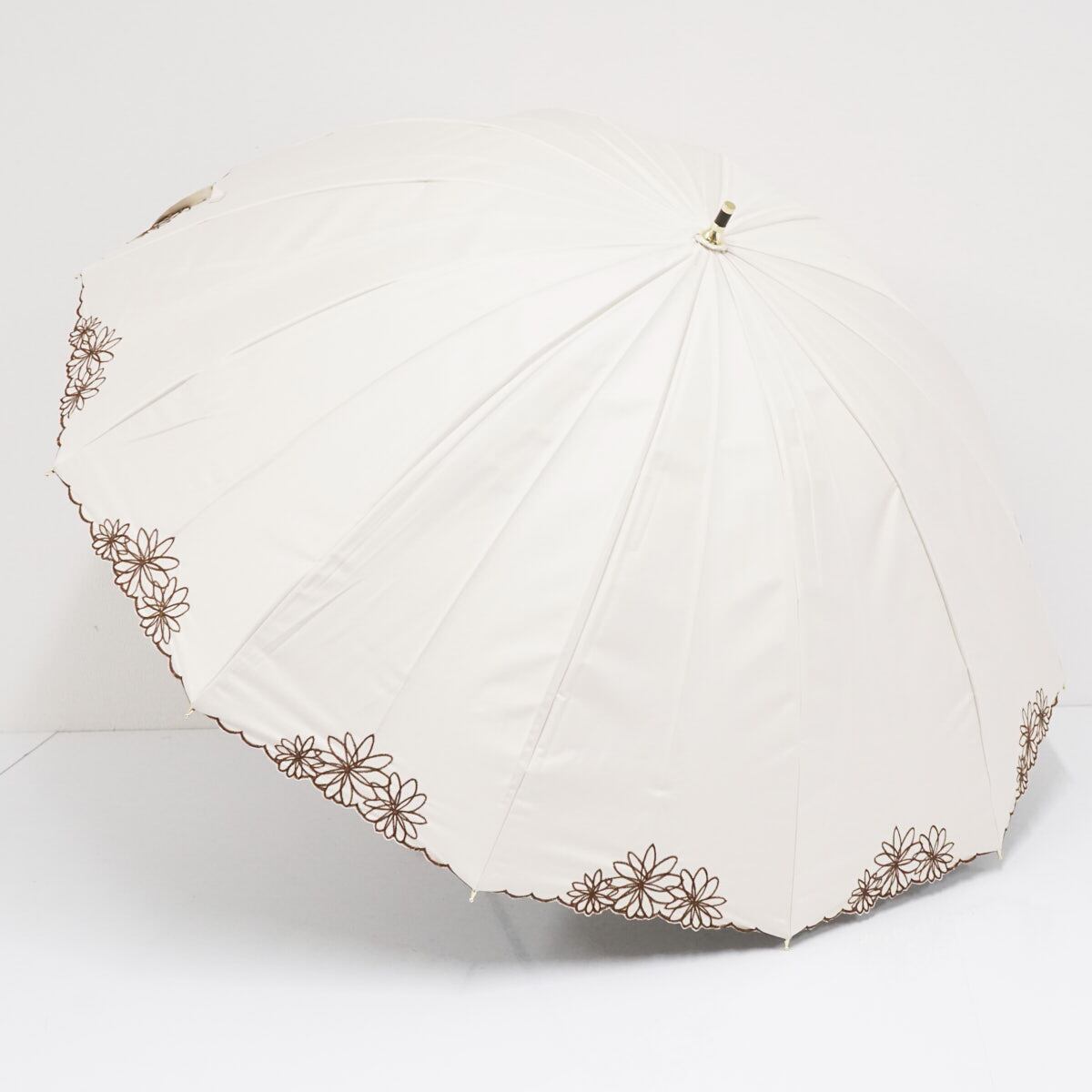 ベージュのシンプルな生地を基調に外周にフラワー刺繍を施した