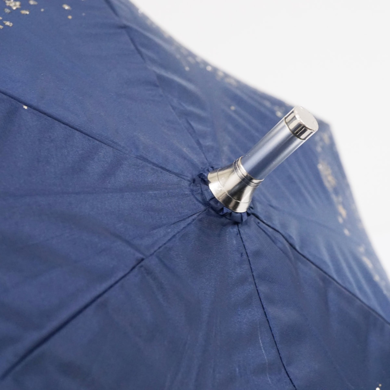 日傘 晴雨兼用 JILL STUART ジルスチュアート USED美品 ネイビー ラメ 星 木製手元 UV 遮光 グラス骨 6本骨 50cm A2176