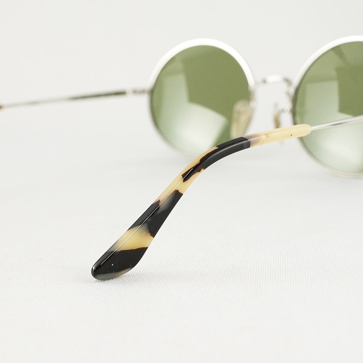 大き目のサイズのオーバルシェイプのフレームには70年代を彷彿させるクラシックで永続的なカラーのレンズがマッチングされています。
