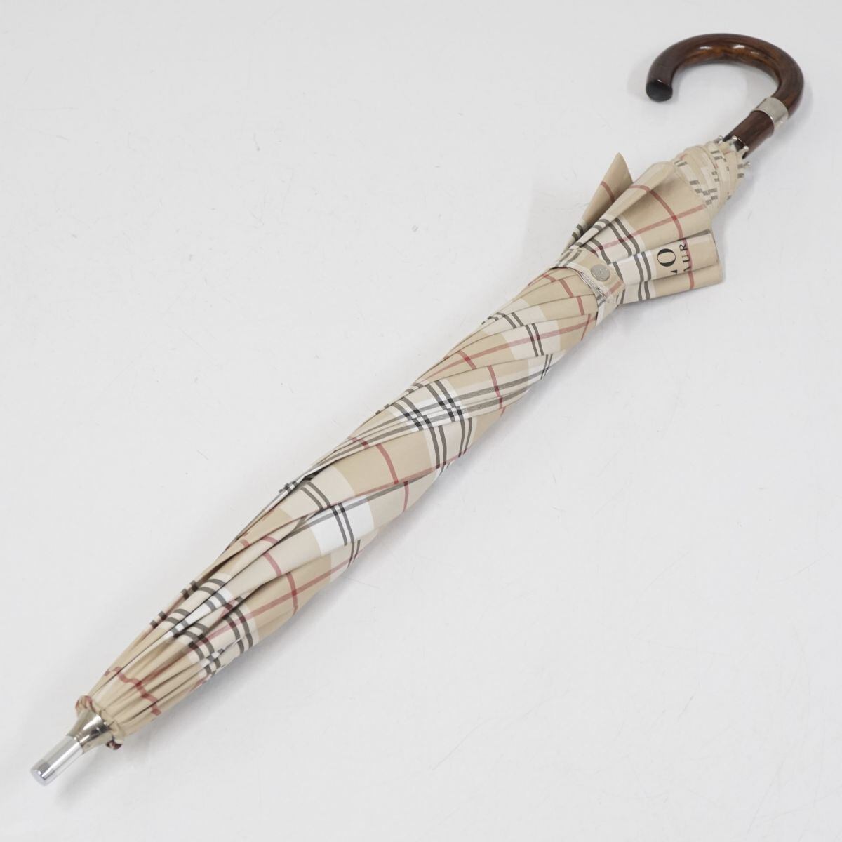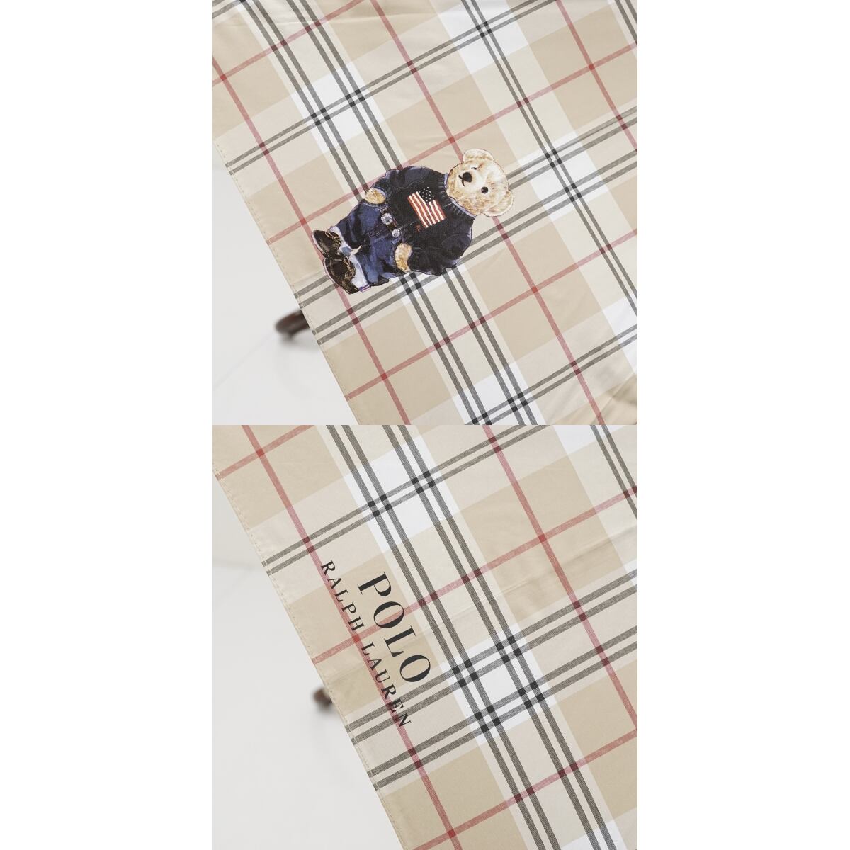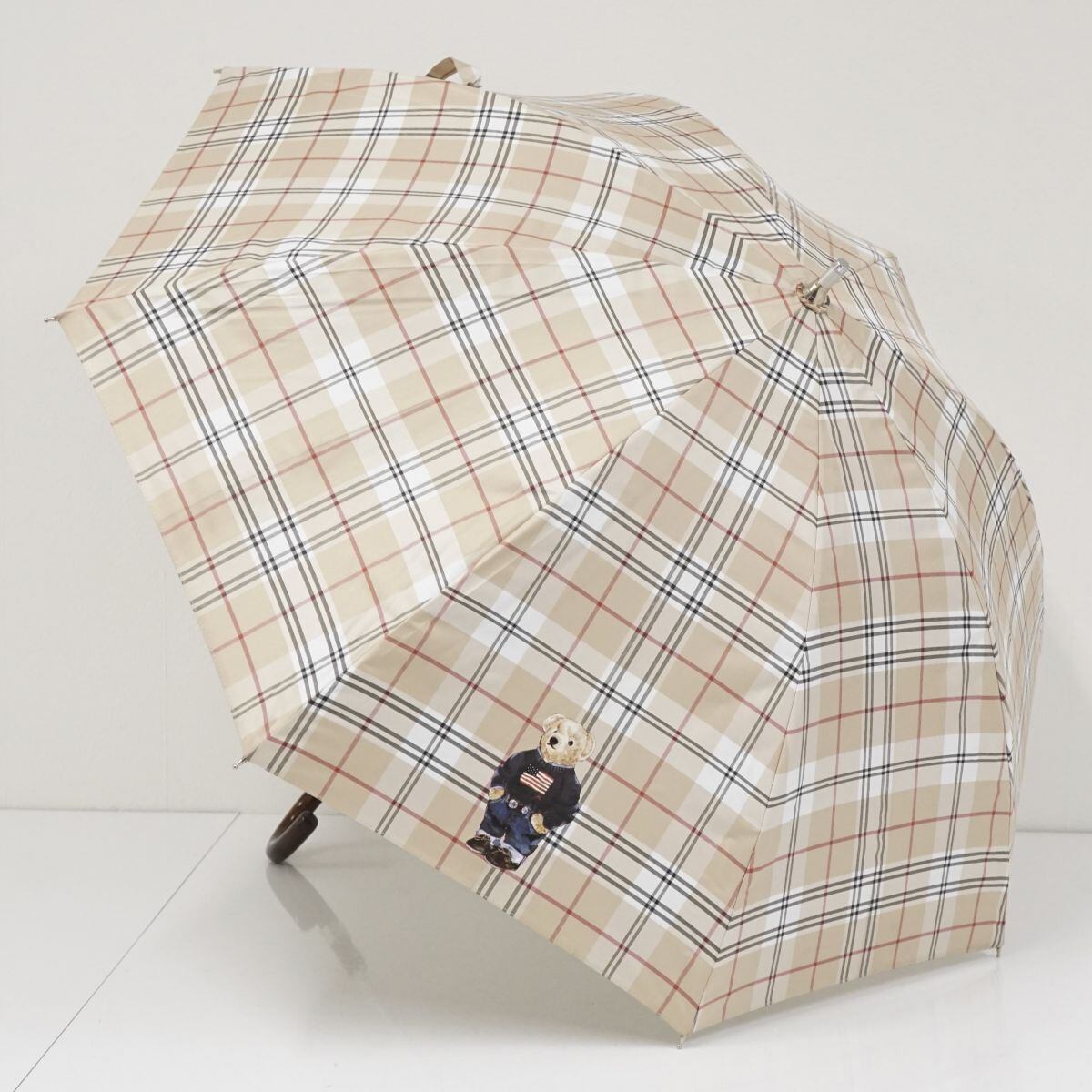 日傘 ラルフローレン 晴雨兼用日傘 USED美品 1級遮光 UV ポロベア ロゴ チェック ベージュ 50cm S2181