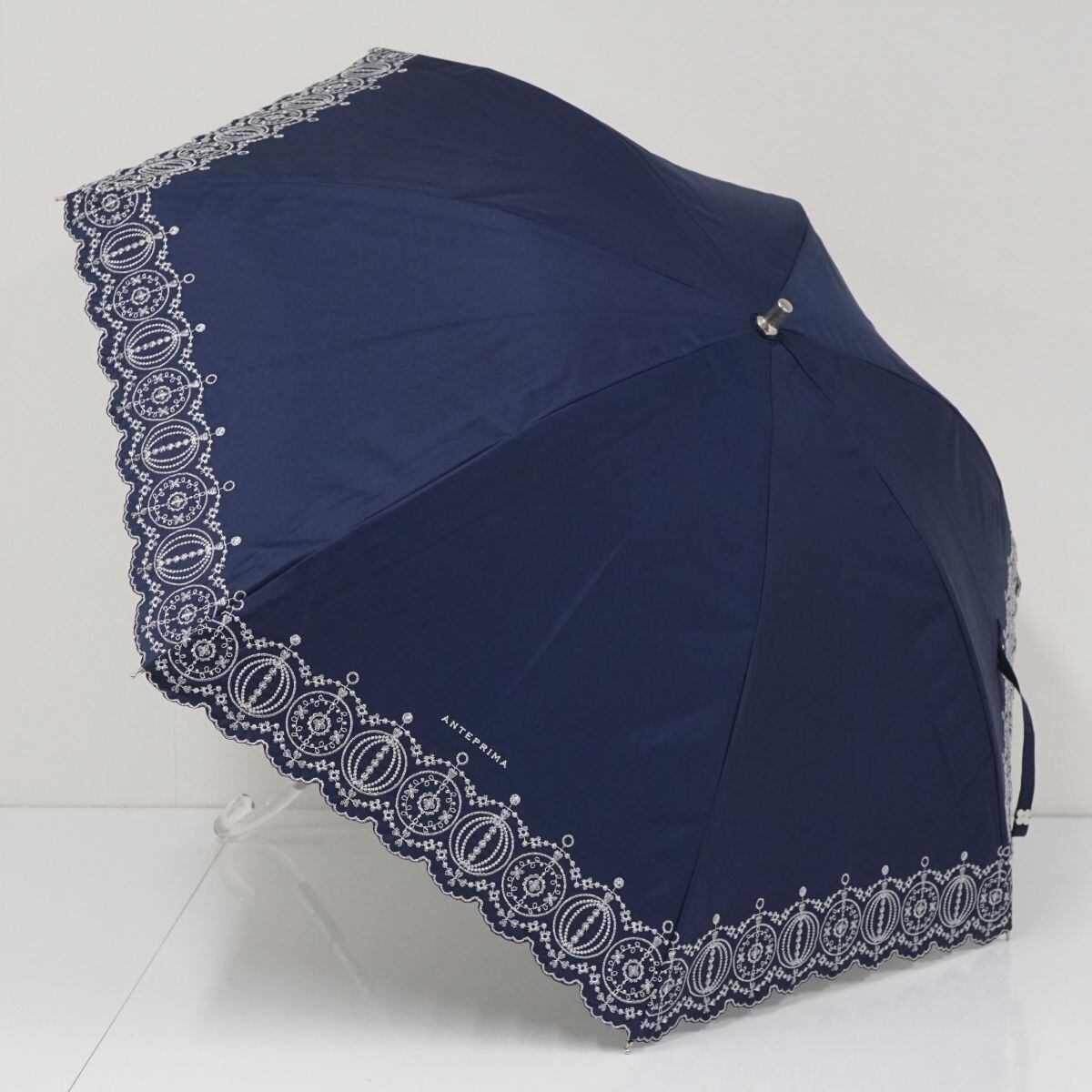 ANTEPRIMA アンテプリマ USED美品 サマーシールド Li バレリーナ 刺繍 晴雨兼用 日傘 ネイビー 刺繍 50cm S2182