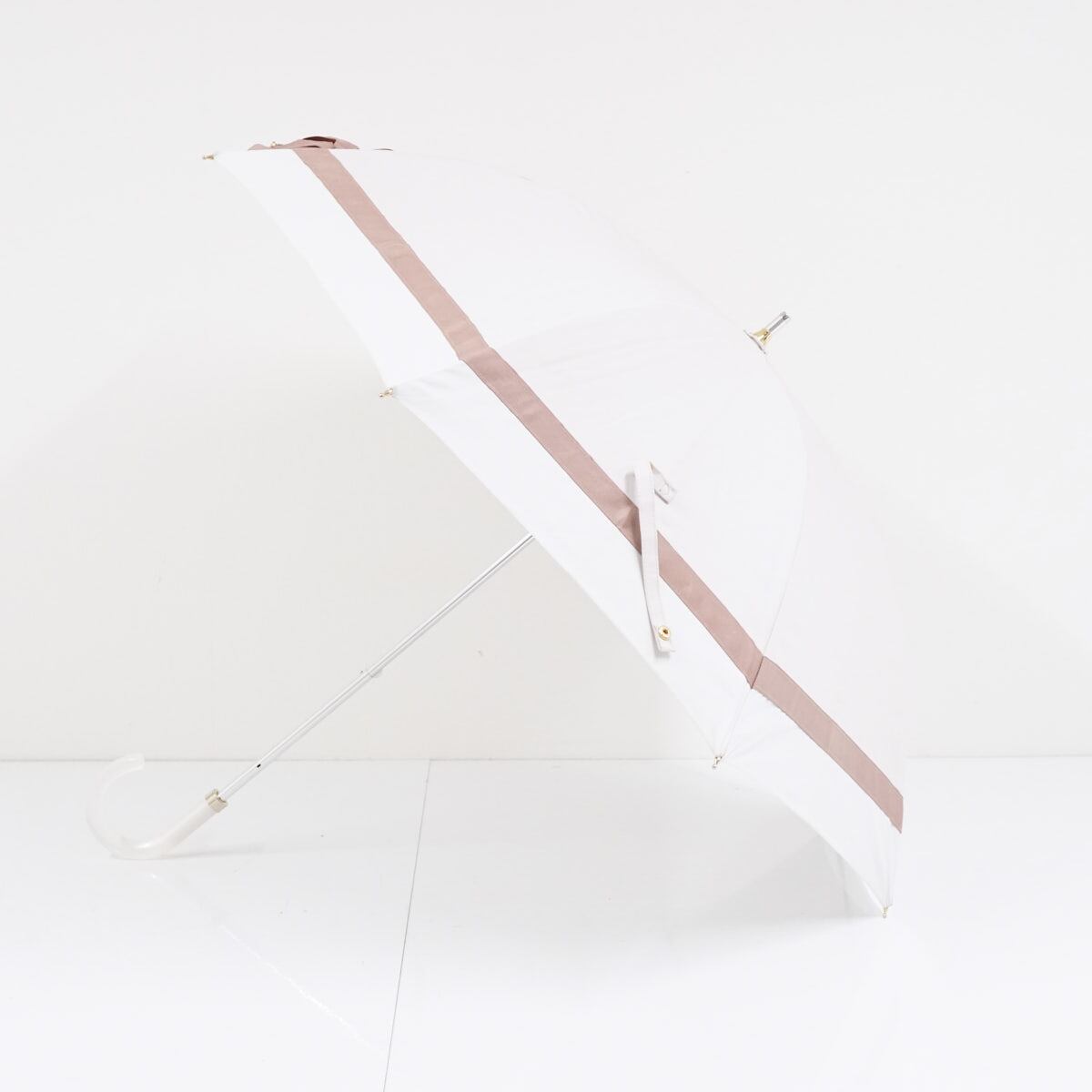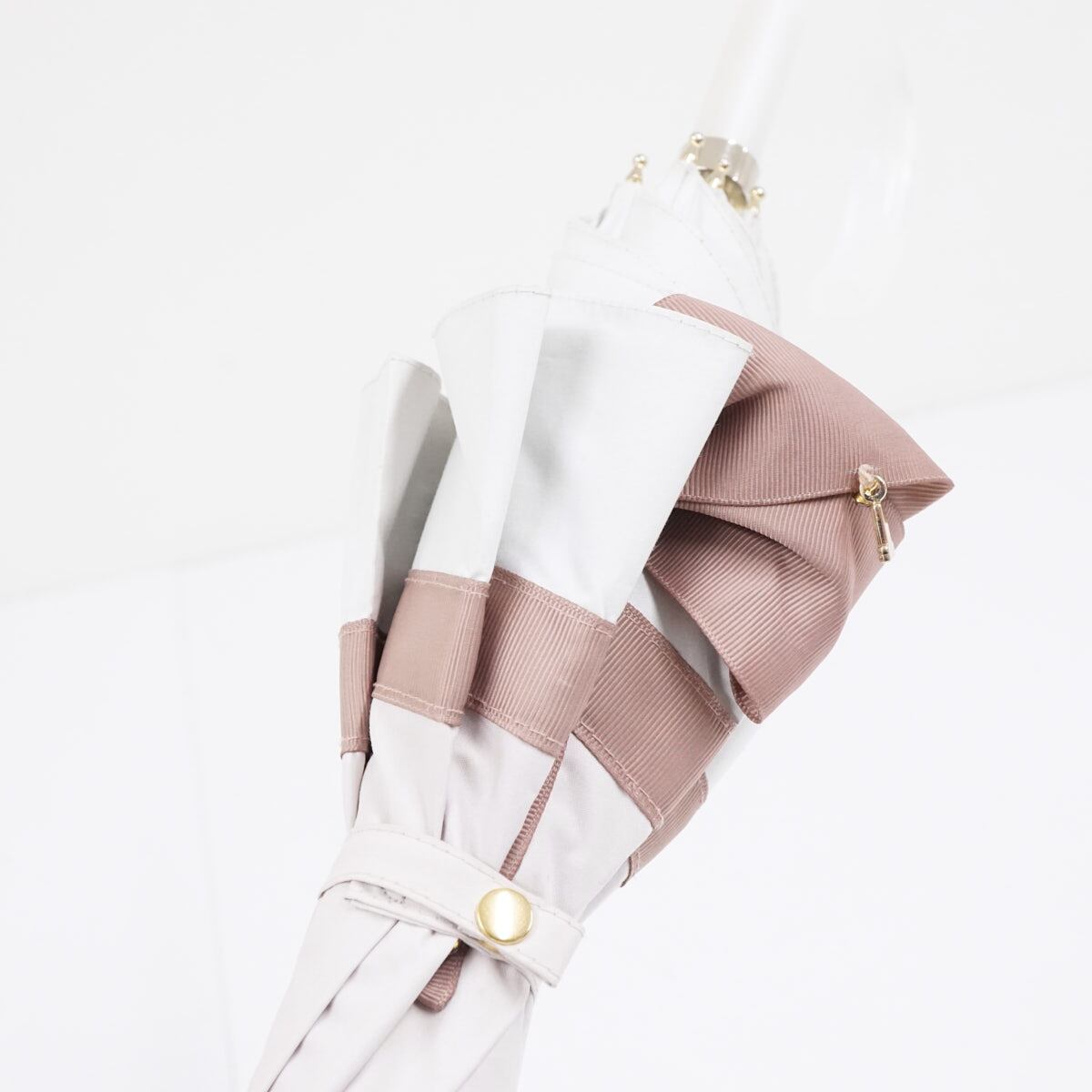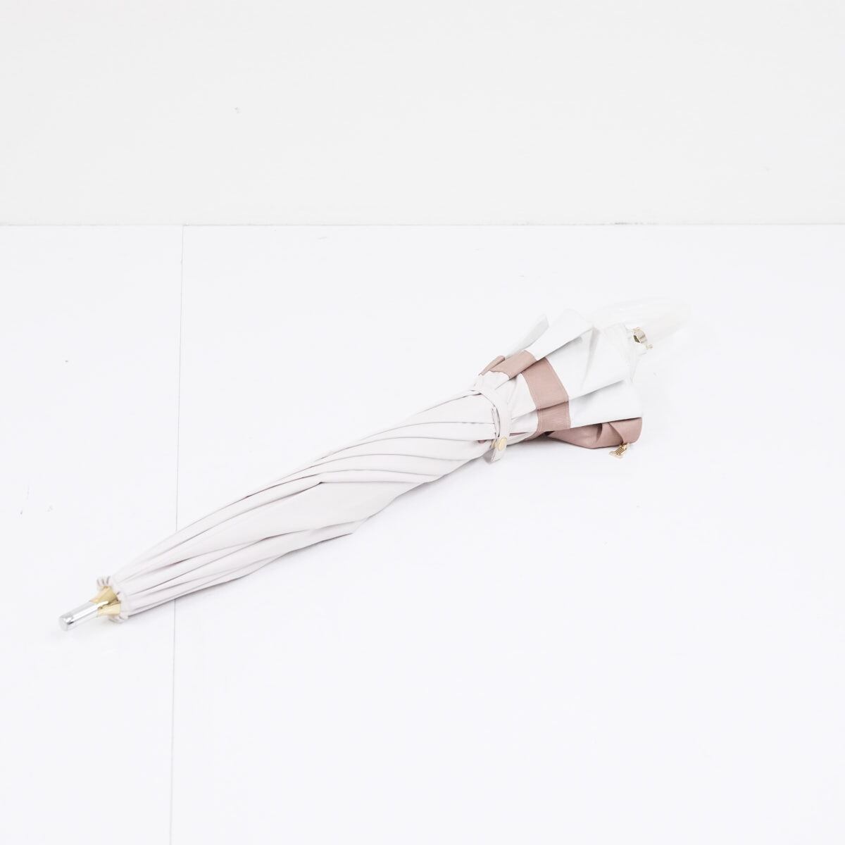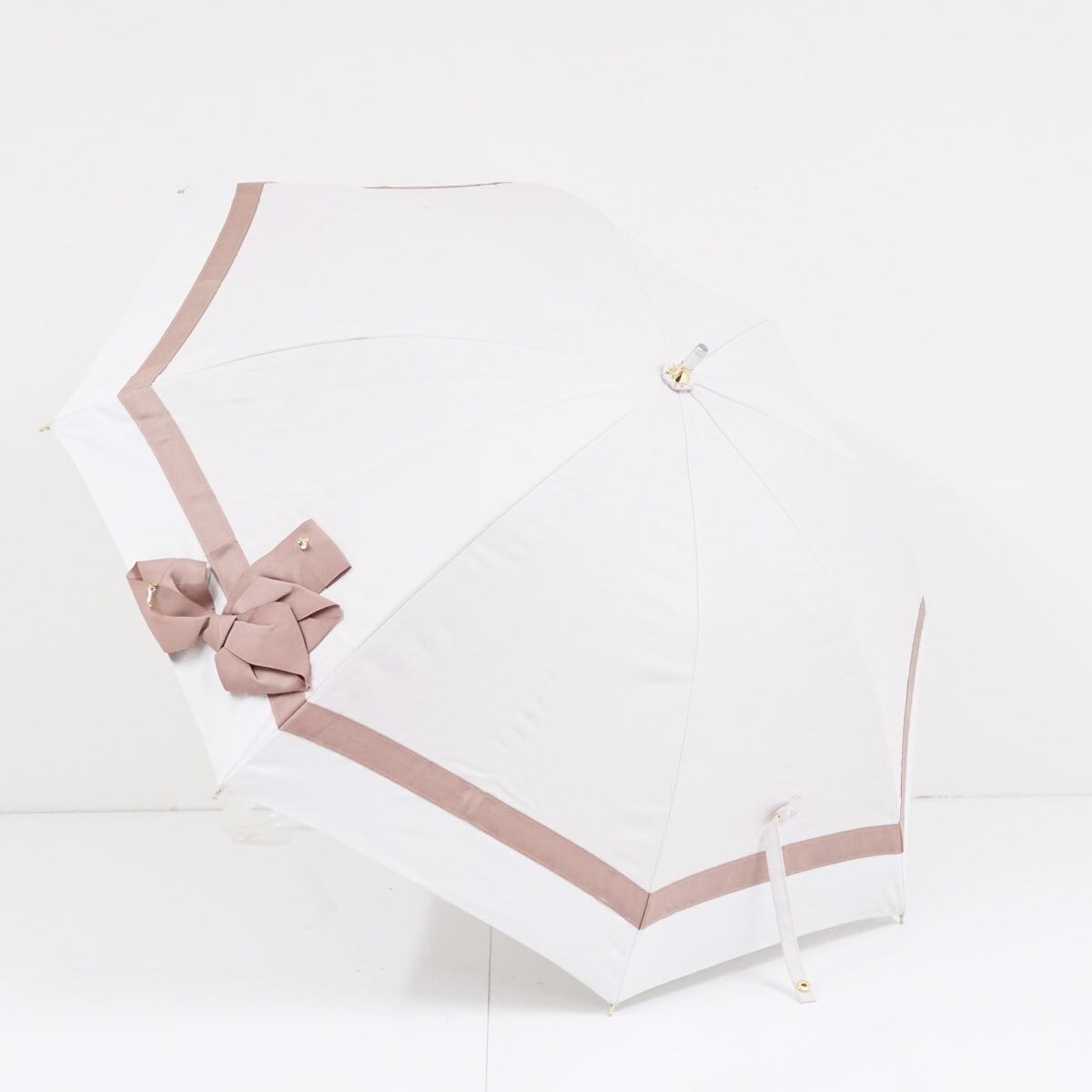 ボリュームのある大きなリボンを配置した、ラブリーなデザインの晴雨兼用の日傘です。