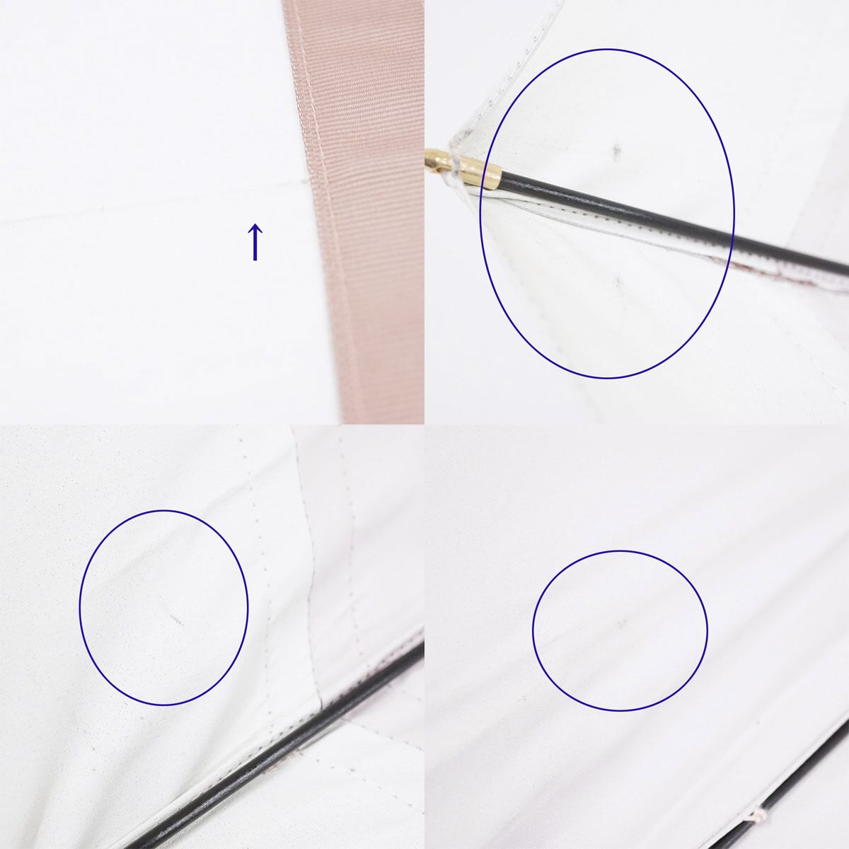 日傘 晴雨兼用 LANVIN en Bleu ランバンオンブルー USED美品 ボリュームリボン チャーム ピンク×ベージュ 遮光 UV グラス骨 50cm A2178