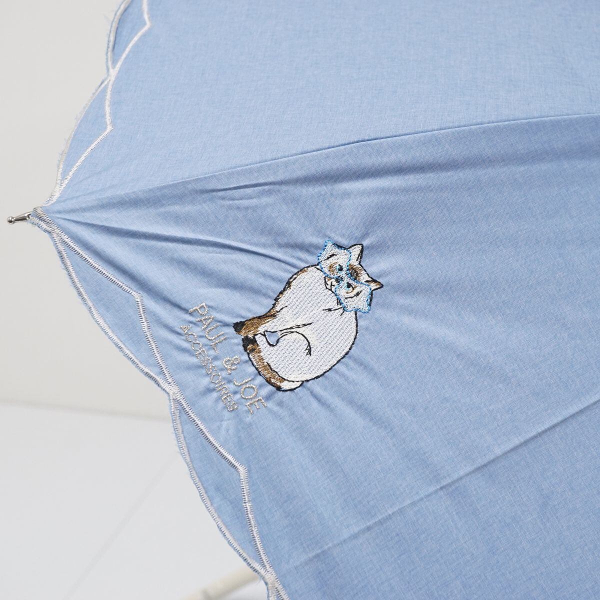 晴雨兼用日傘 PAUL&JOE ポールアンドジョー USED美品 ブルー 猫 サングラスキャット UV 遮熱 50cm A2185