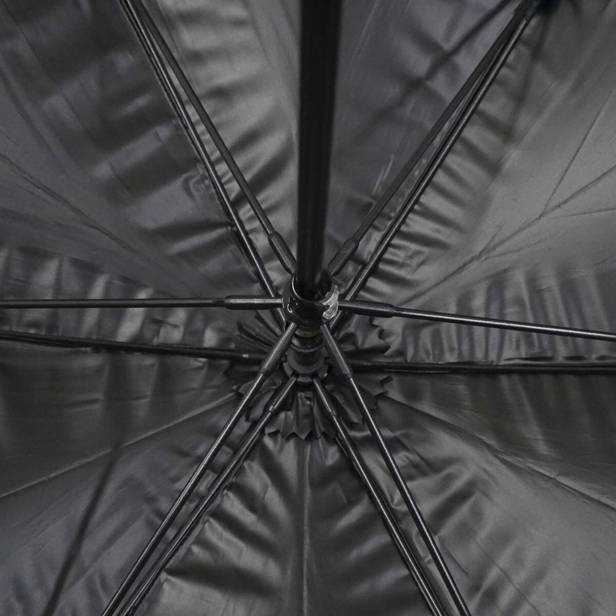 軽くてスマートなグラスファイバーの6本骨で、ブラックの生地に中央に入った1コマの箔プリントがアイキャッチになったデザインです。