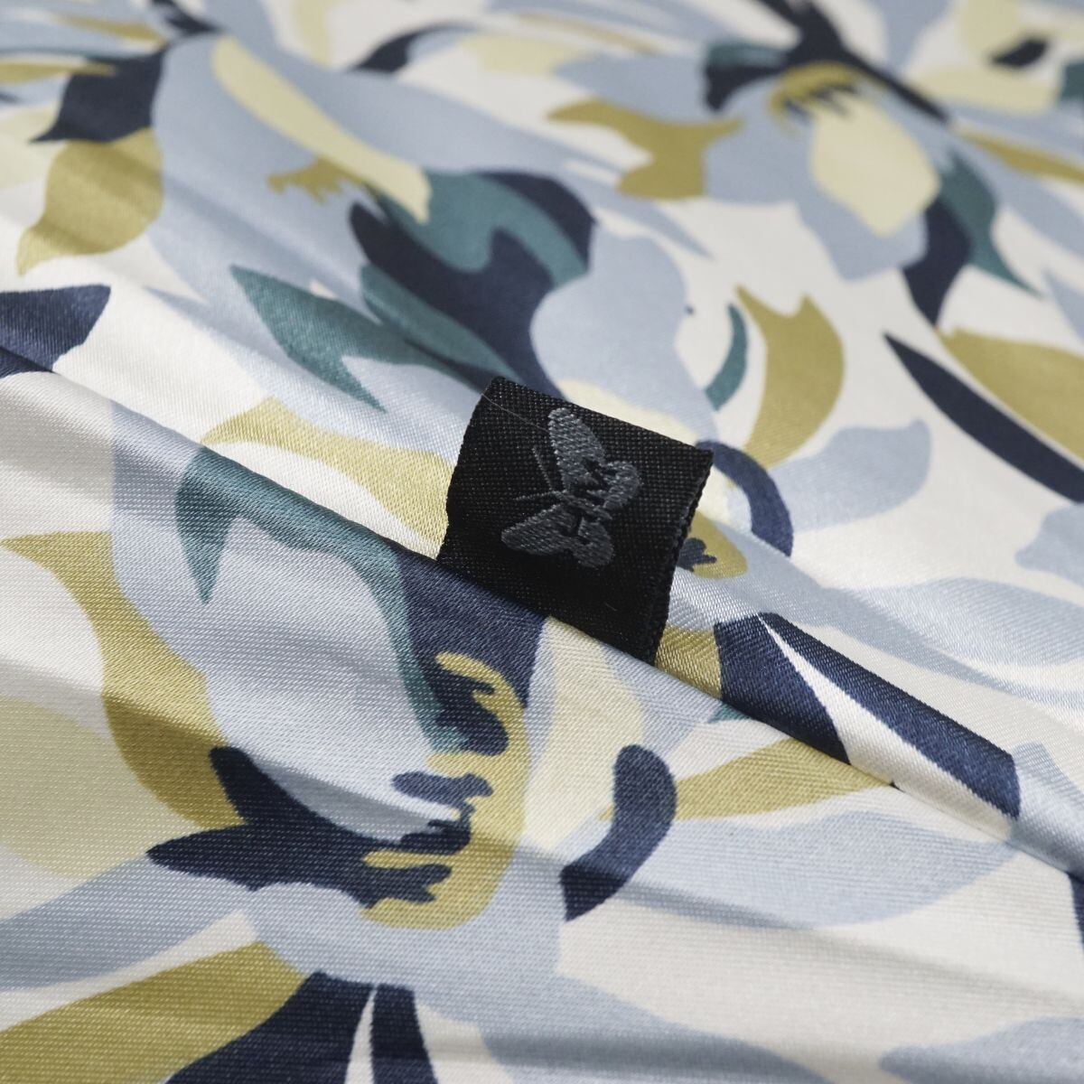 光沢感ある生地に、アーティスティックな花柄がデザインされています。
