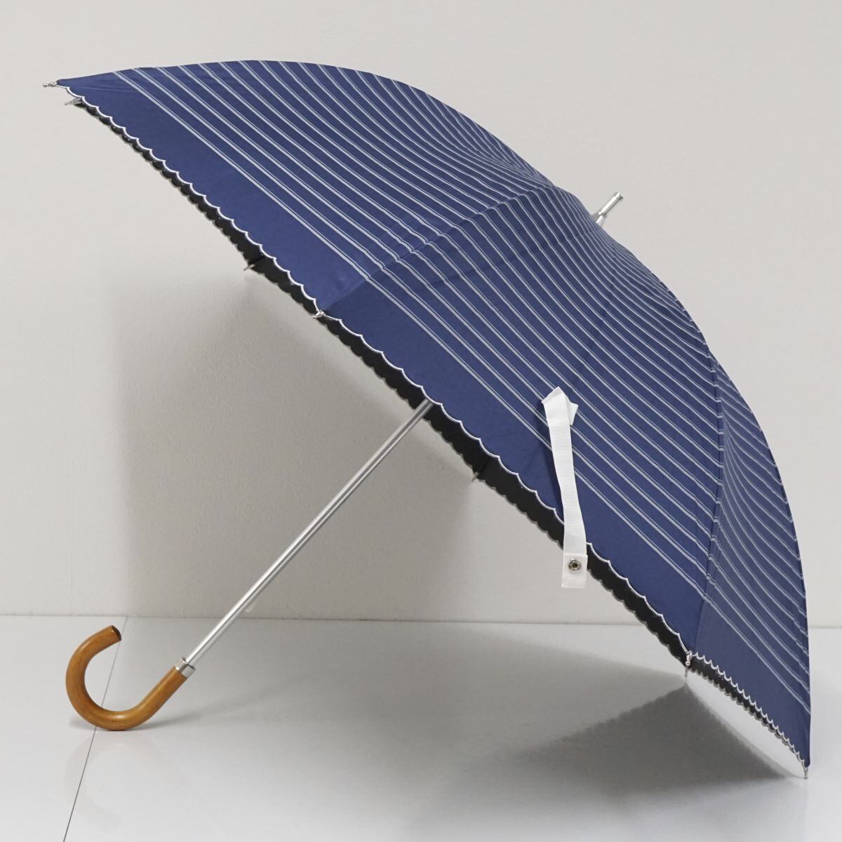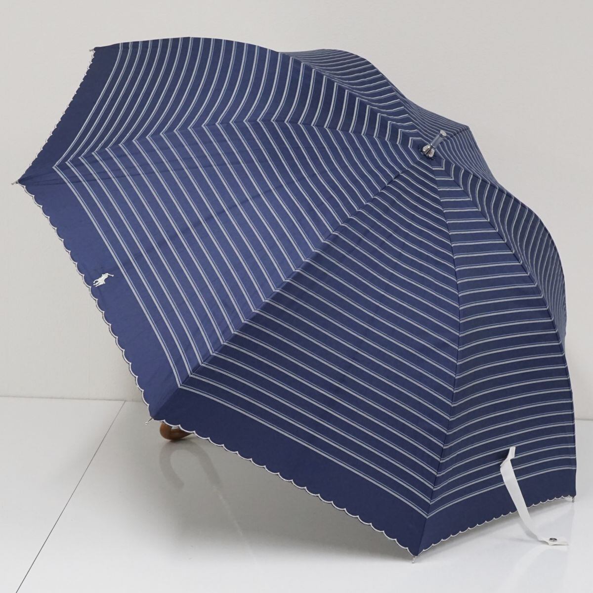 日傘 Polo Ralph Lauren ポロラルフローレン USED美品 晴雨兼用 ボーダー ネイビー UV 遮光 55cm S2198