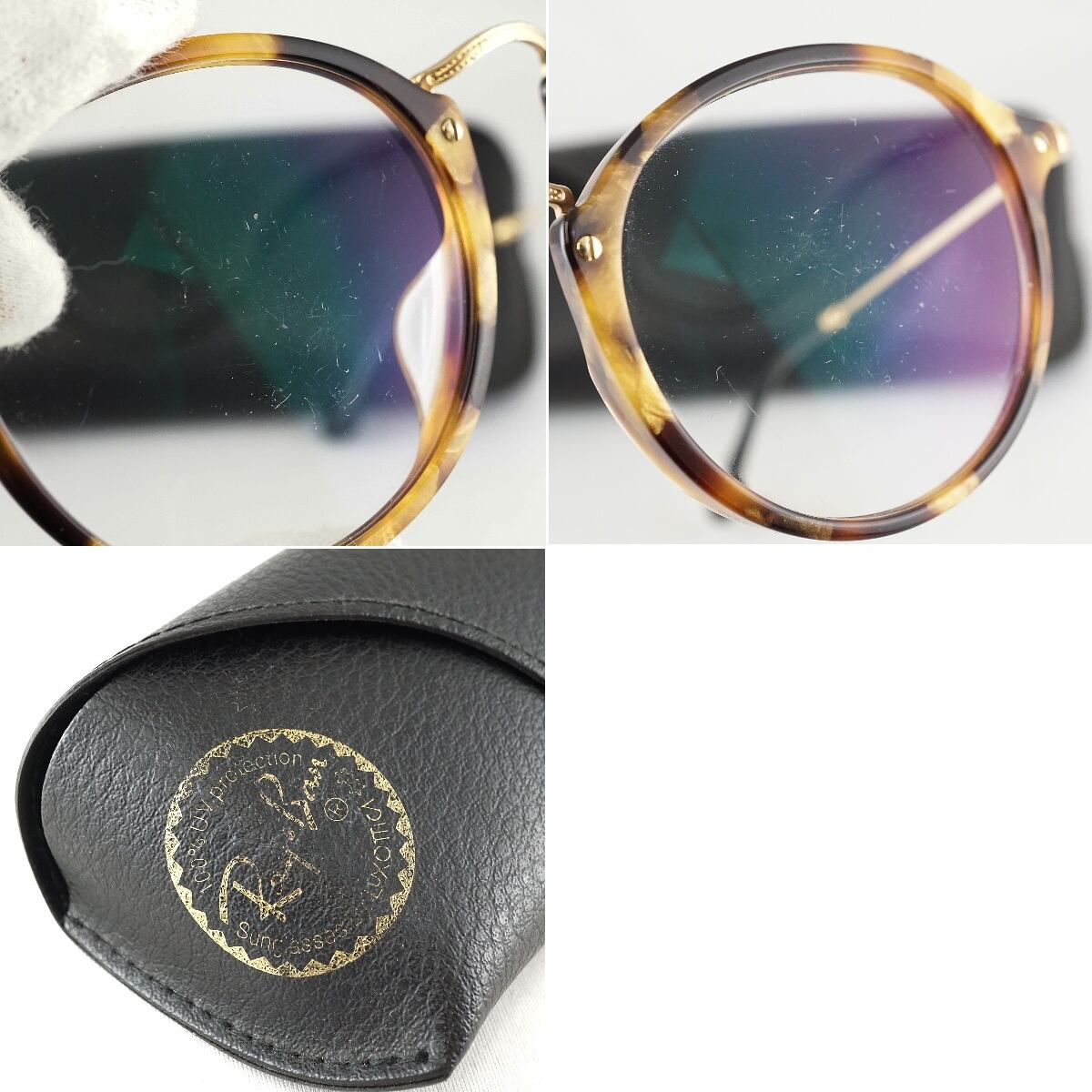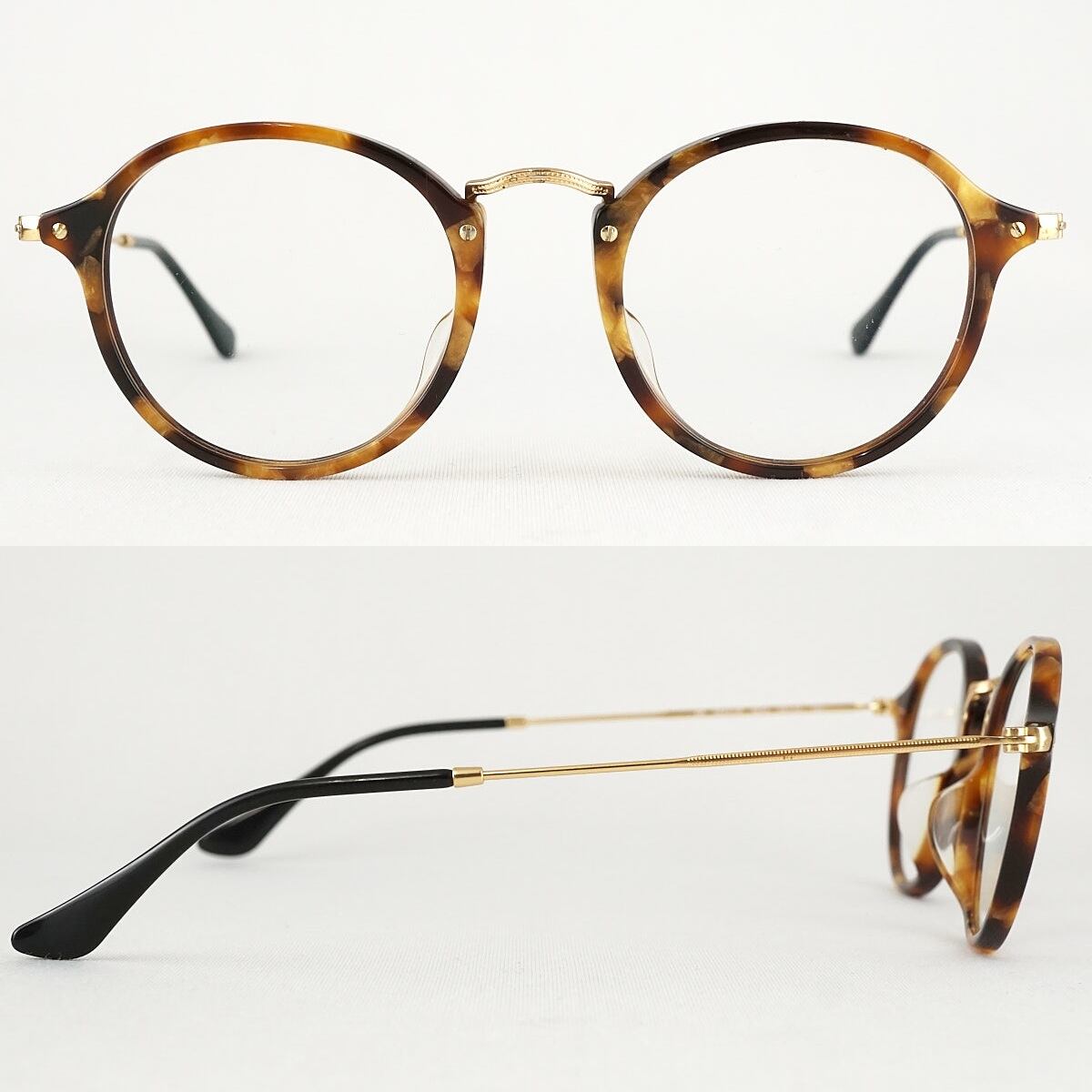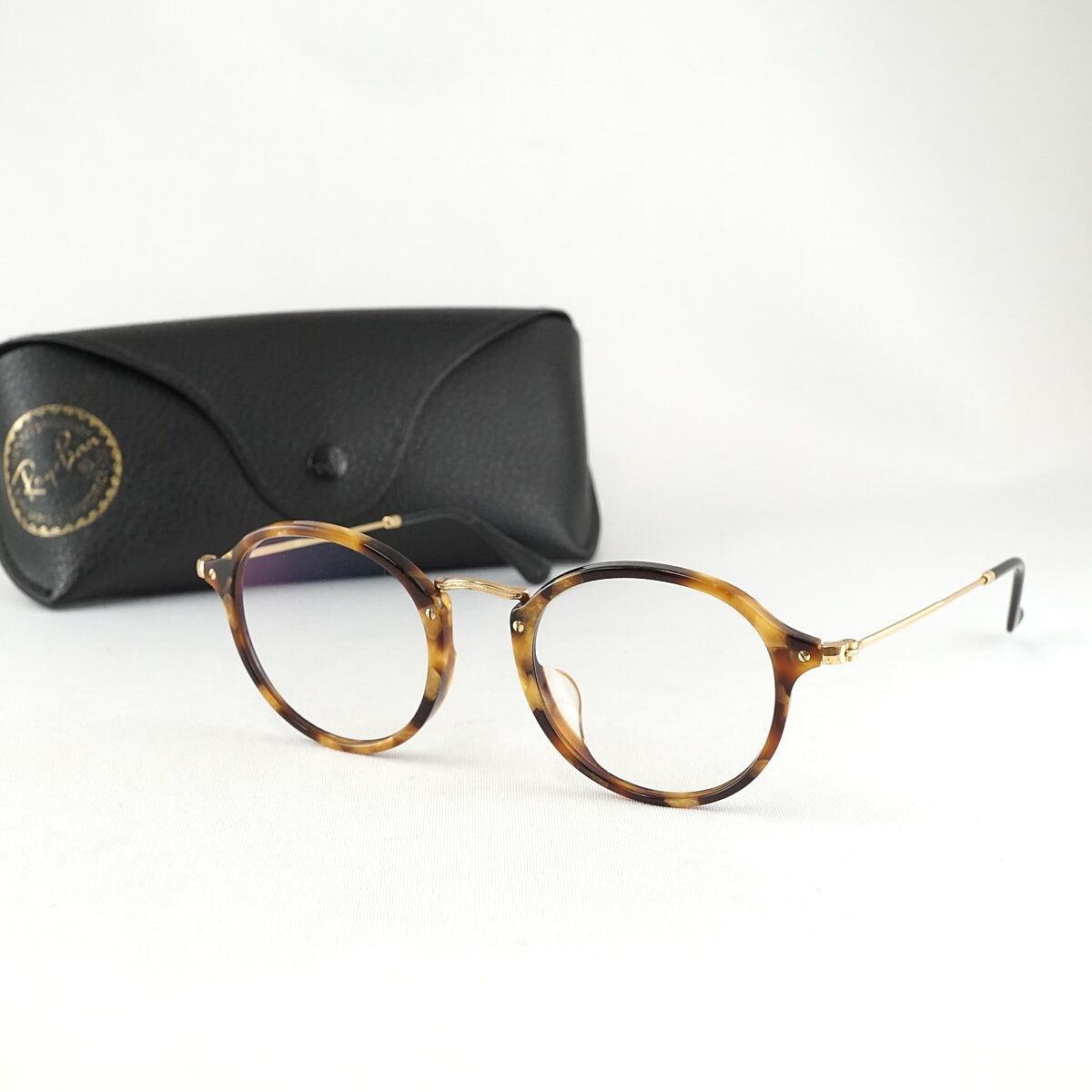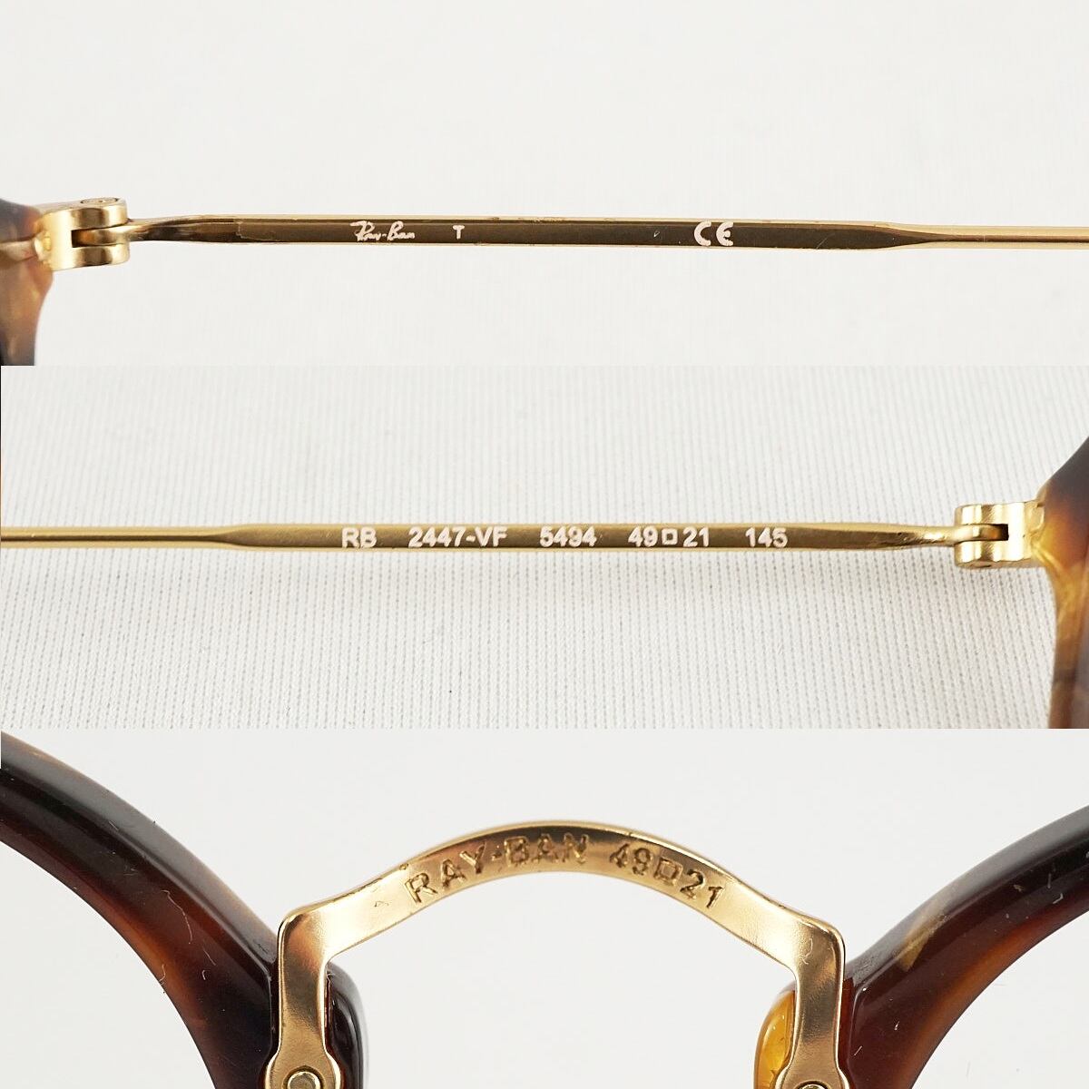 眼鏡 RayBan RB2447-VF USED品 度無し ブラウン ラウンド クラシカル レイバン ケース付 アイウェア 中古 X6753