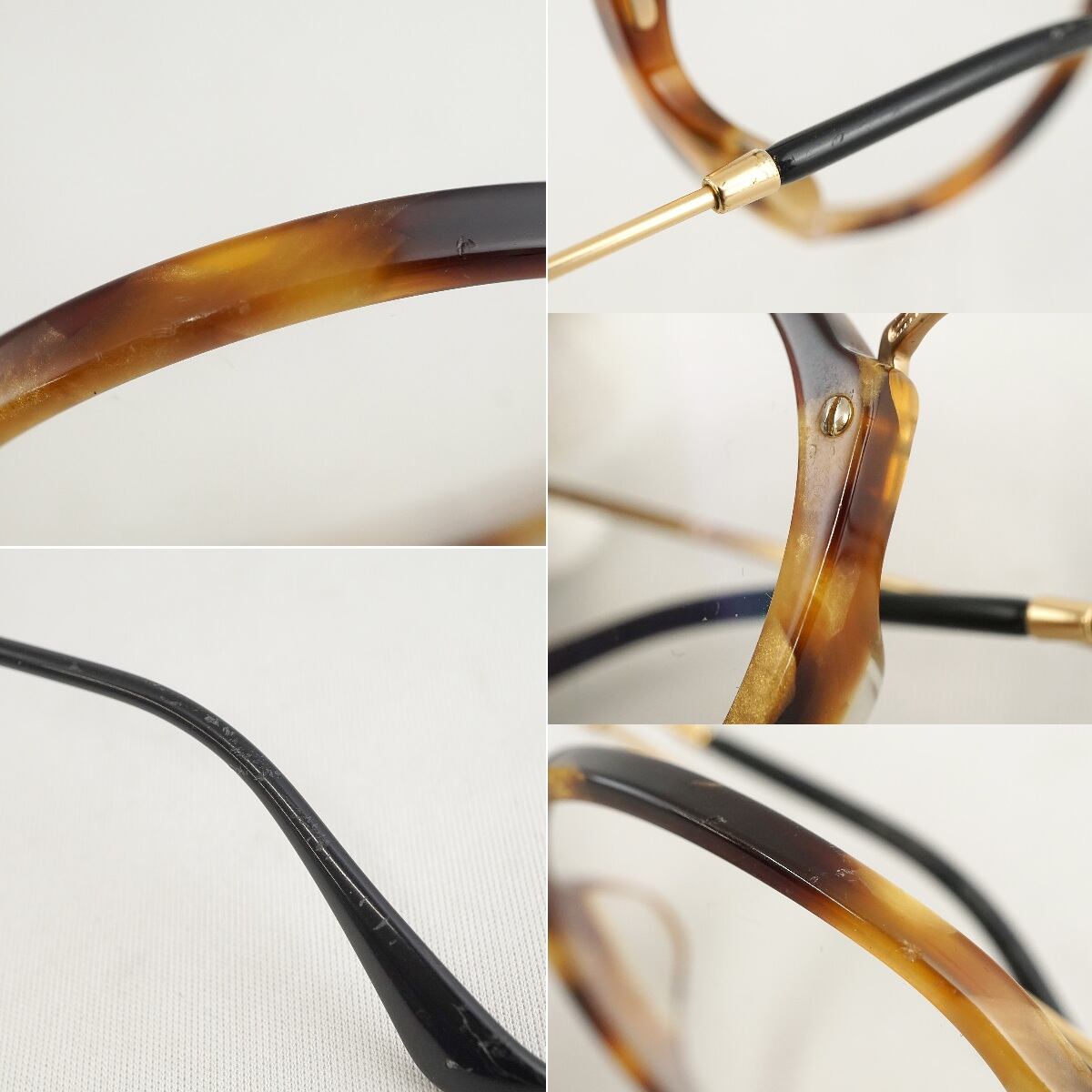 ※モダン、リム、テンプル、ヨロイ等、フレーム全体にスリキズ、小キズ、薄汚れ、塗装の剥がれがあります。(一部を画像にてご確認ください。)