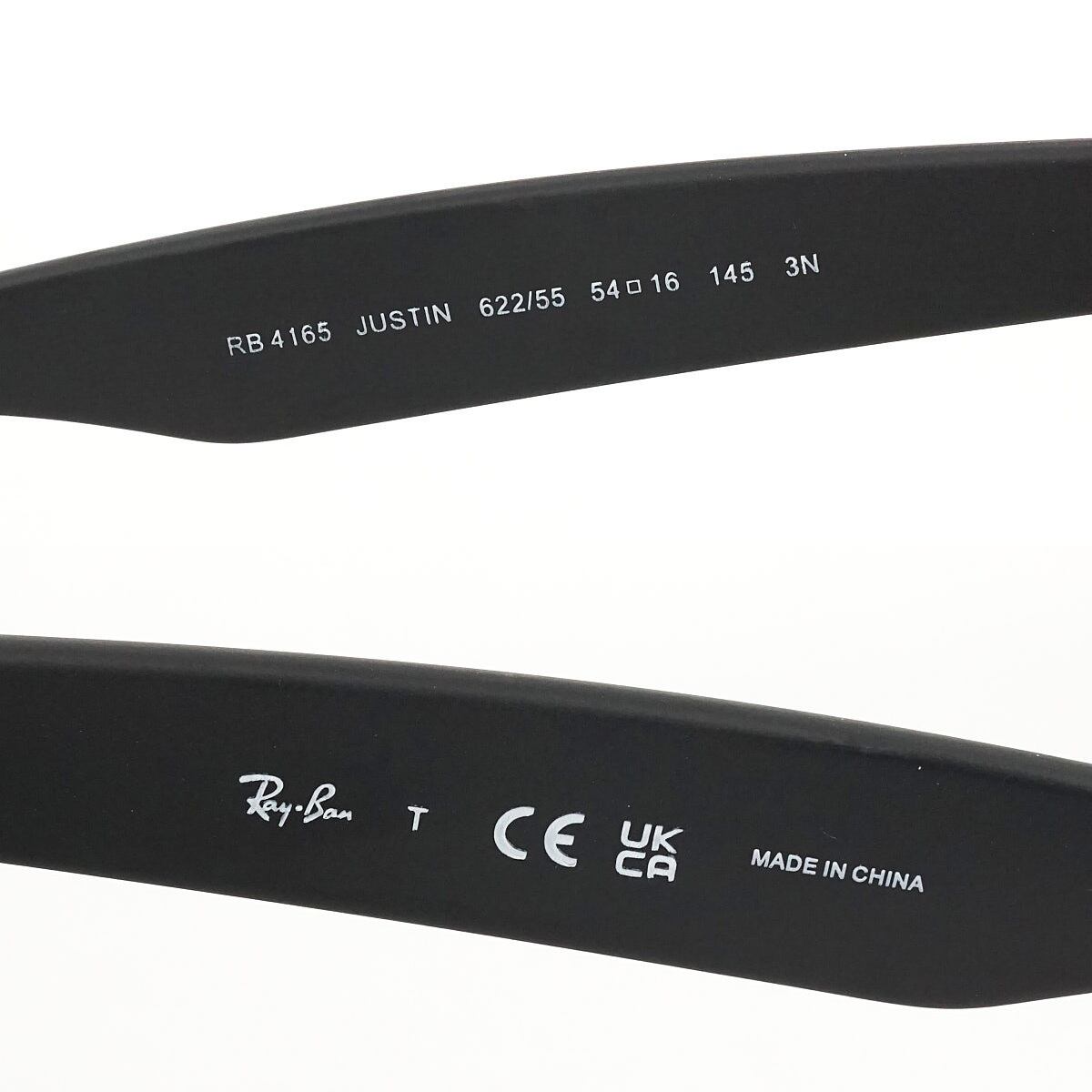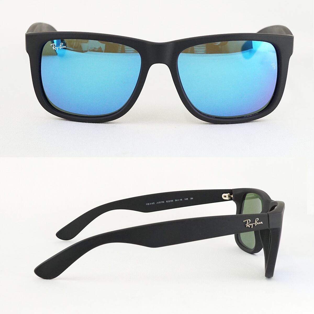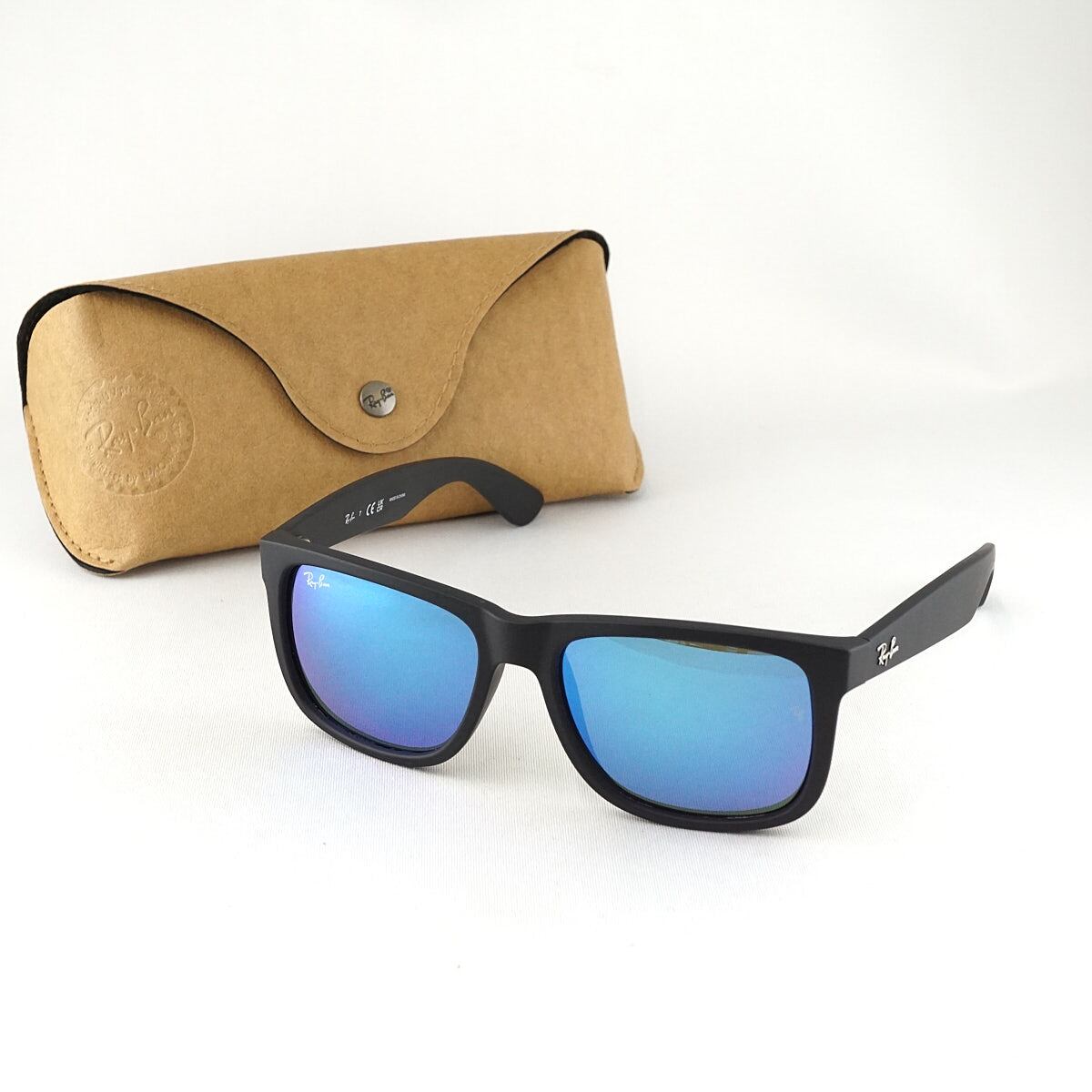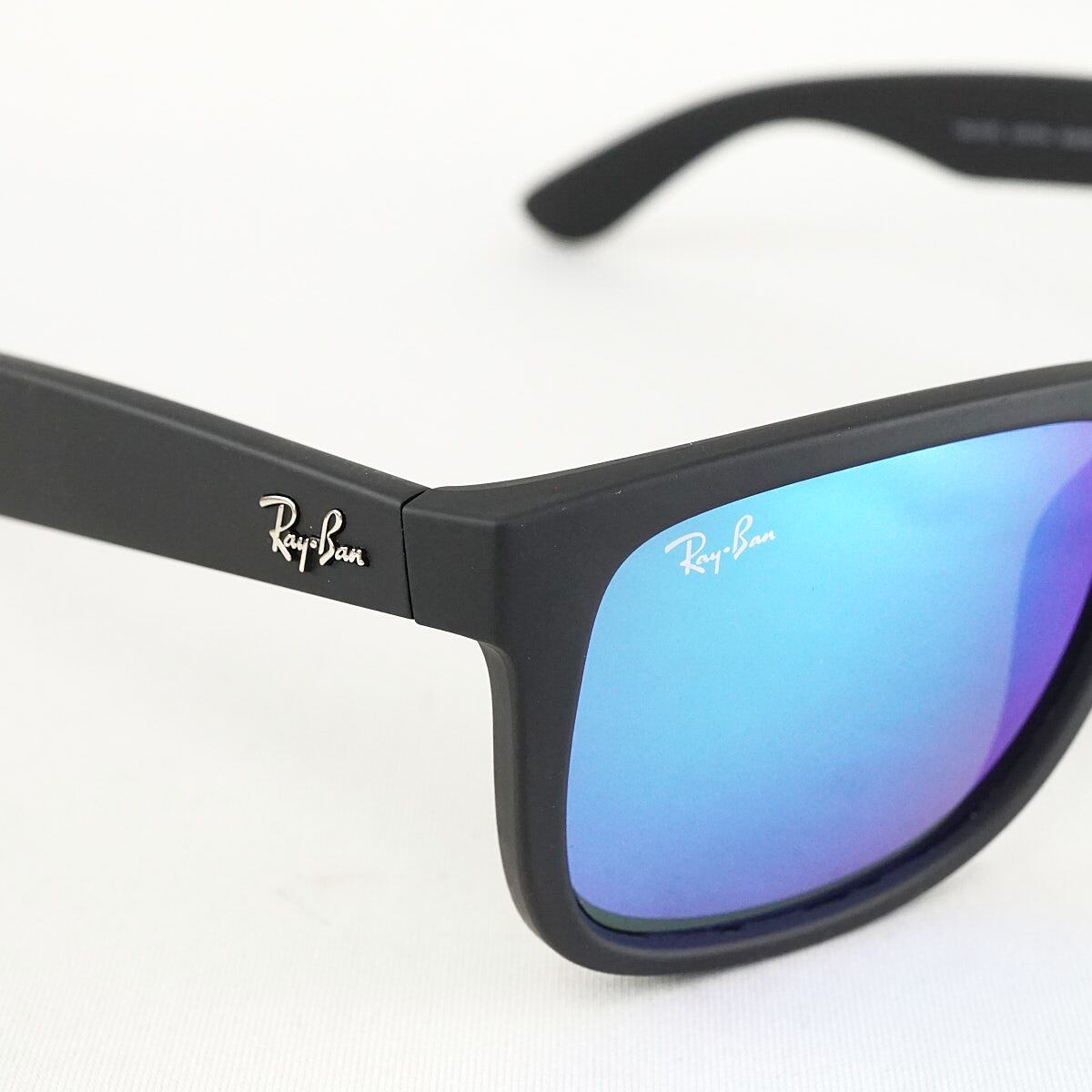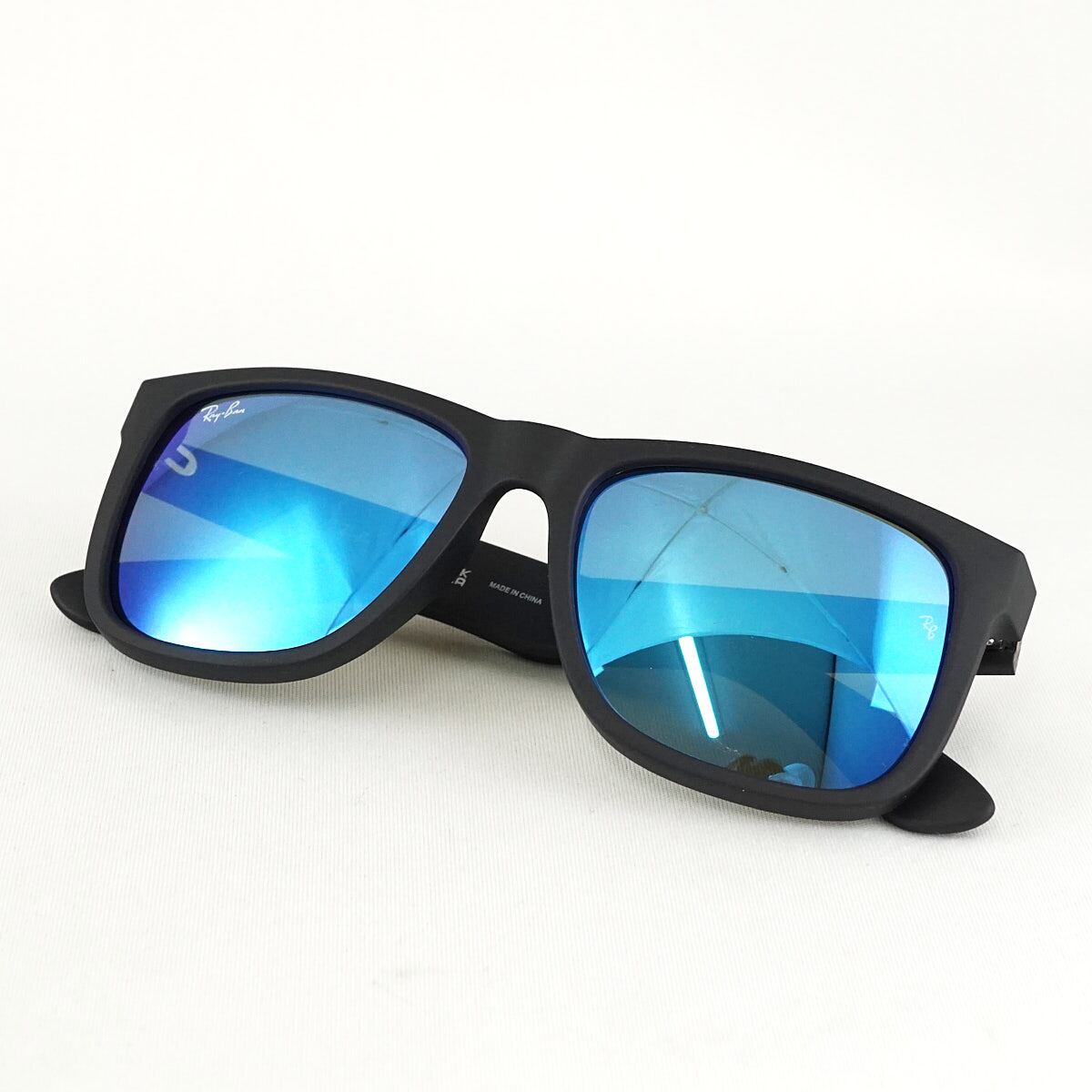 サングラス Ray-Ban JUSTIN RB4165 USED美品 ブラックラバーxブルーミラー ケース付 レイバン アイウェア 中古 X6754