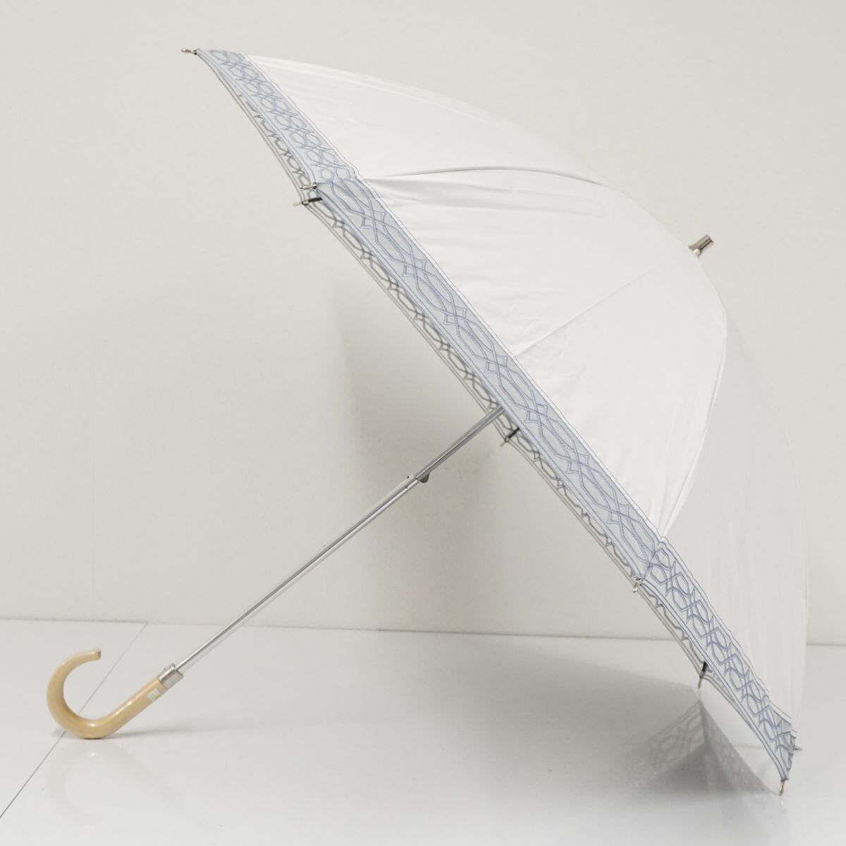 日傘 NINA RICCI ニナリッチ USED品 サマーシールドLII 晴雨兼用 刺繍 ホワイト UV 遮光 遮熱 グラス骨 50cm S2200