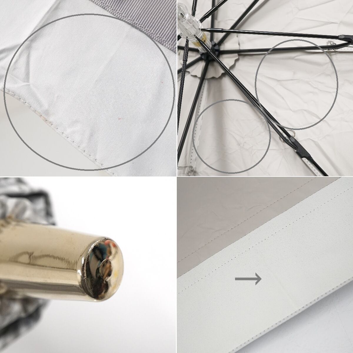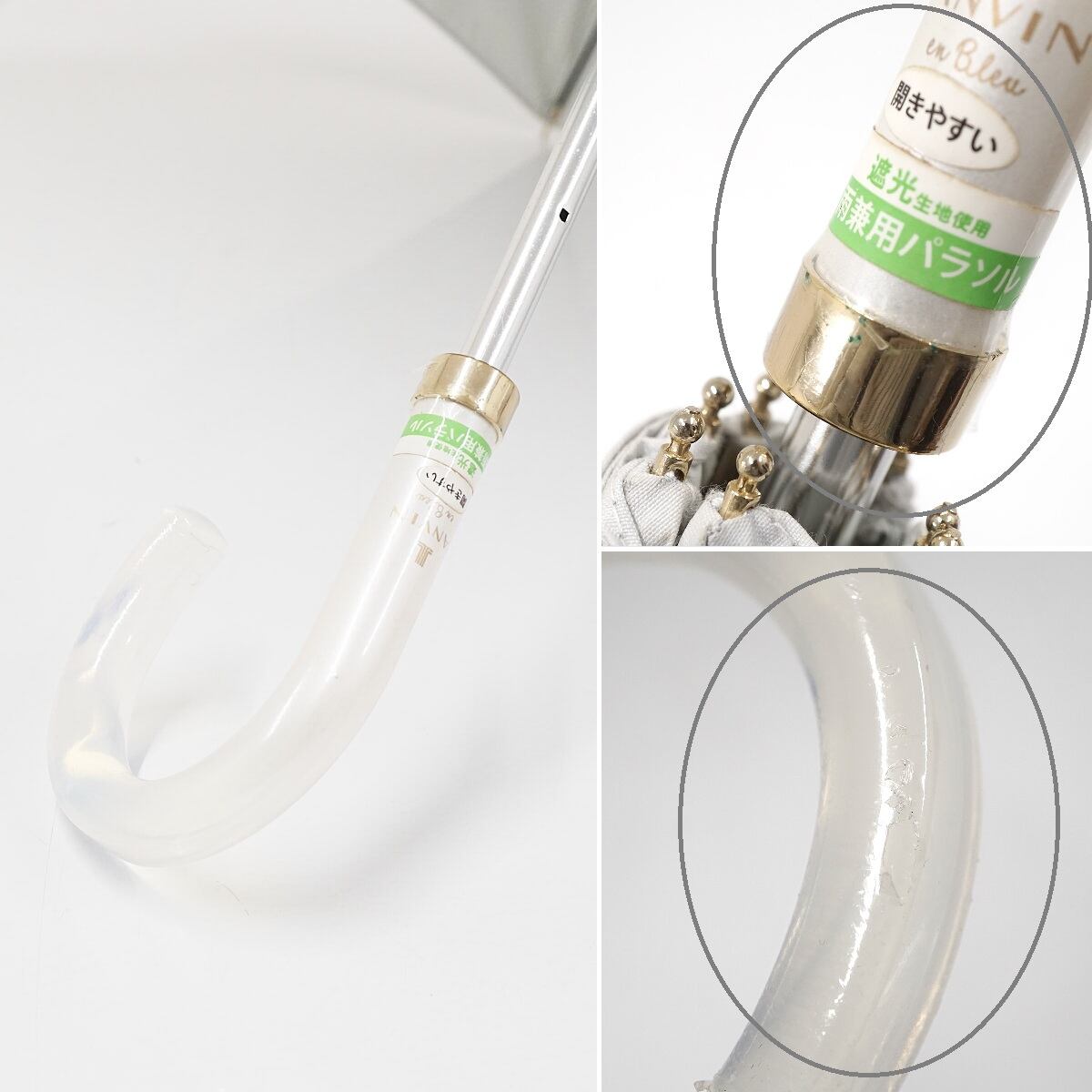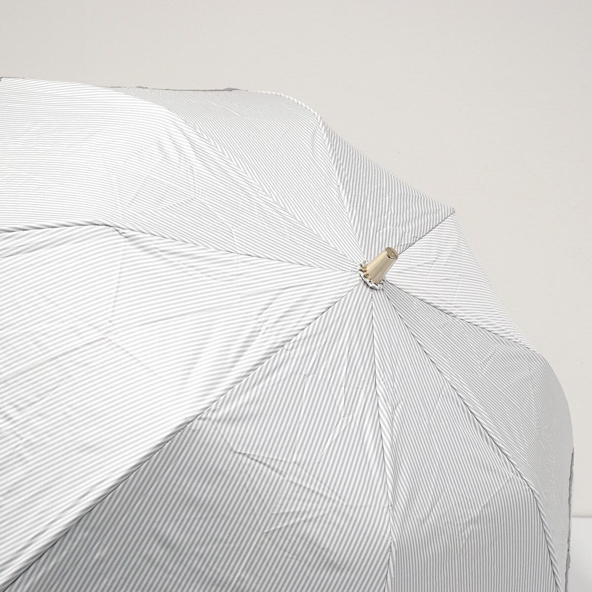 折りたたみ日傘 LANVIN en Bleu ランバンオンブルー USED美品 晴雨兼用 ビジューリボン ライトグレー ストライプ UV 遮光 FS8811