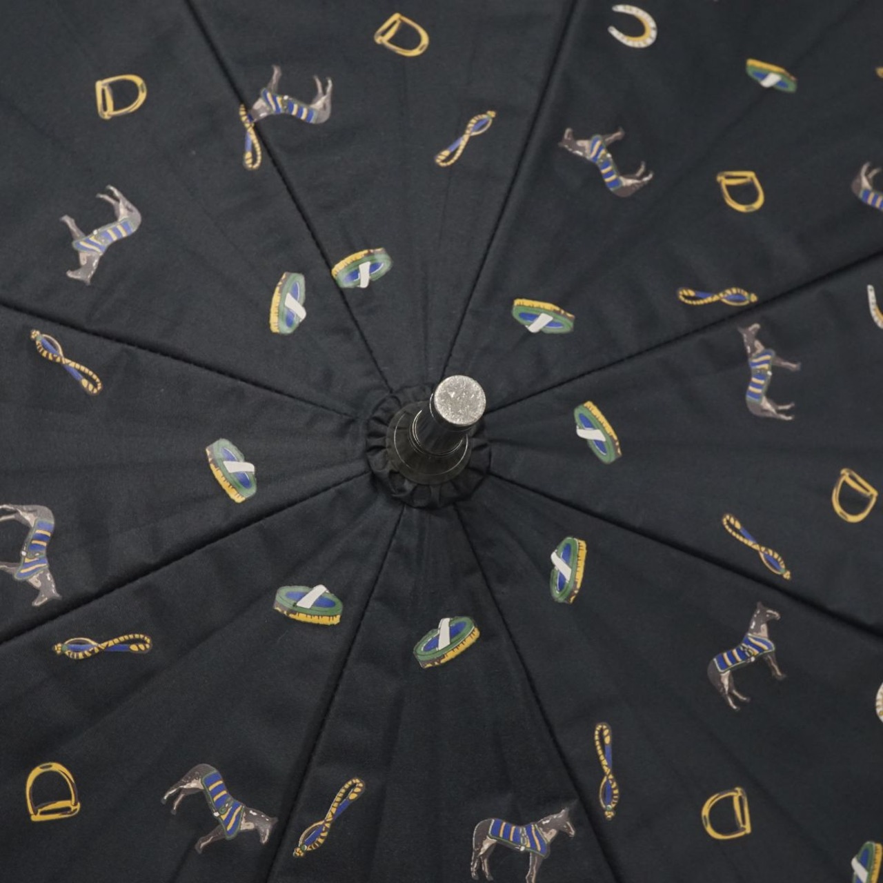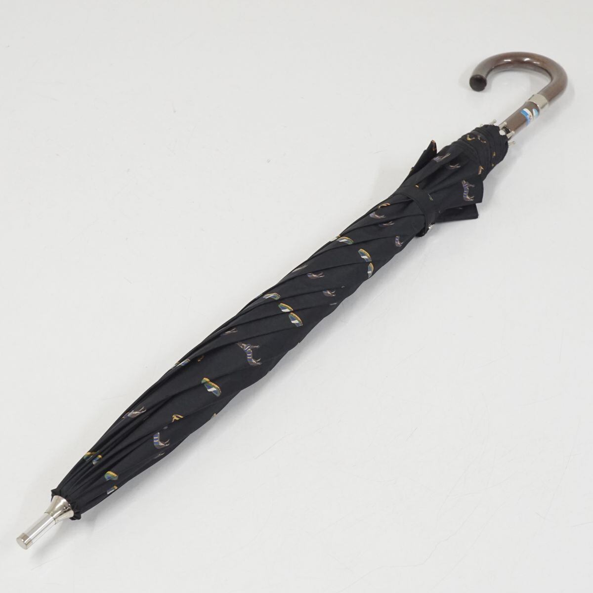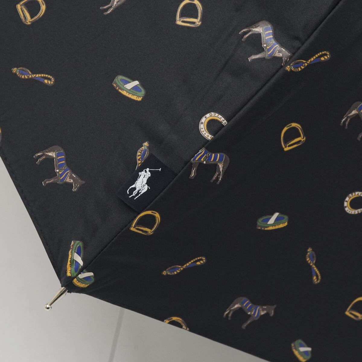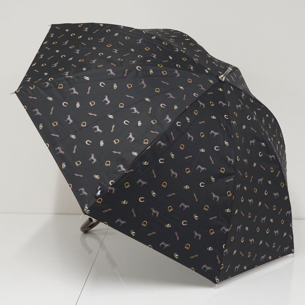日傘 Polo Ralph Lauren ポロラルフローレン USED美品 晴雨兼用 ホース 総柄 ブラック UV 遮光 55cm S2203