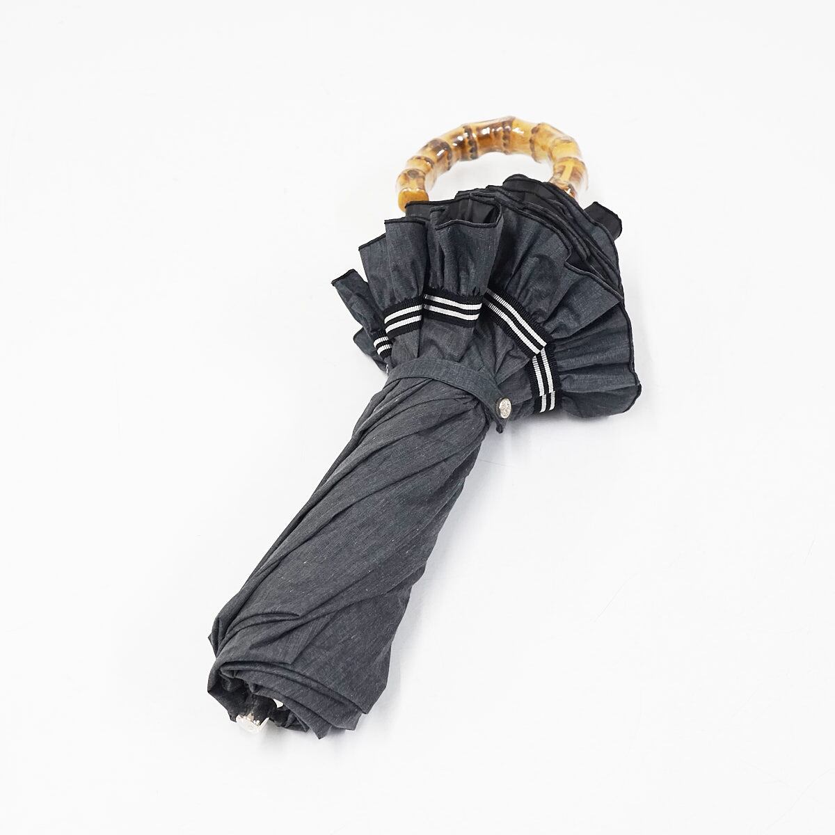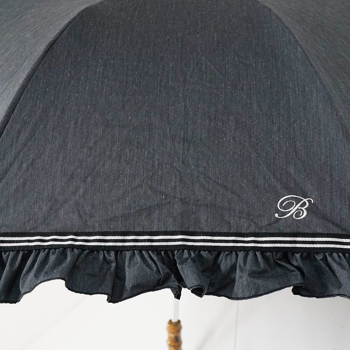 折りたたみ日傘 Blao ブラオ USED美品 東レ サマーシールドLi 晴雨兼用 グレー フリル ボーダーテープ UV 遮光 遮熱 50cm FS8812