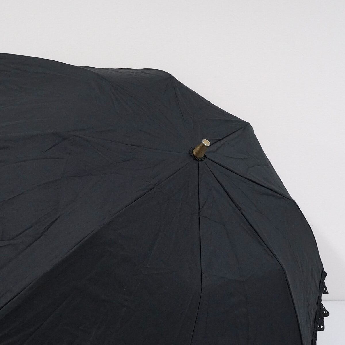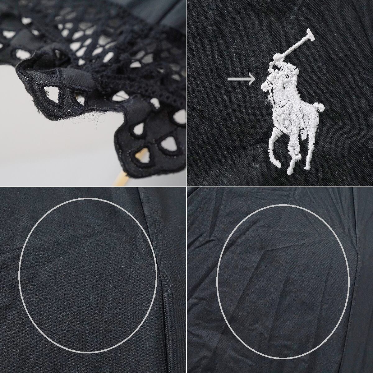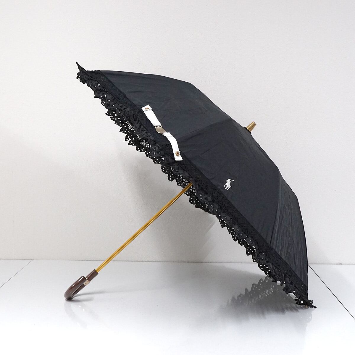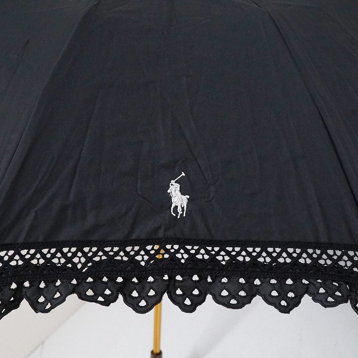 折りたたみ日傘 POLO RALPH LAUREN ポロラルフローレン USED品 晴雨兼用 エンブフリル レース ポニー刺繍 遮光 UV ブラック 50cm FS8831