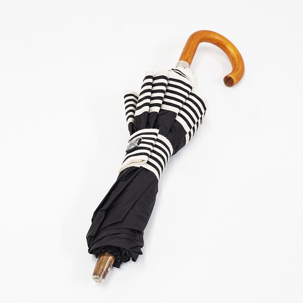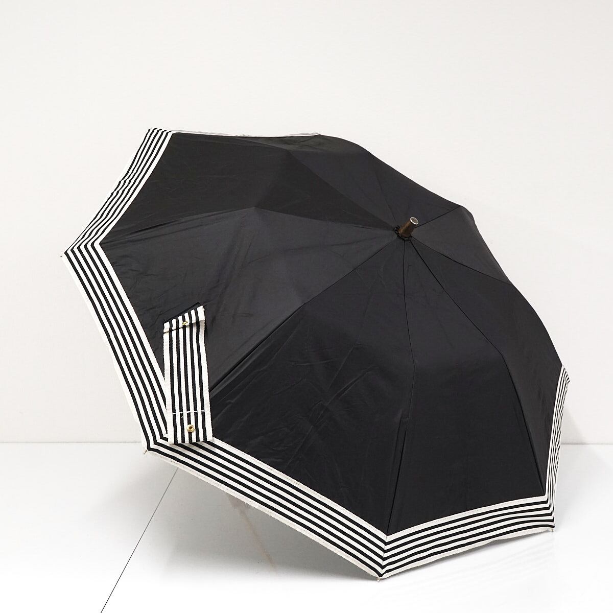 折りたたみ日傘 Athena New York アシーナニューヨーク USED品 晴雨兼用 ボーダーライン グログラン シンプル ブラック UV 高級 50cm FA8814