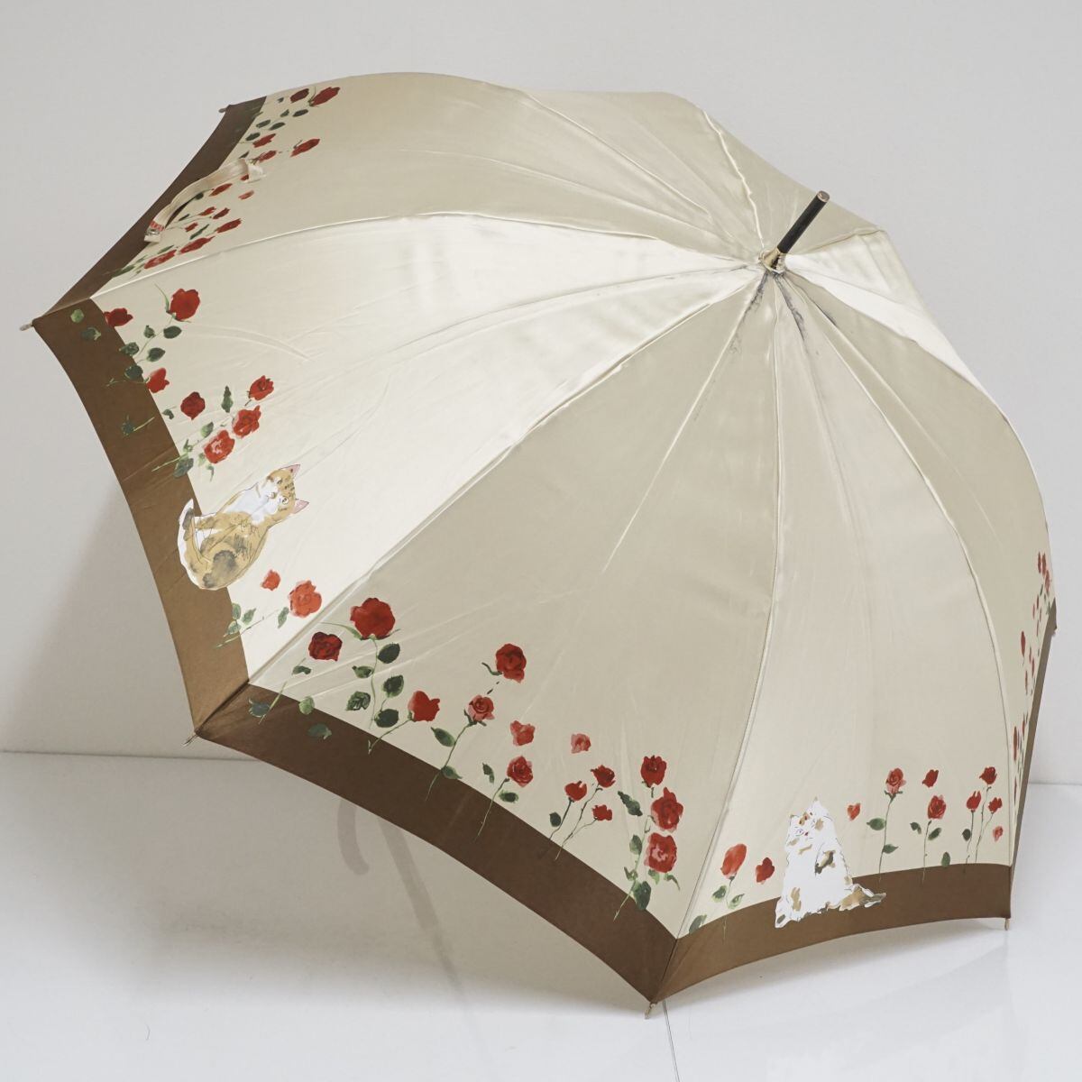 傘 Manhattaner’s マンハッタナーズ USED品 ねこ 猫 バラ 60cm グラス骨 ジャンプ 軽量 A2212