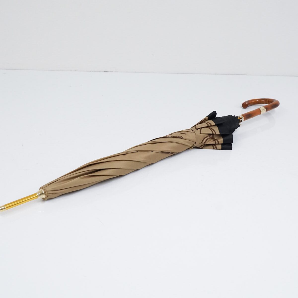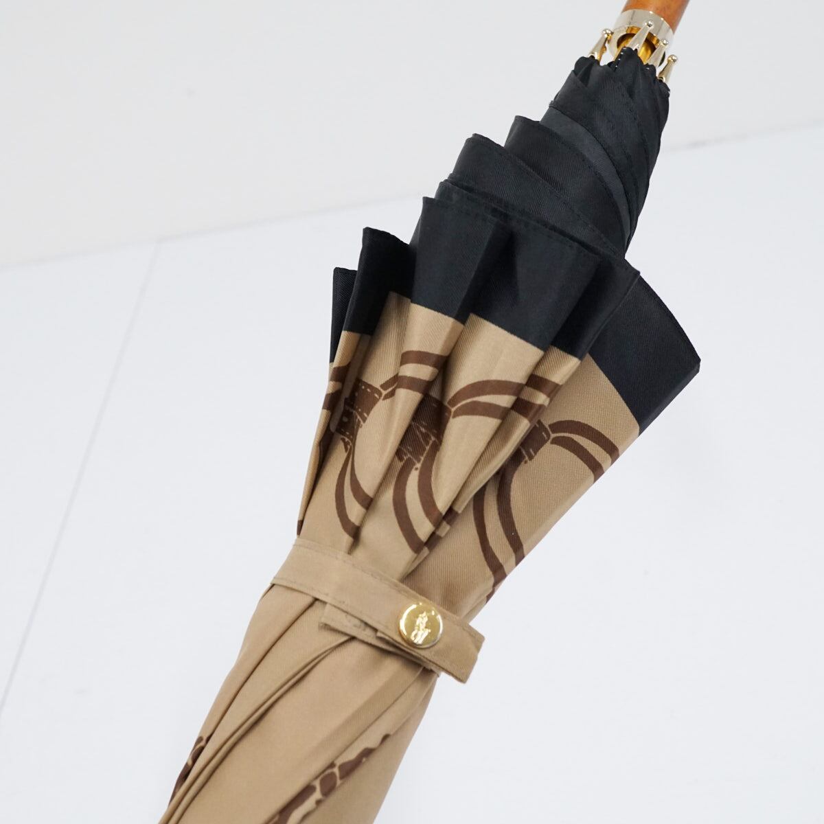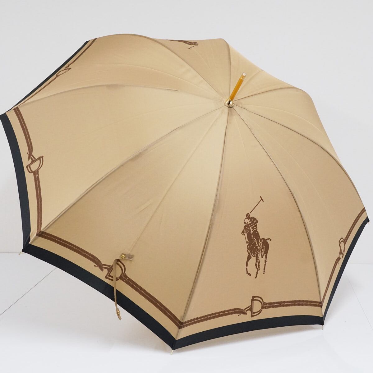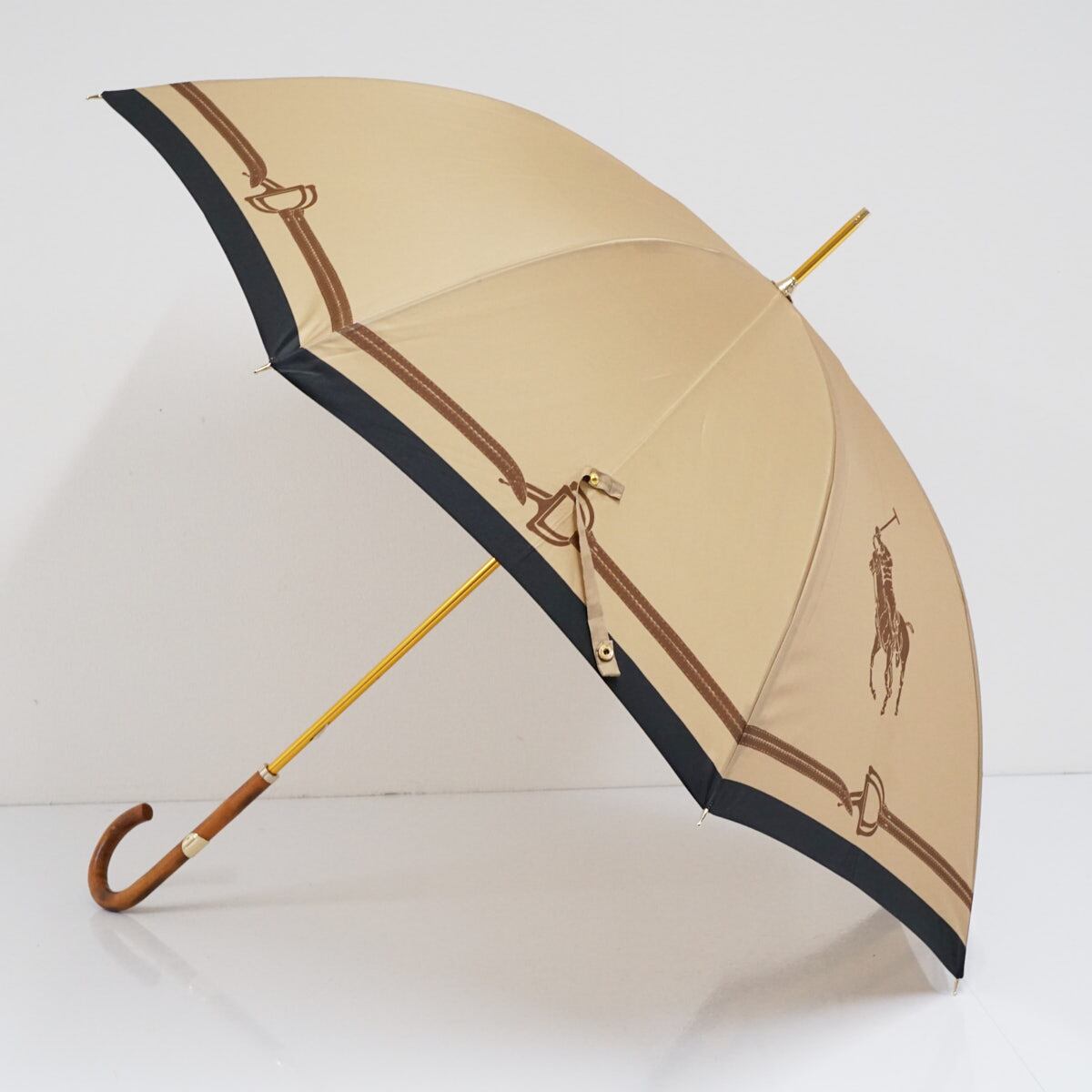 傘 Polo Ralph Lauren ポロラルフローレン USED美品 ライトブラウン ポロポニー ロゴ 高級 60cm A2217