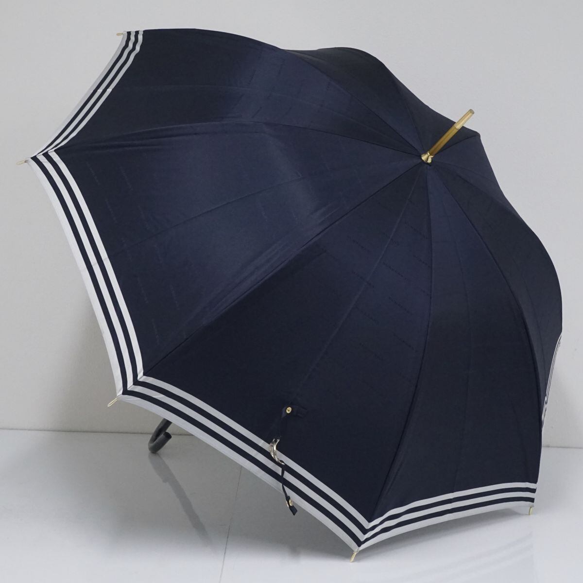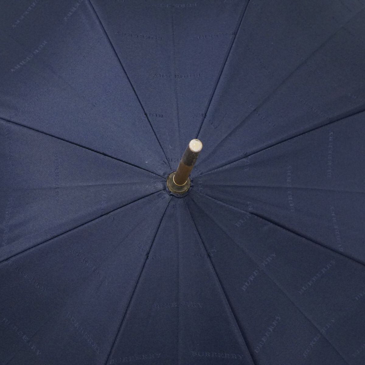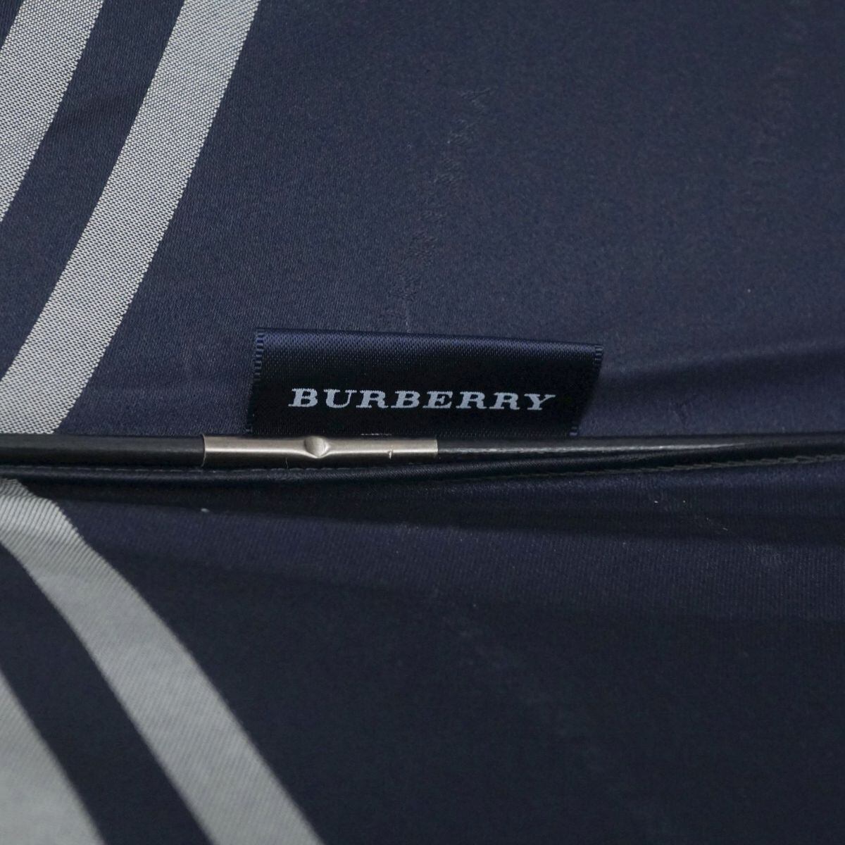 BURBERRY バーバリー 高級傘 USED美品 ジャガード ボーダー ロゴ ネイビー グラス骨 軽量 60cm S2222